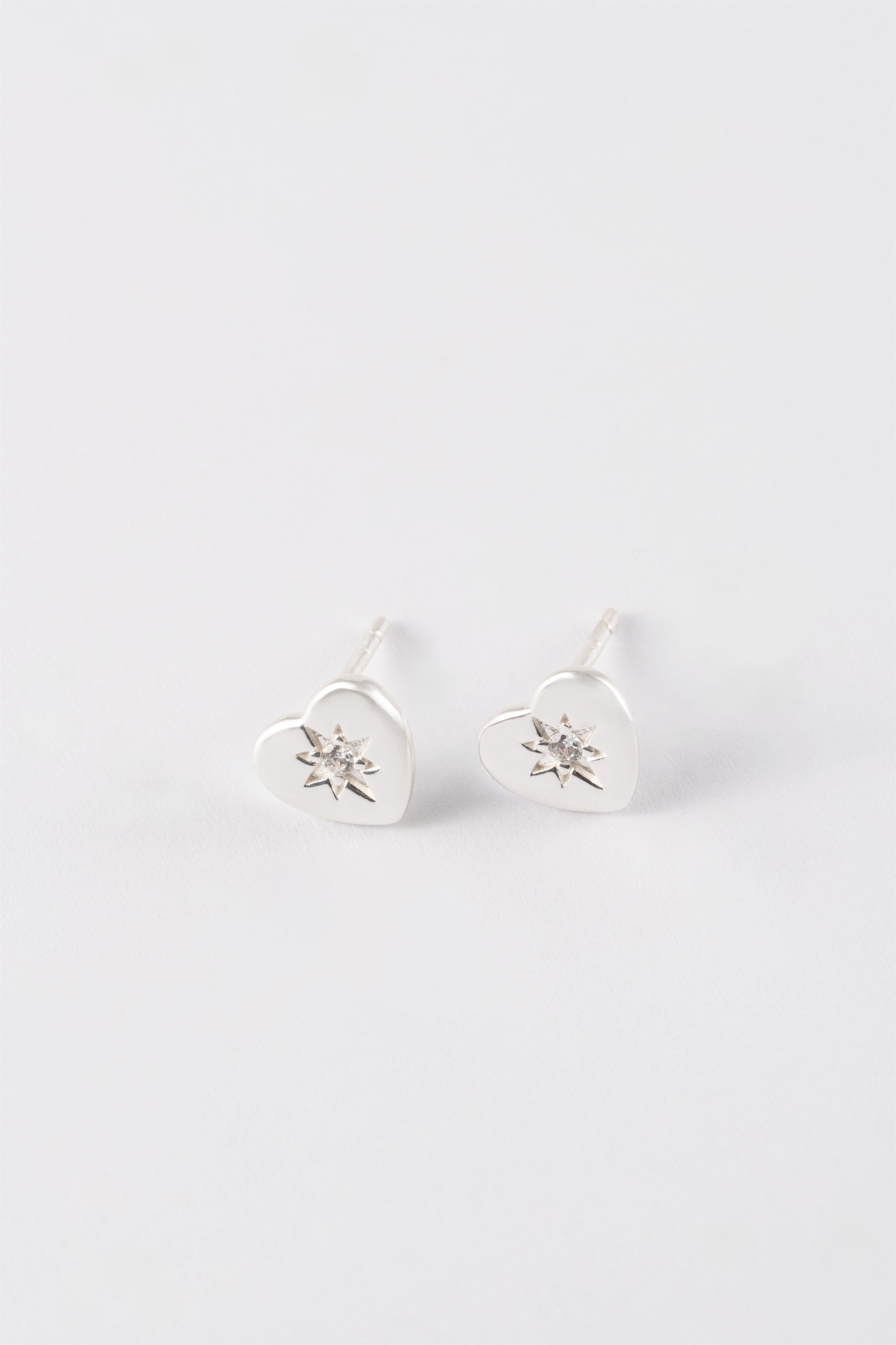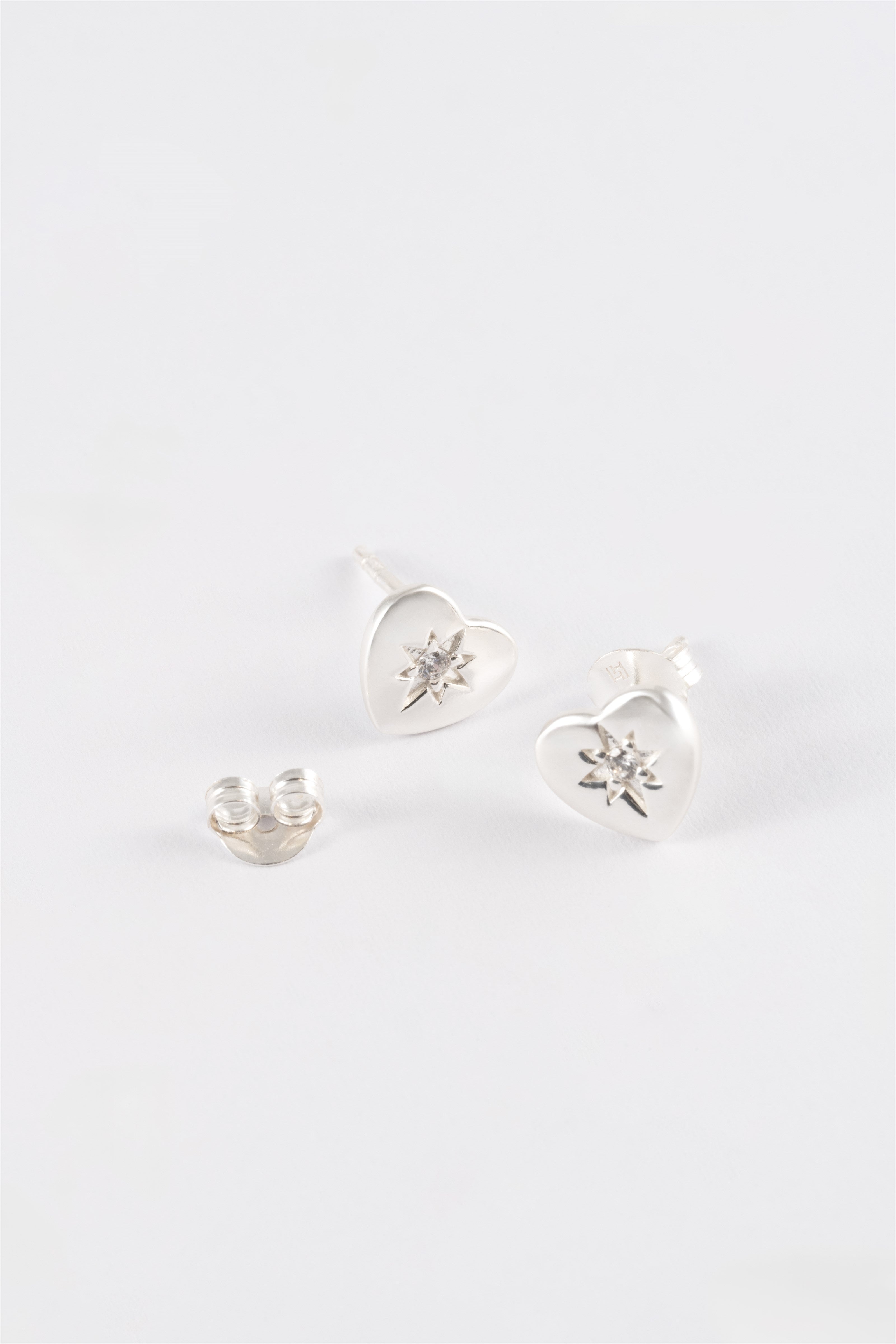 STERLING SILVER HEART ETCHED STAR CZ STUD STERLING SILVER Sale priceR 349.90