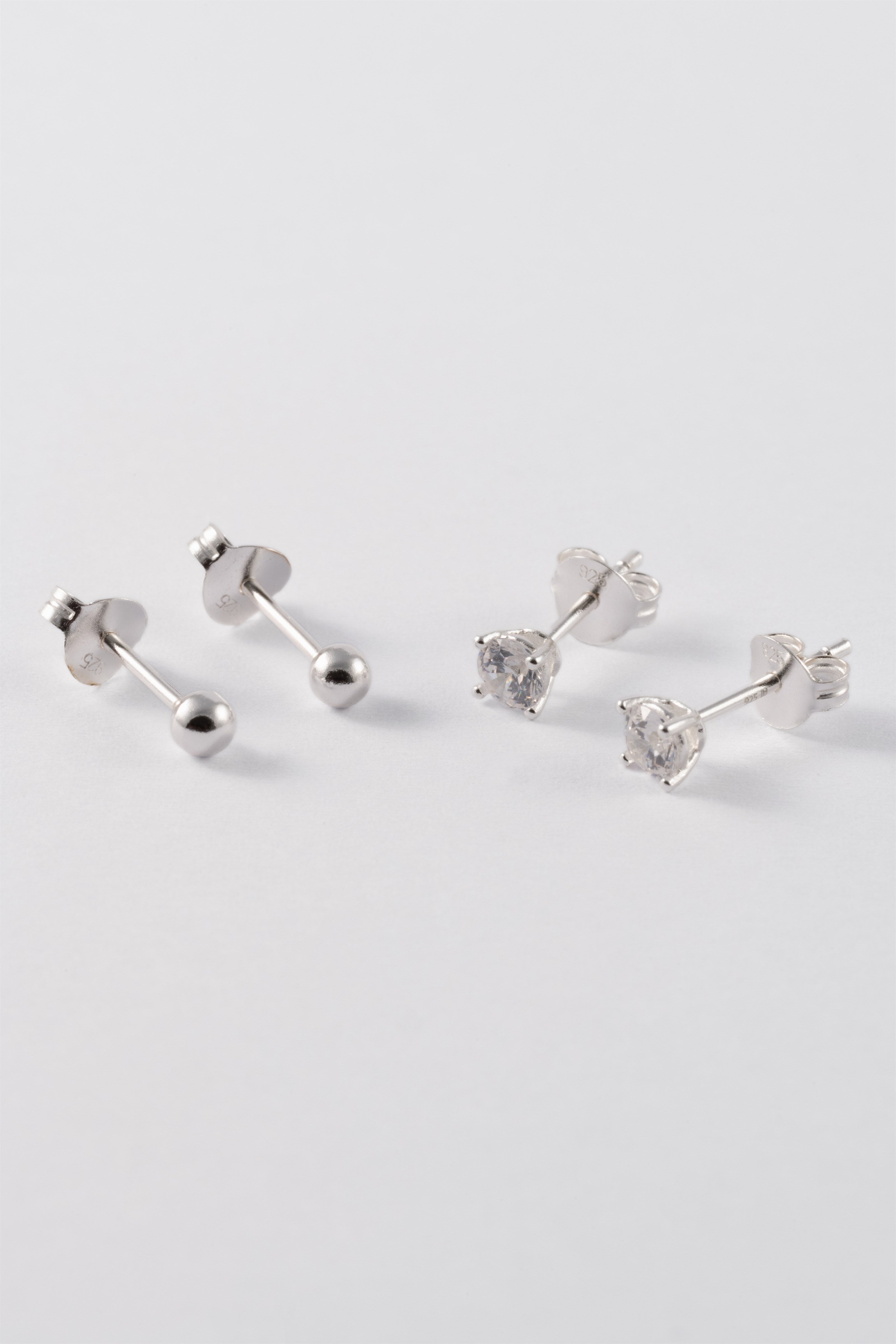 STERLING SILVER BALL & RECTANGLE STUD PACK STERLING SILVER Sale priceR 349.90