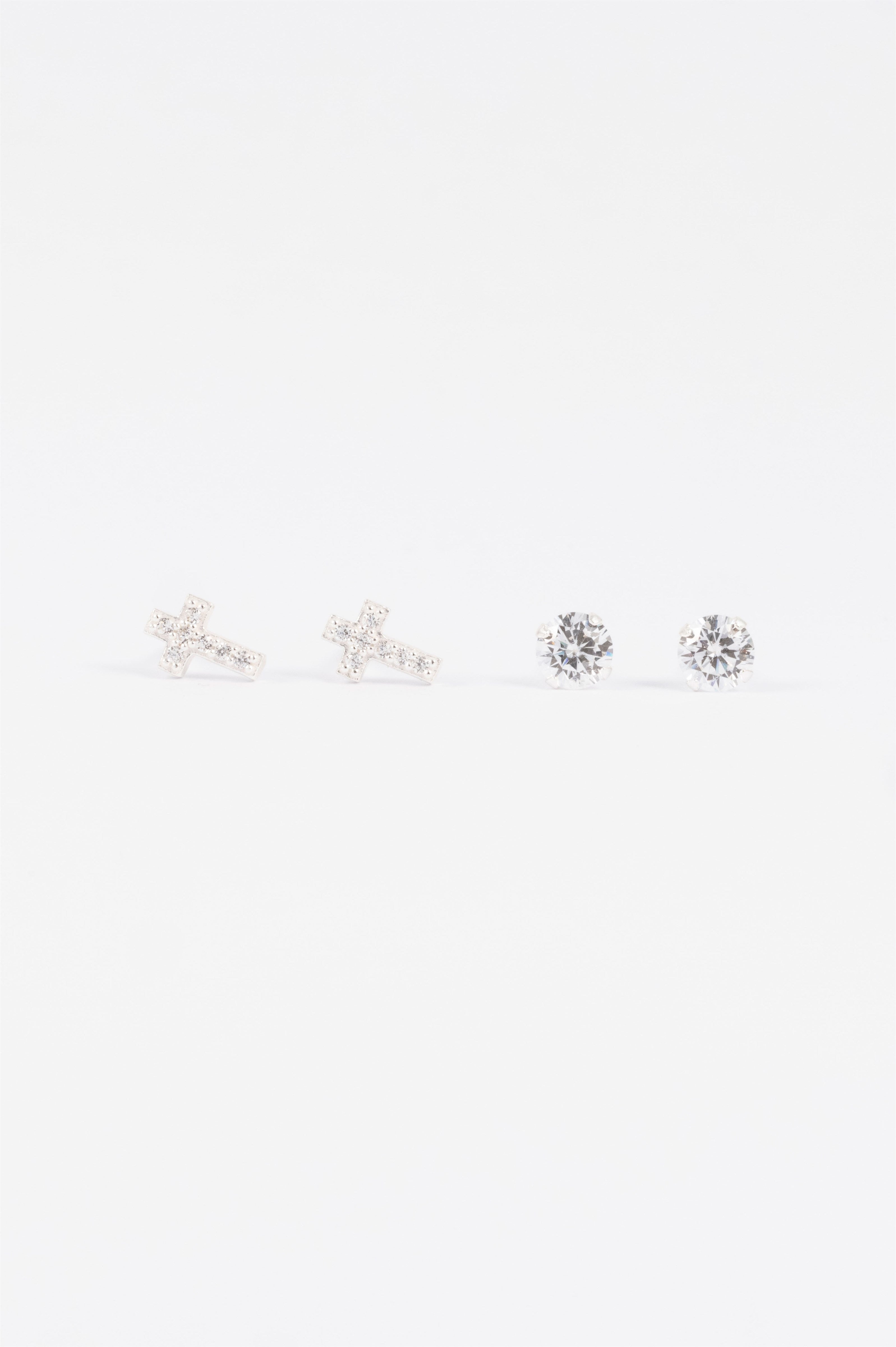 STERLING SILVER 4MM CZ & CROSS STUD PACK STERLING SILVER Sale priceR 349.90