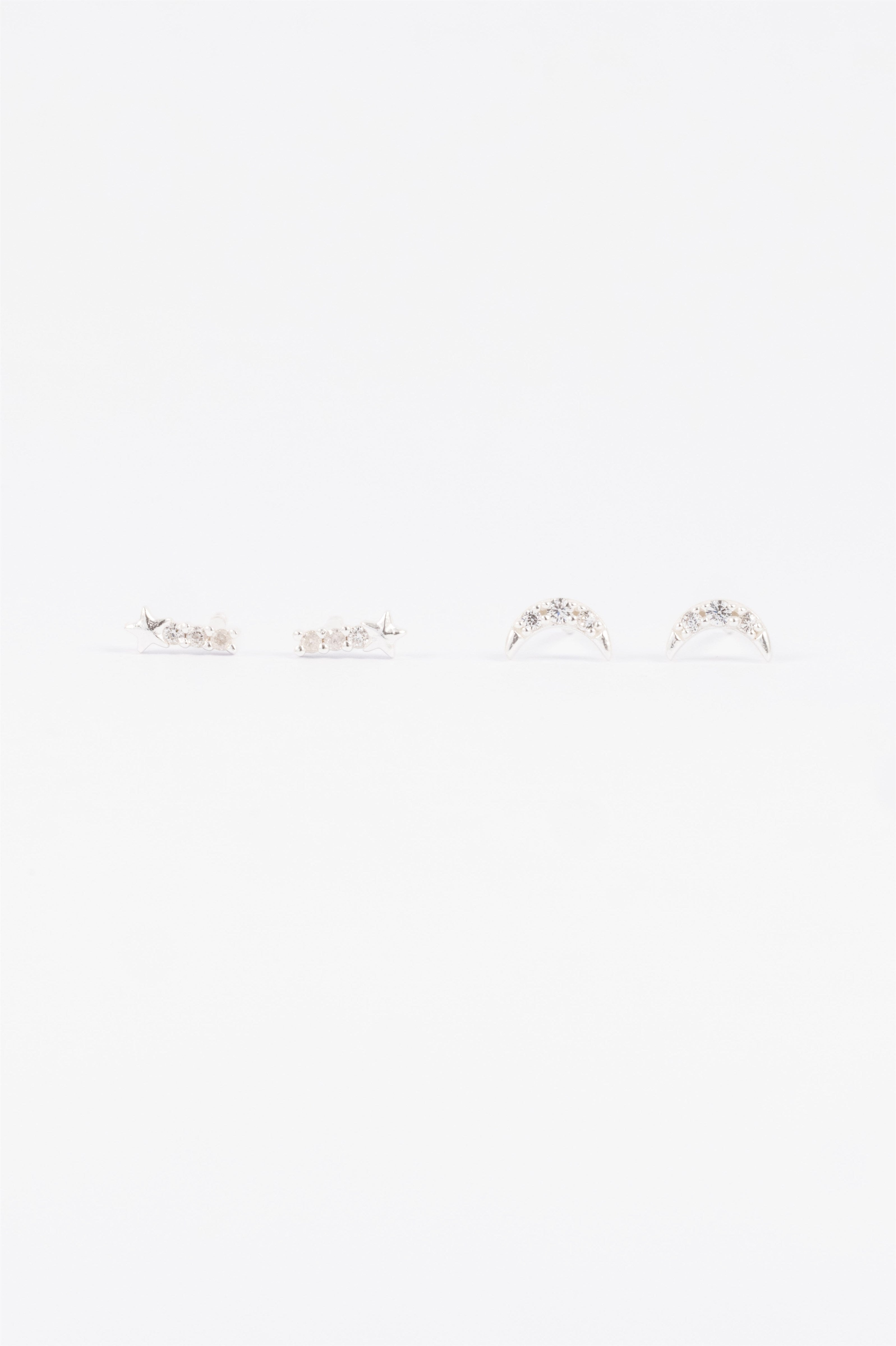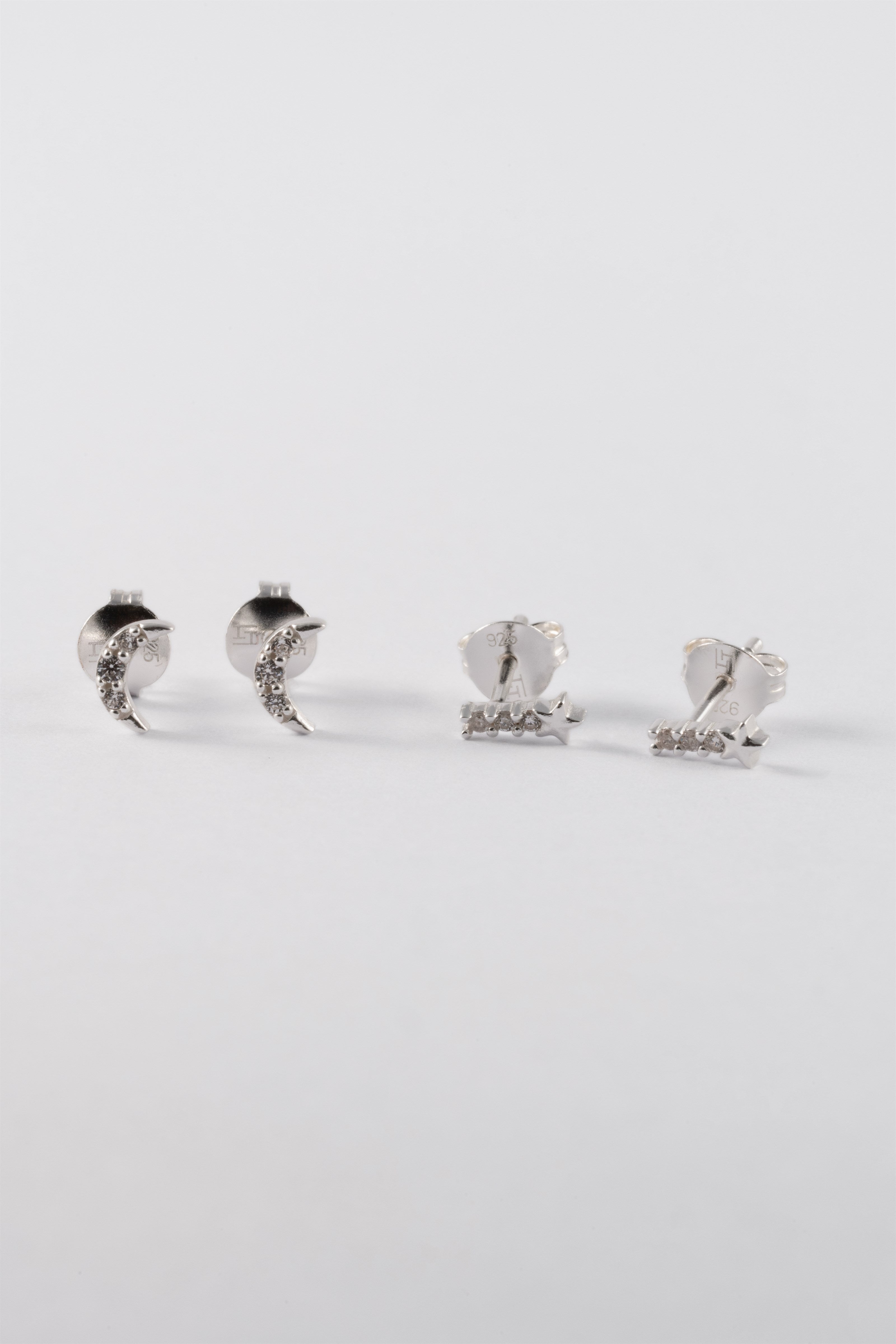 STERLING SILVER CZ CRESCENT MOON & STAR STUD PACK STERLING SILVER Sale priceR 349.90