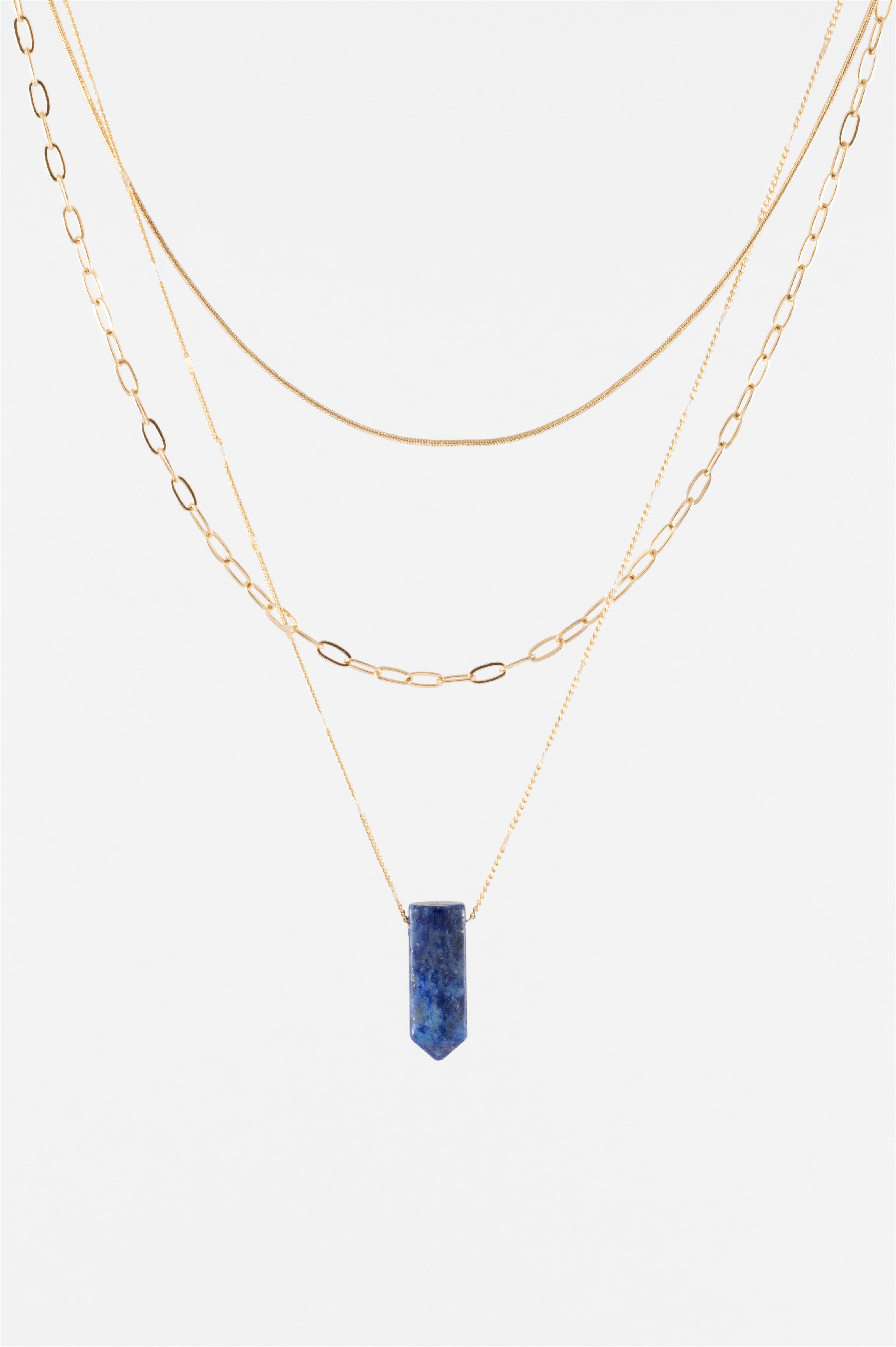 GOLD MULTI STRAND WITH LAPIS SHARD CHARM NECKLACE