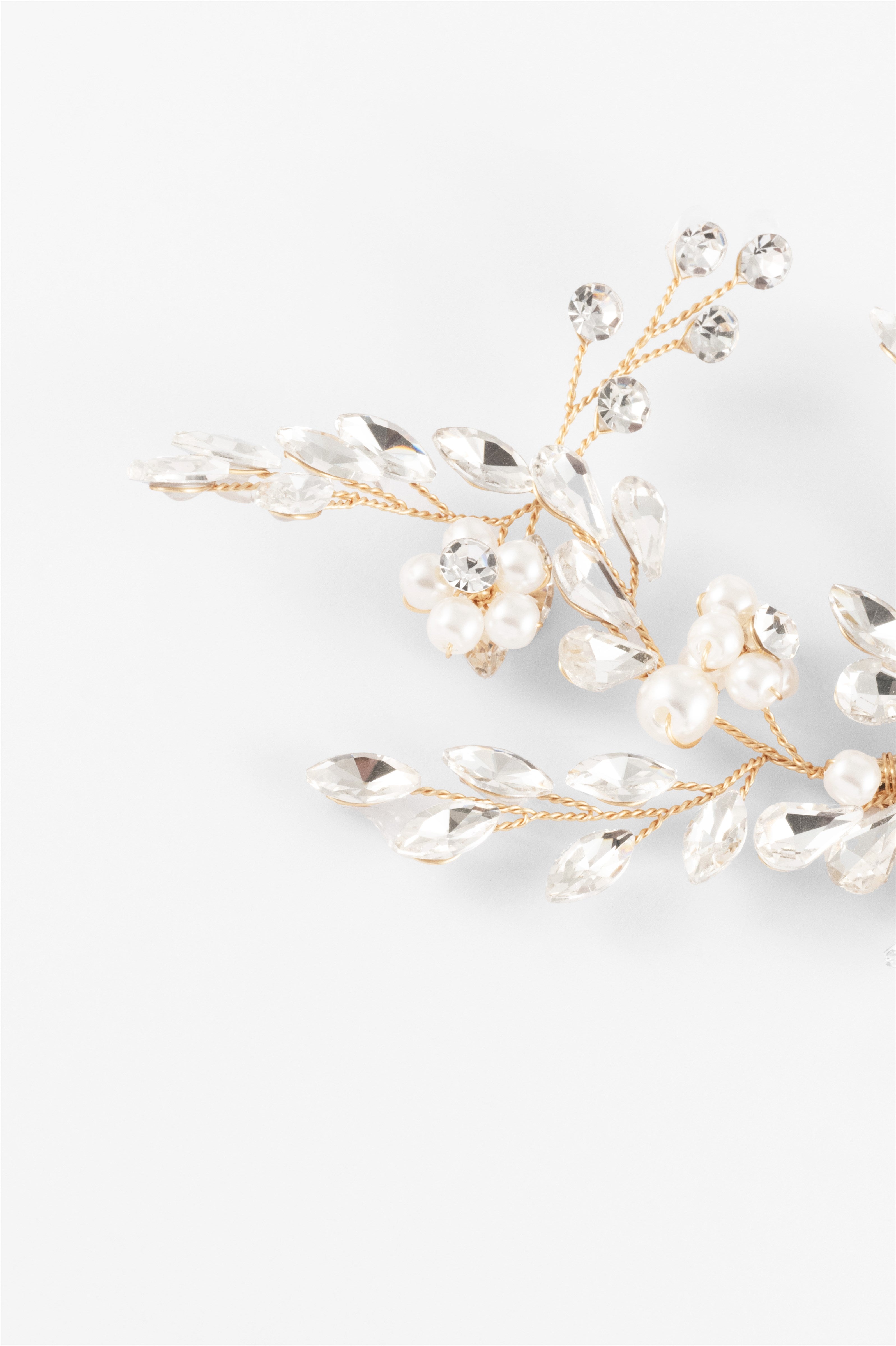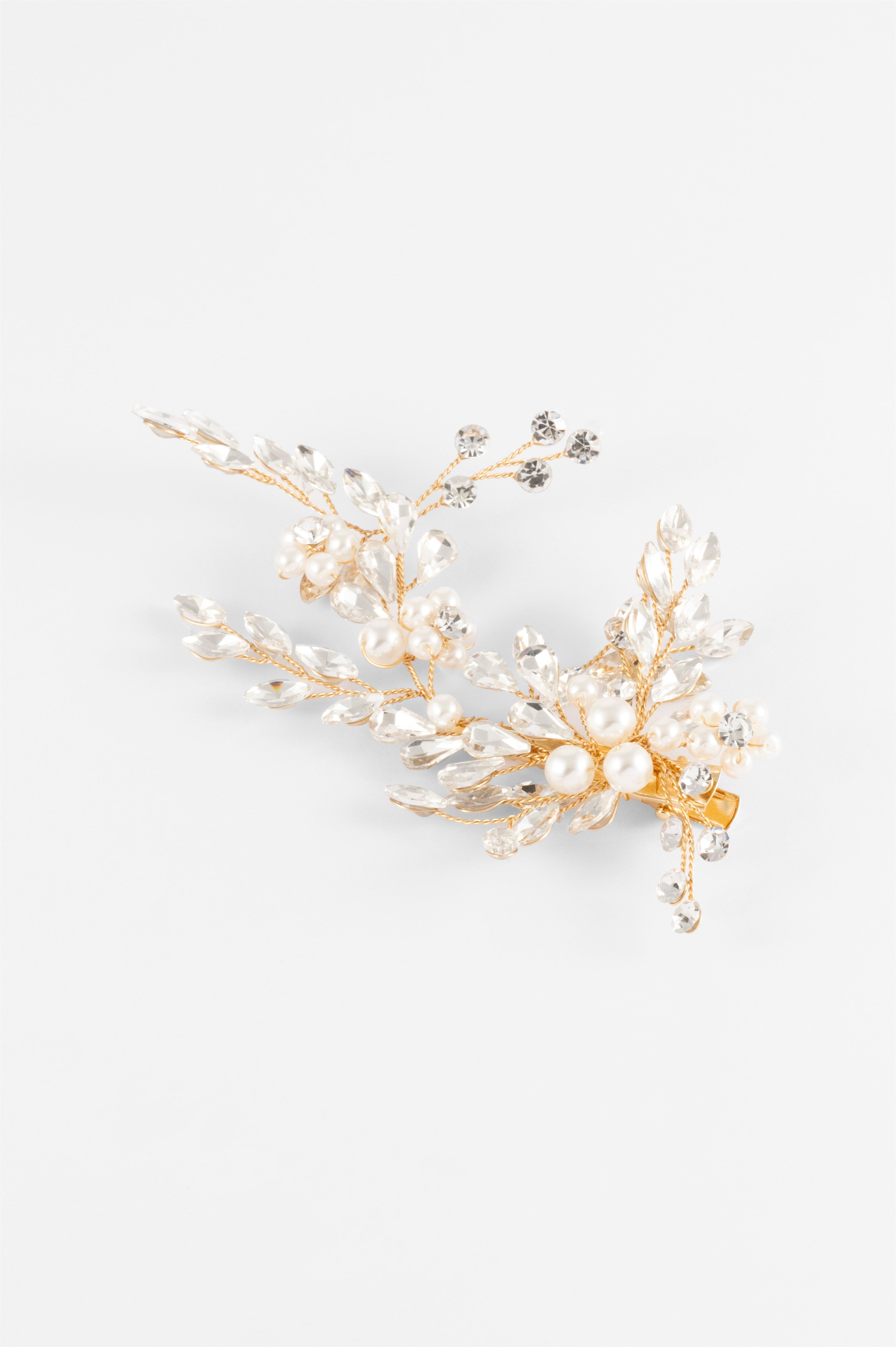 GOLD CERAMIC & OPAL CRYSTAL FLOWER SPRAY COMB