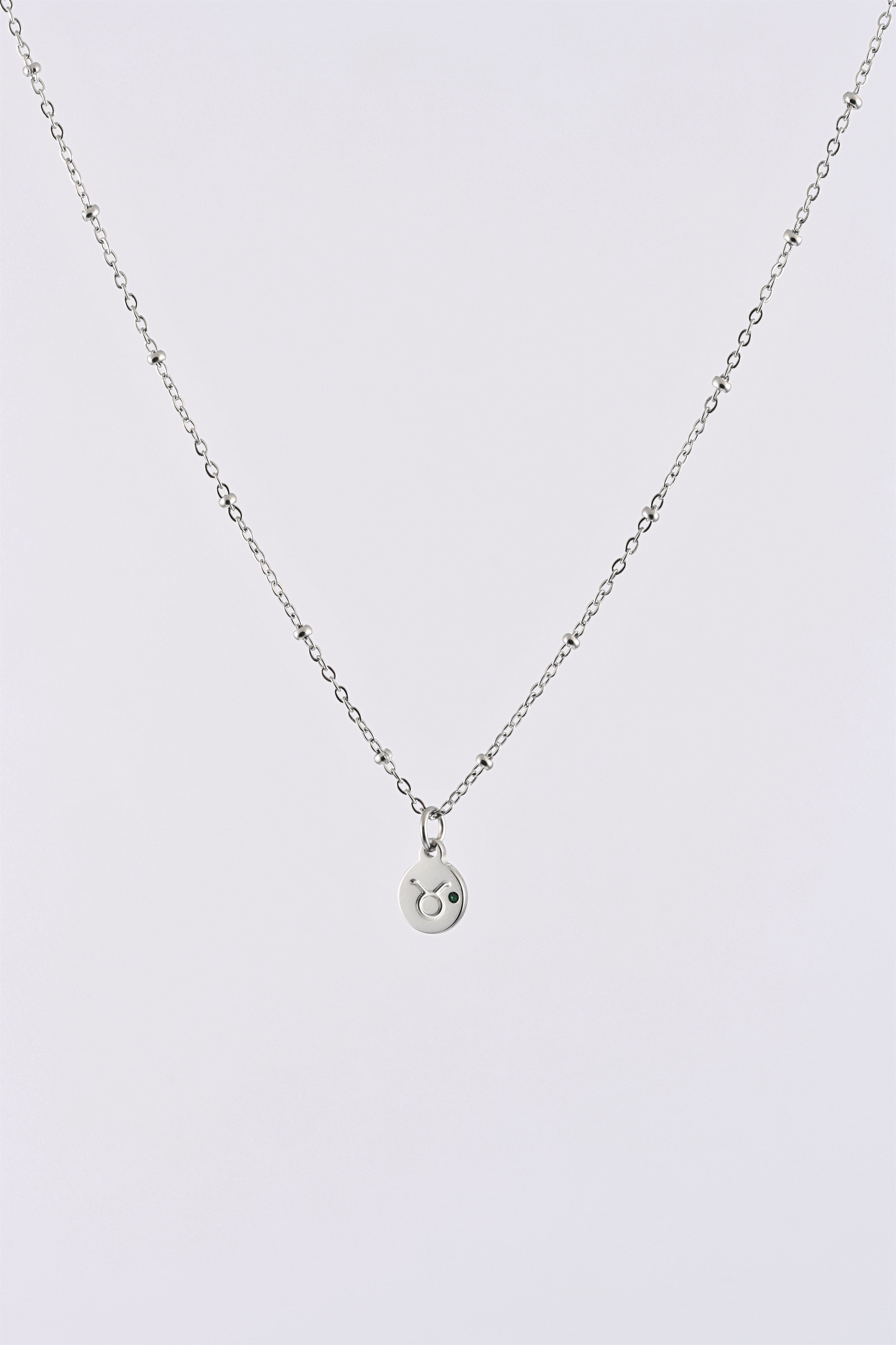 SILVER TAURUS SYMBOL AND DIA NECKLACE