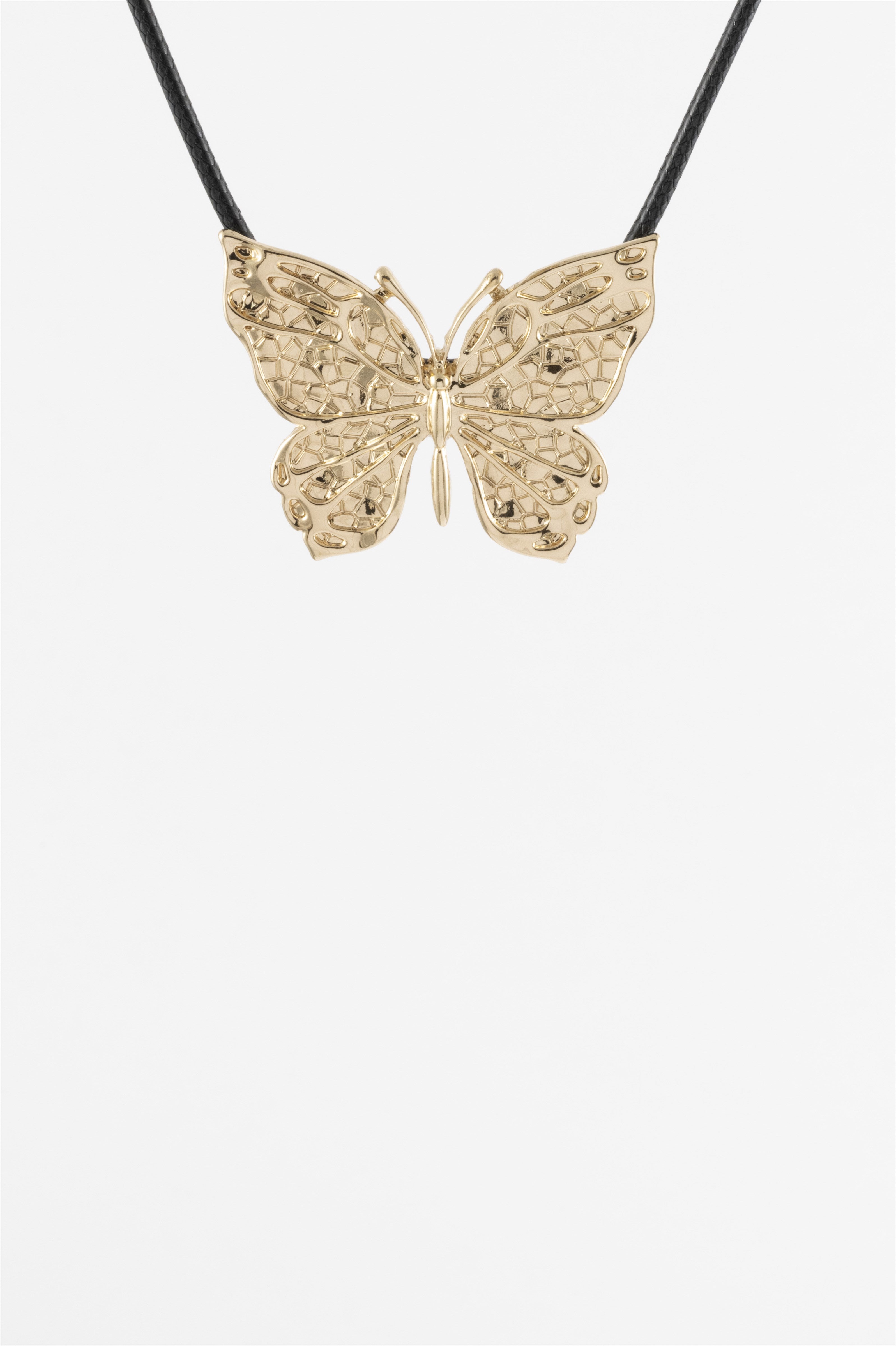 GOLD BUTTERFLY PENDANT ON 45CM BLACK CORD