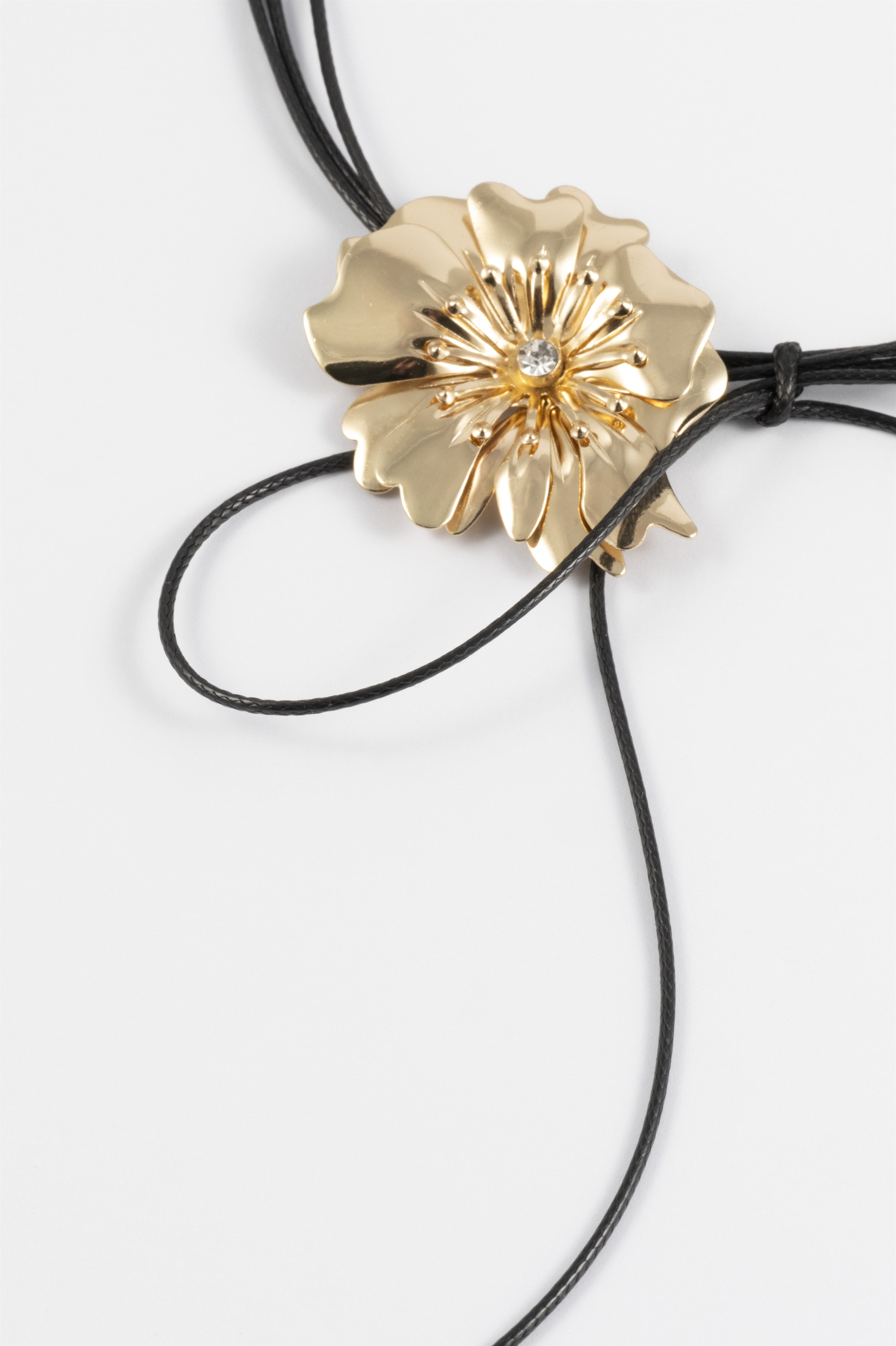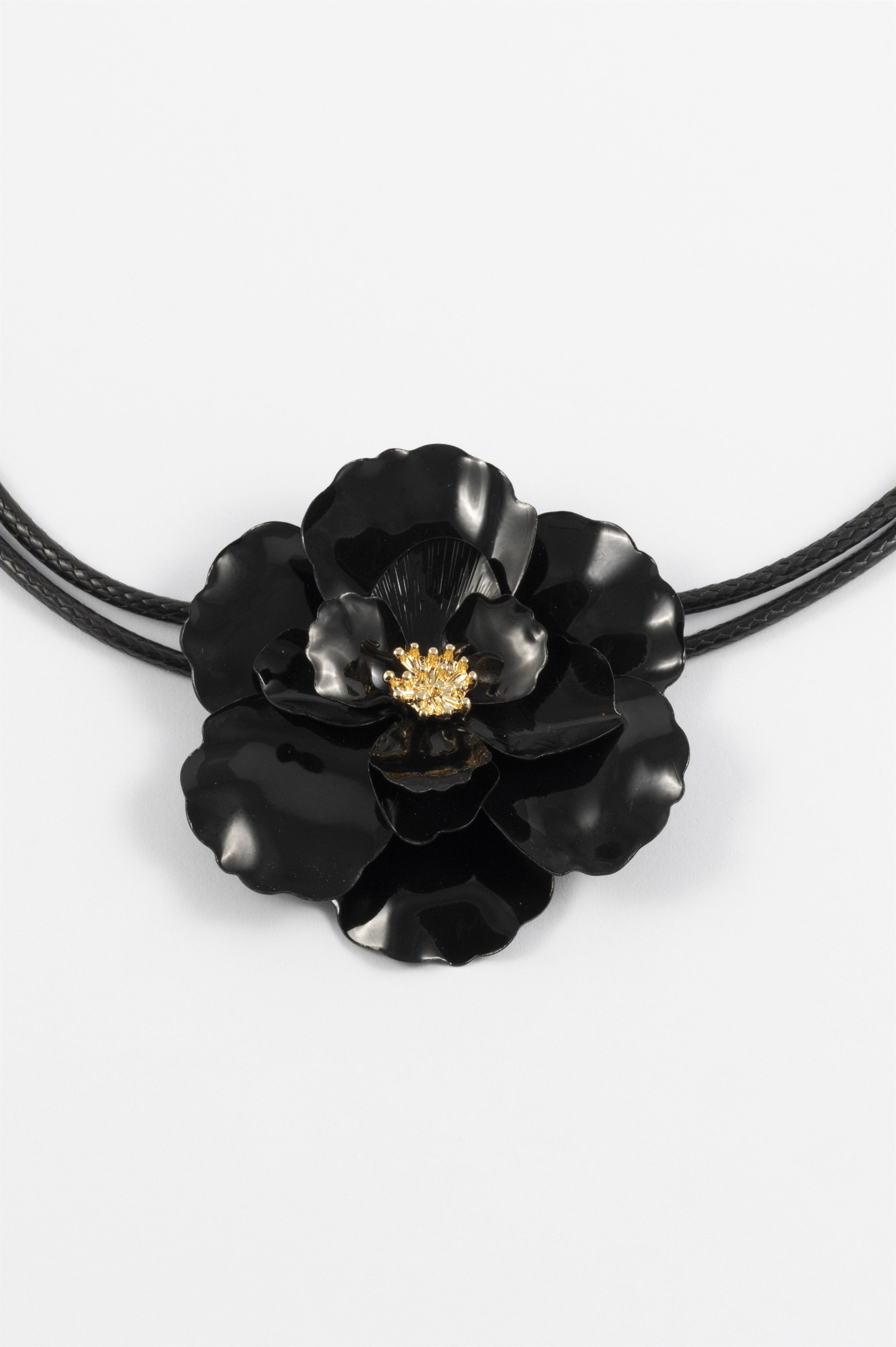 BLACK SHINY FLOWER PENDANT ON ADJUSTABLE BLACK COR