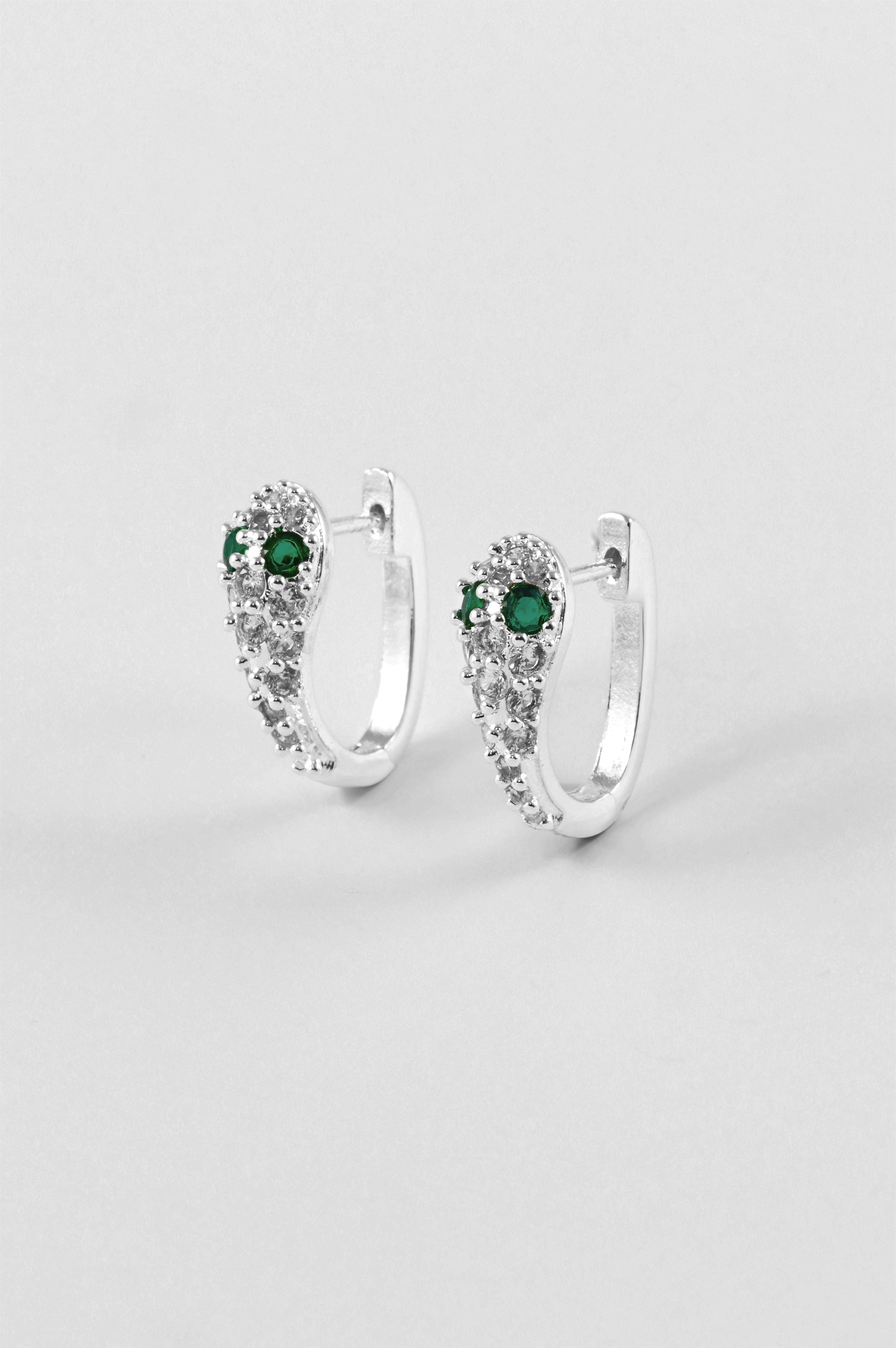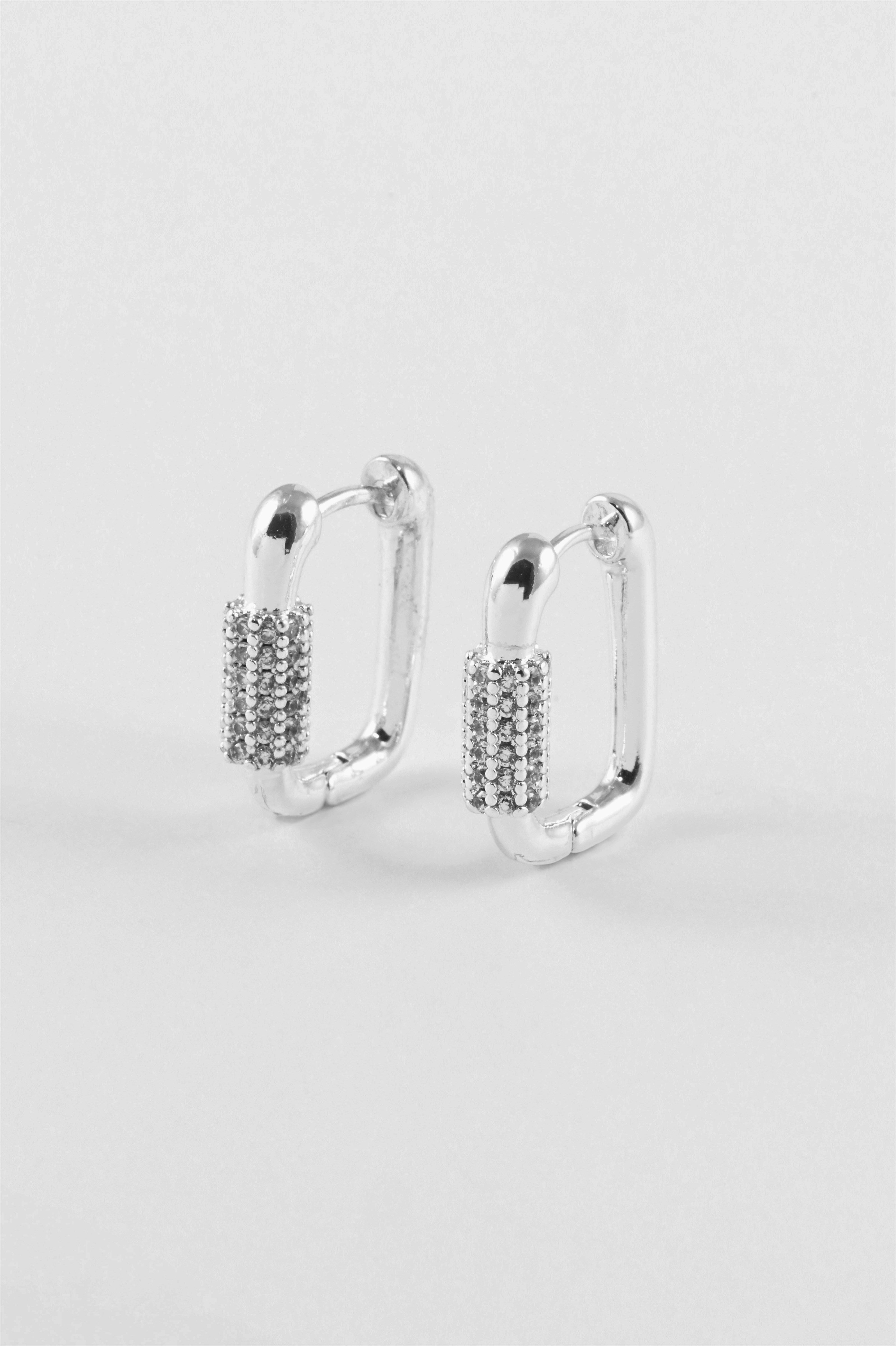 SILVER WITH CUBIC ZIRCONIA RECTANGLE HUGGIE EARRIN