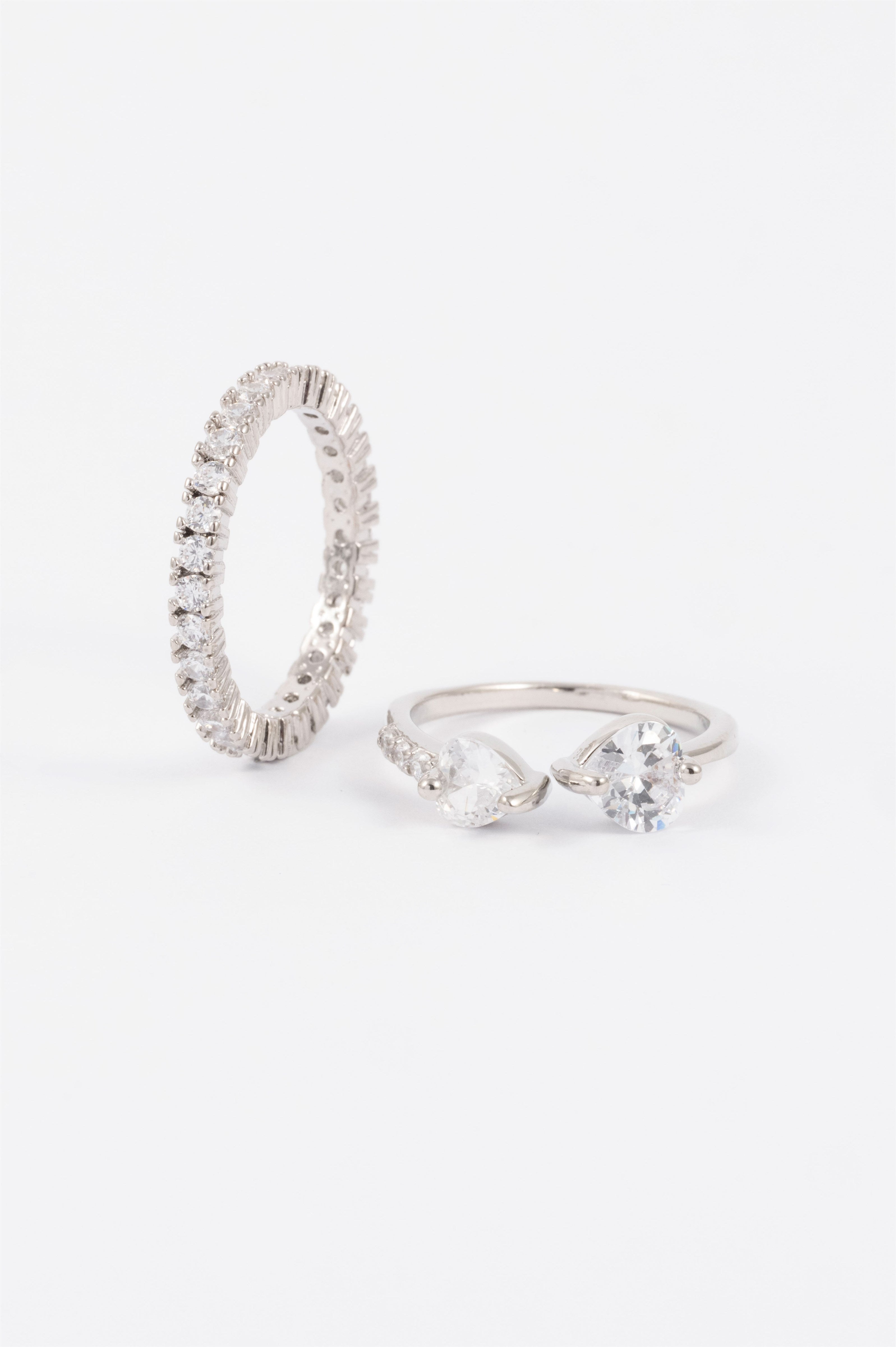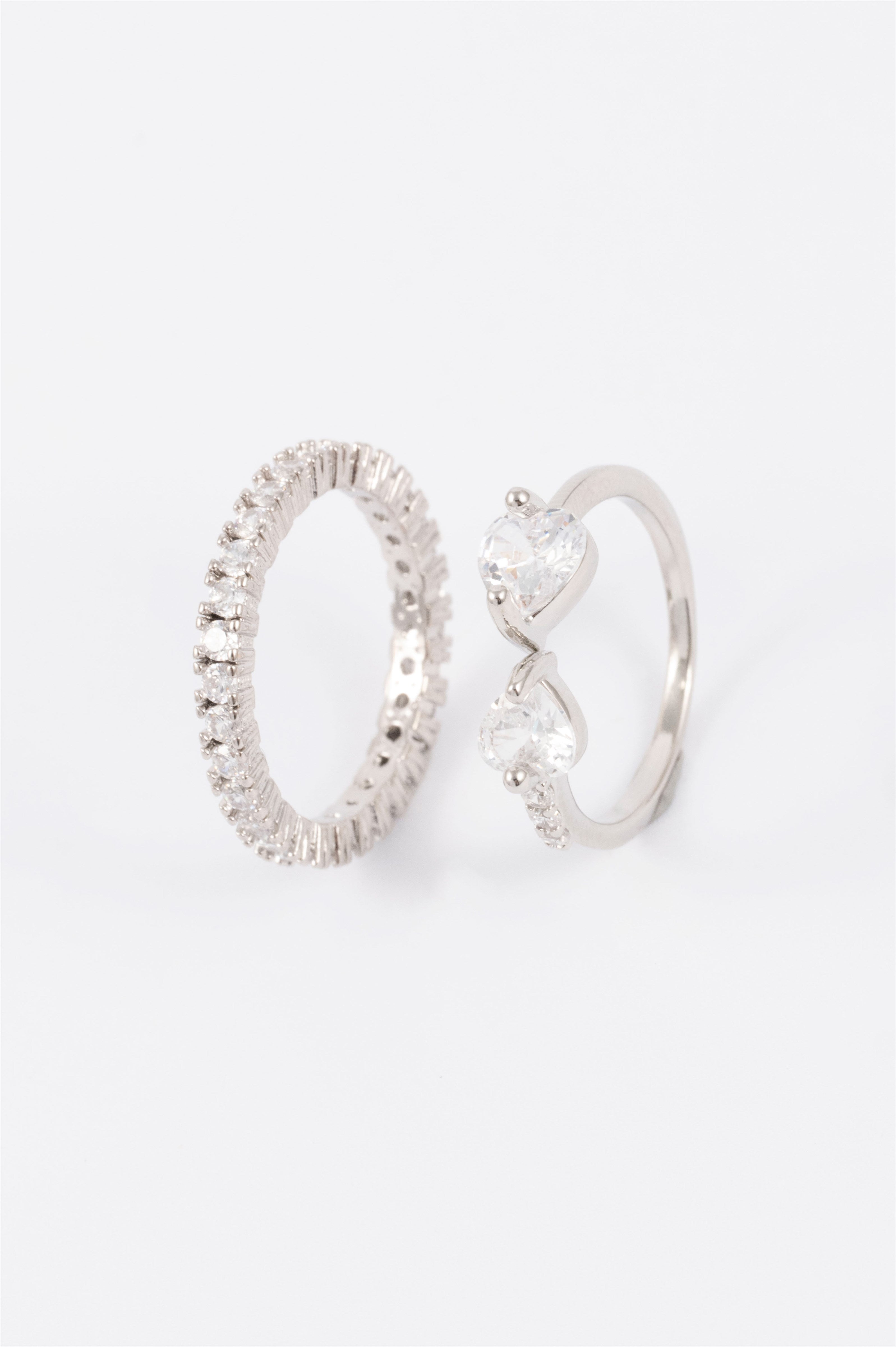 RHODIUM CZ OPEN PAVE HEART RING 2PACK M/L CUBIC ZIRCONIA RINGS Sale priceR 299.90