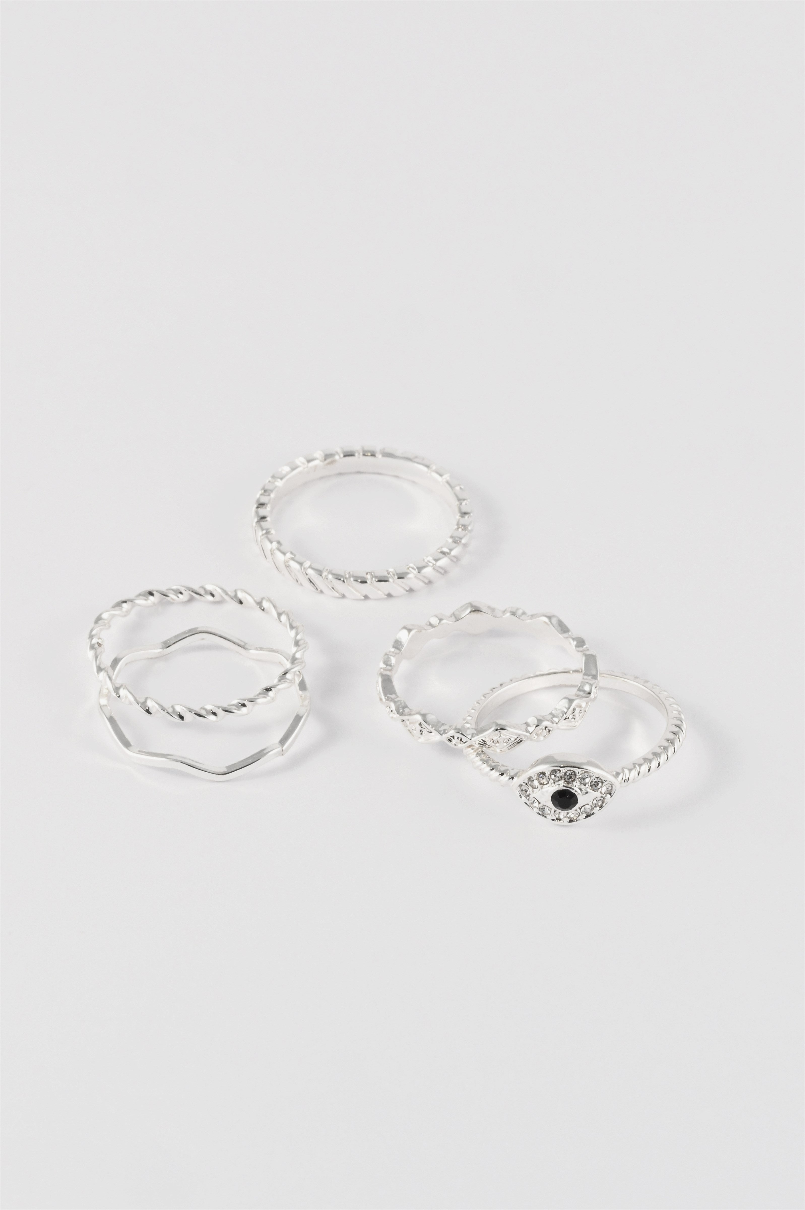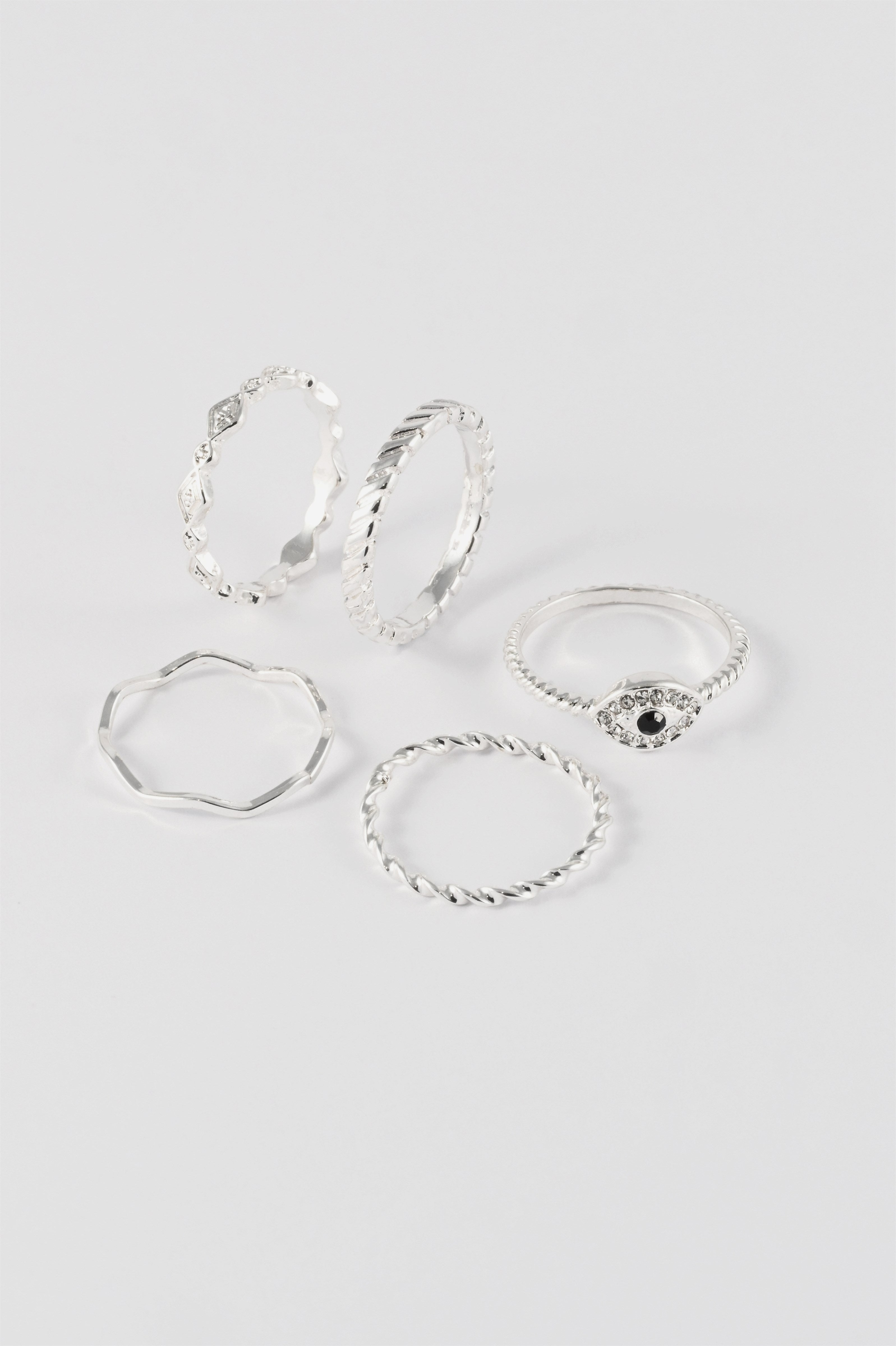 SILVER CRYSTAL EVIL EYE 5 PACK RINGS - S/M ESSENTIAL SILVER Sale priceR 179.90
