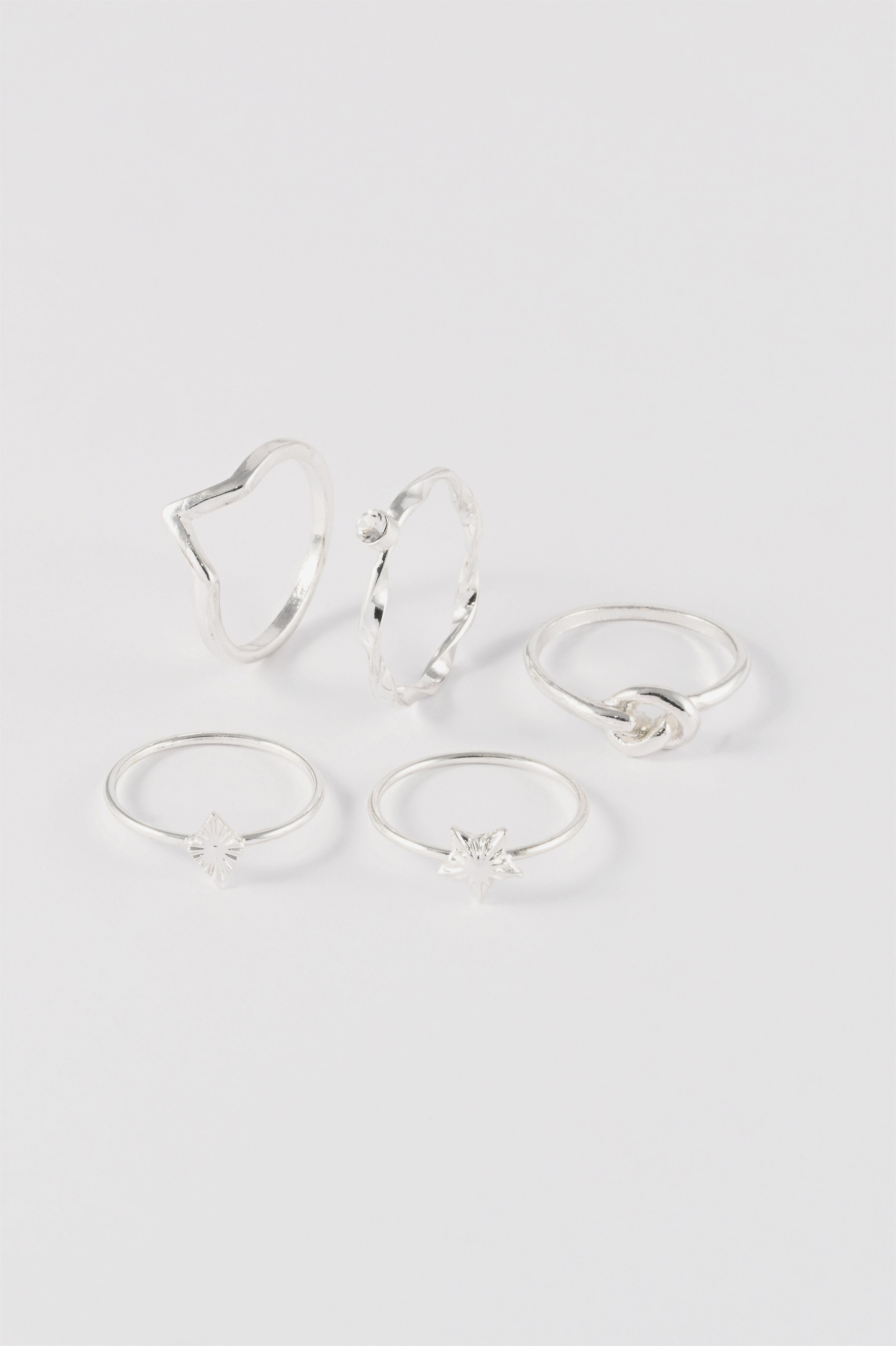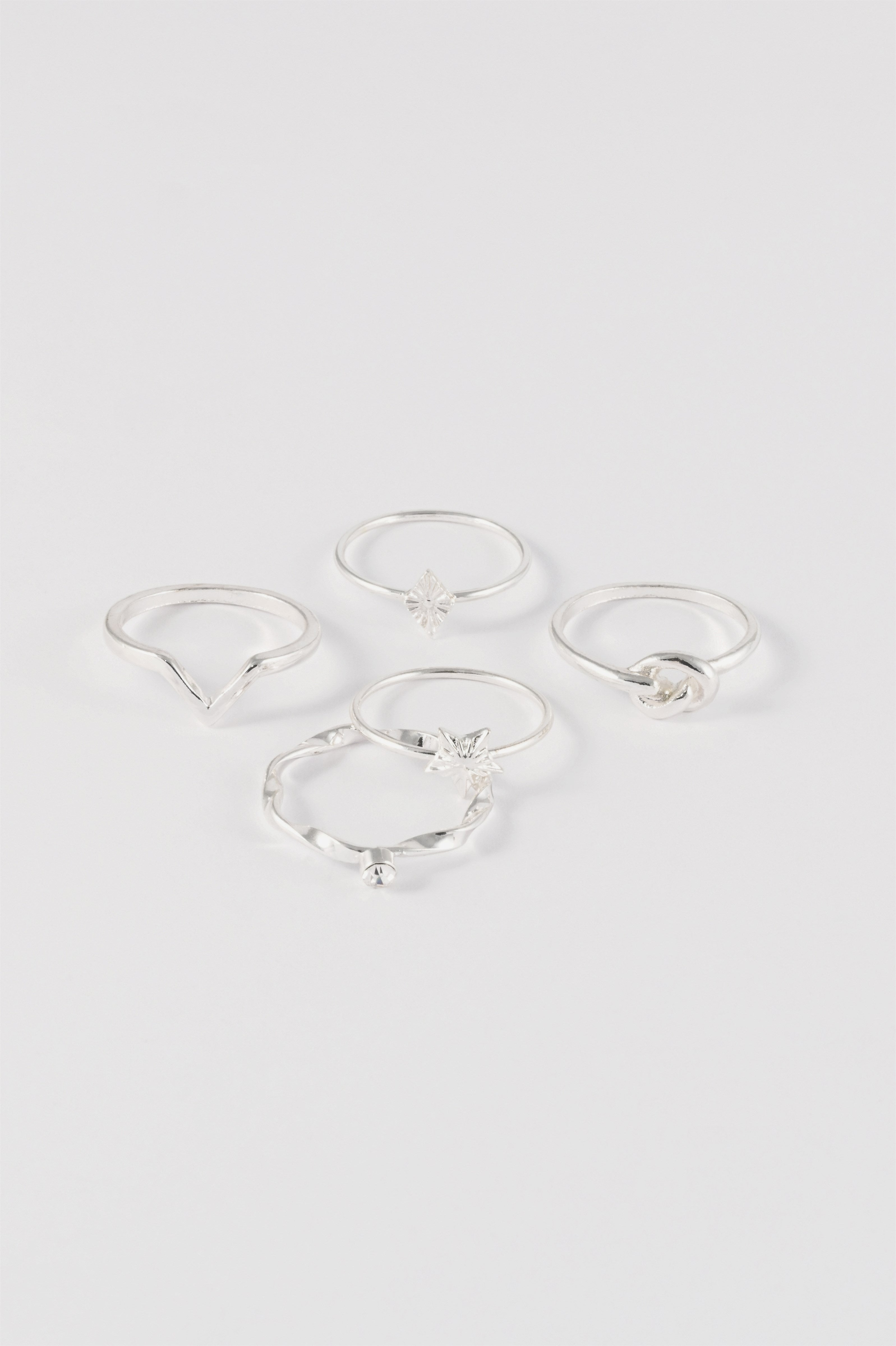 SILVER KNOTTED 5 PACK RINGS - S/M ESSENTIAL SILVER Sale priceR 179.90