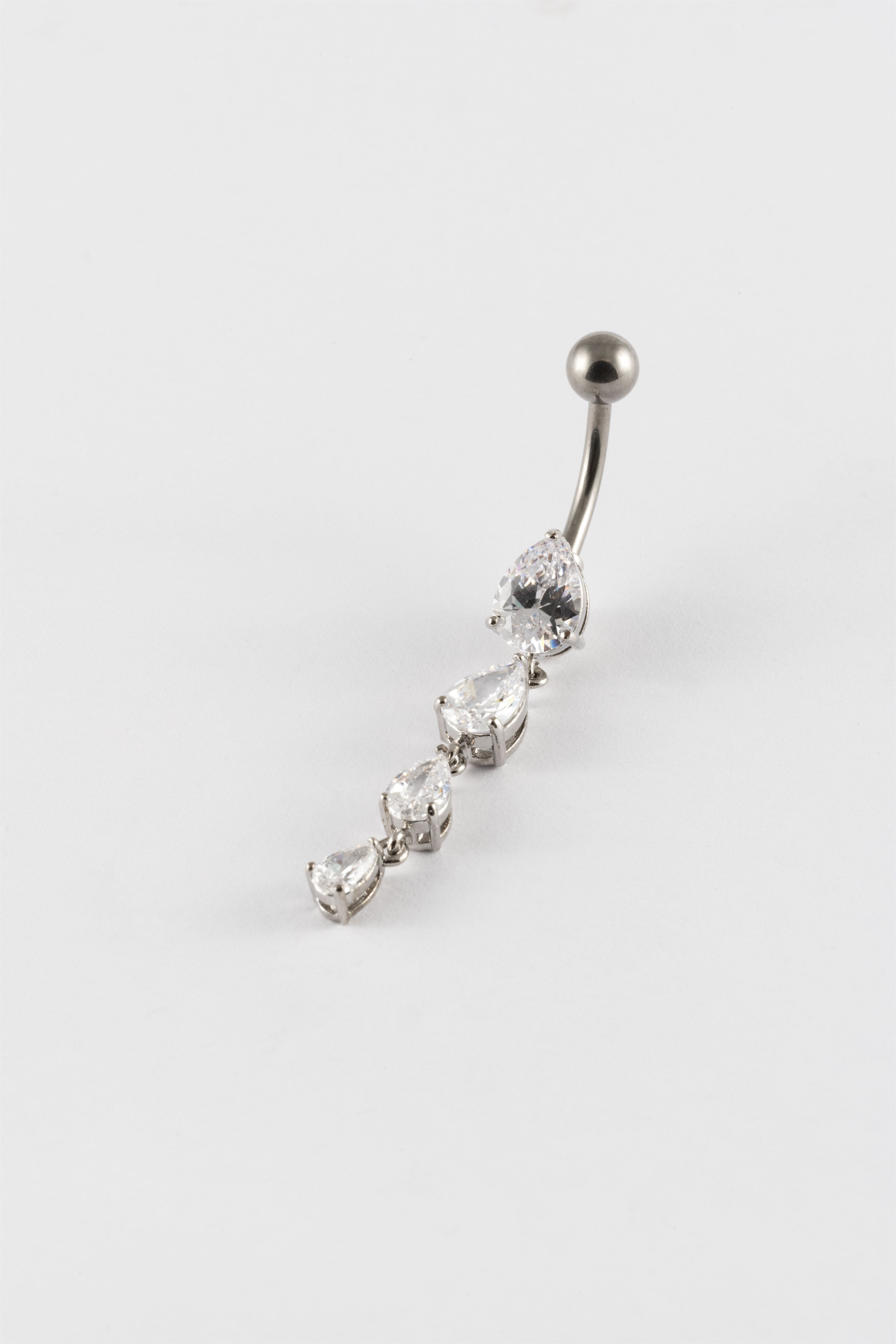SILVER SILVER 14G CZ TRIPPLE TEAR DROP BELLY BAR