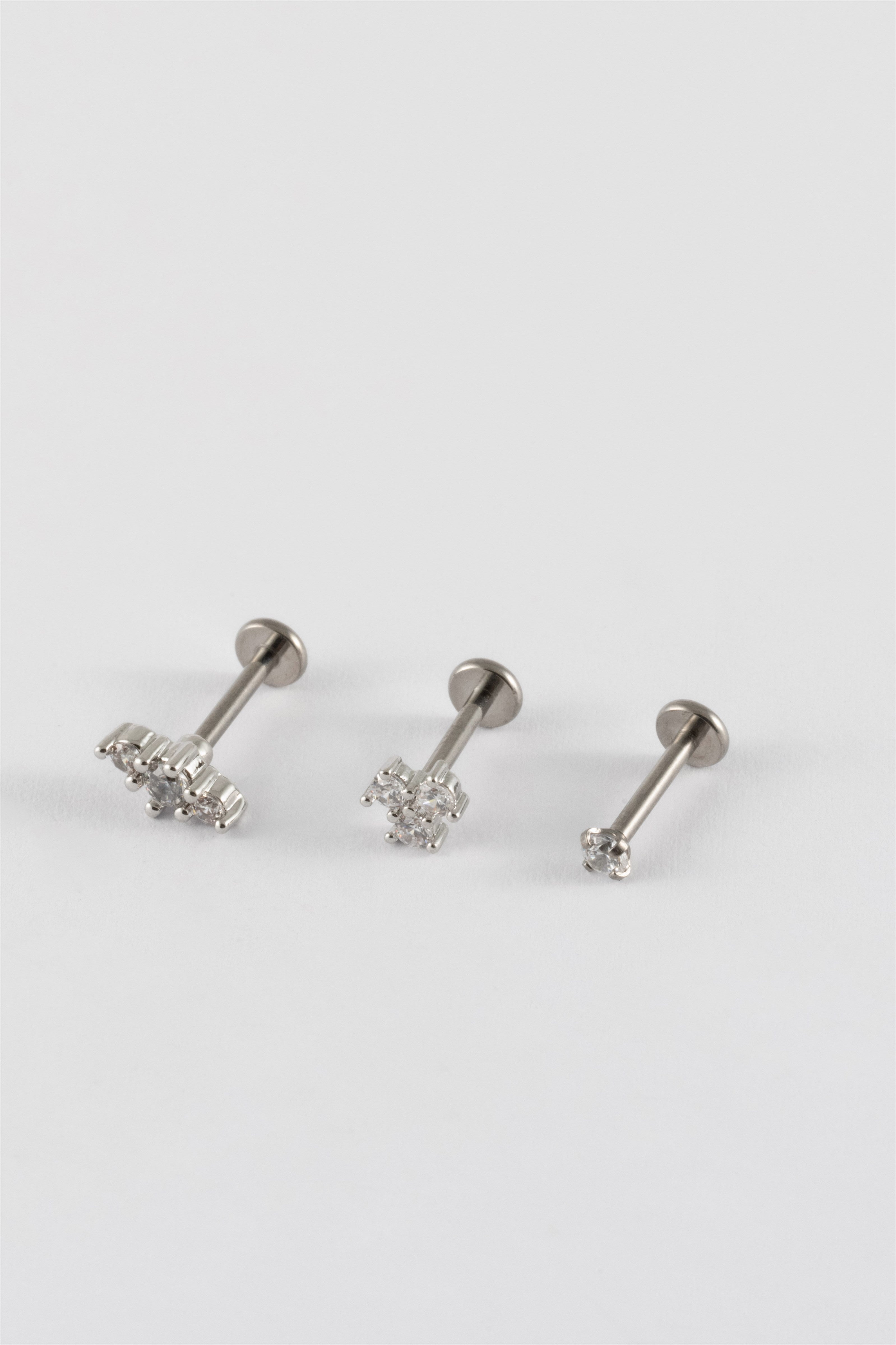16G 3 PACK TITANIUM FLOWER SHAPED CZ FLAT BACK