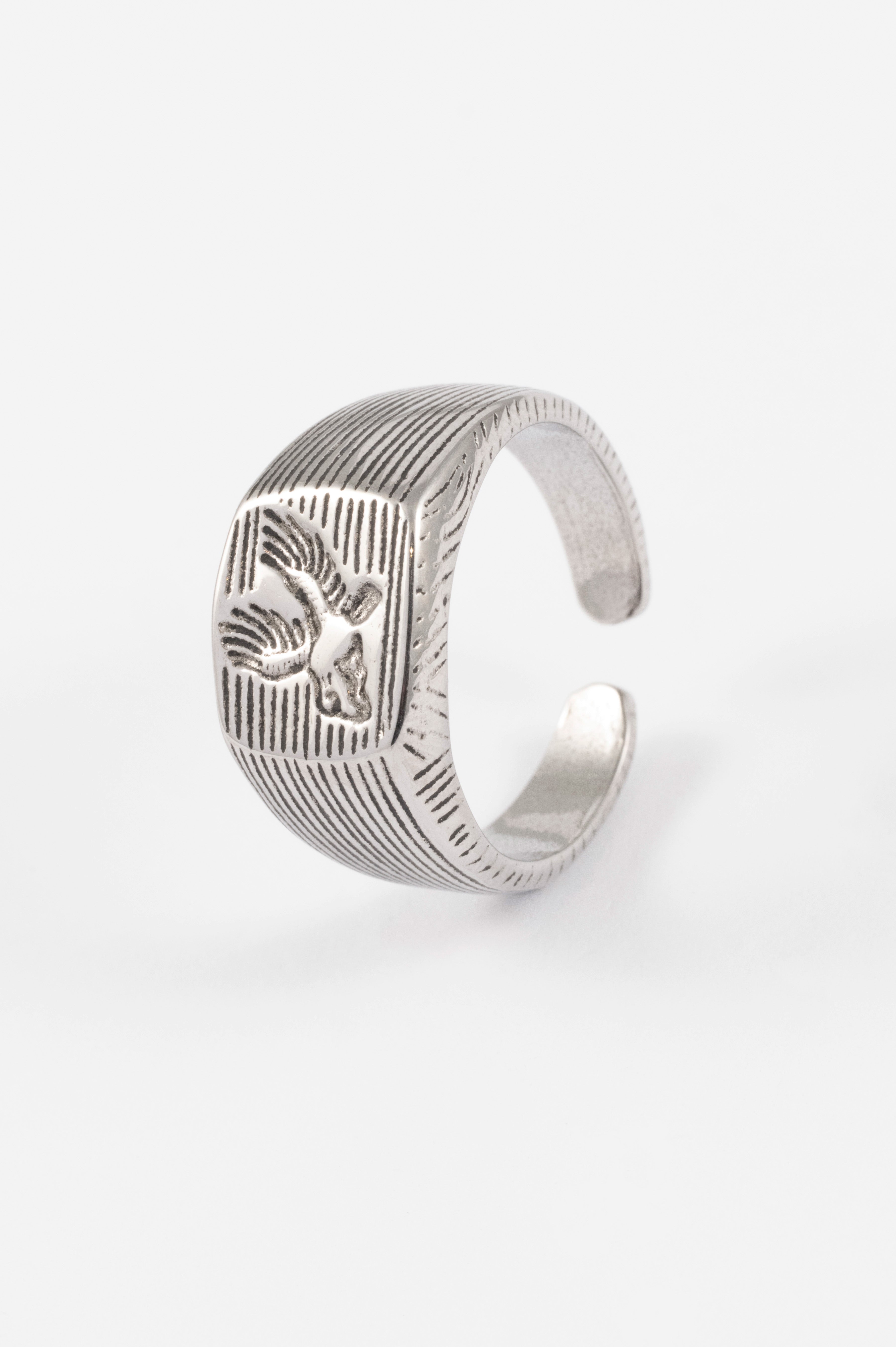ANTIQUE SILVER ETCHED EAGLE SIGNET RING - SM