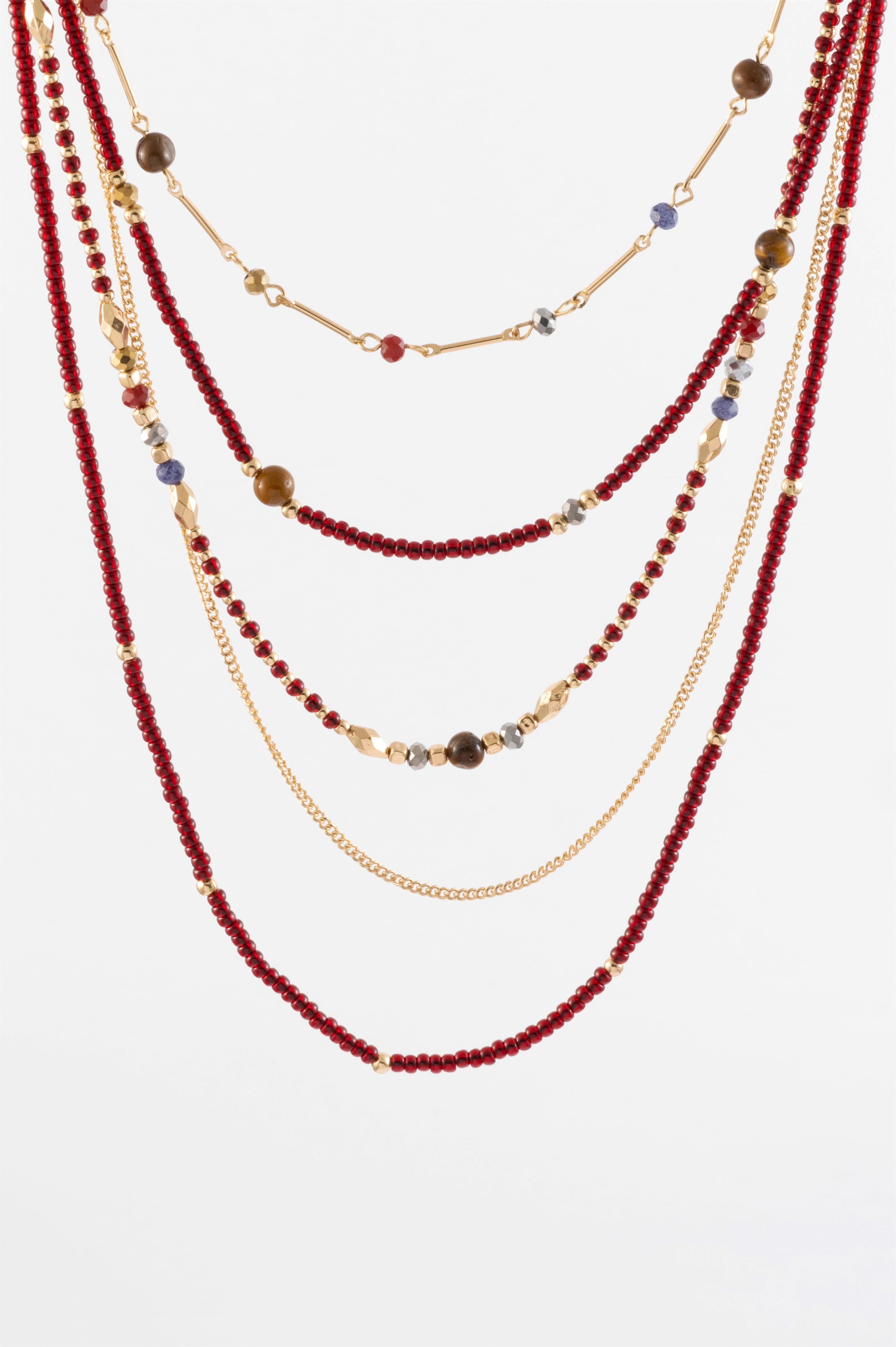 BURGUNDY MULTI BEADED LAYERED NECKLACE