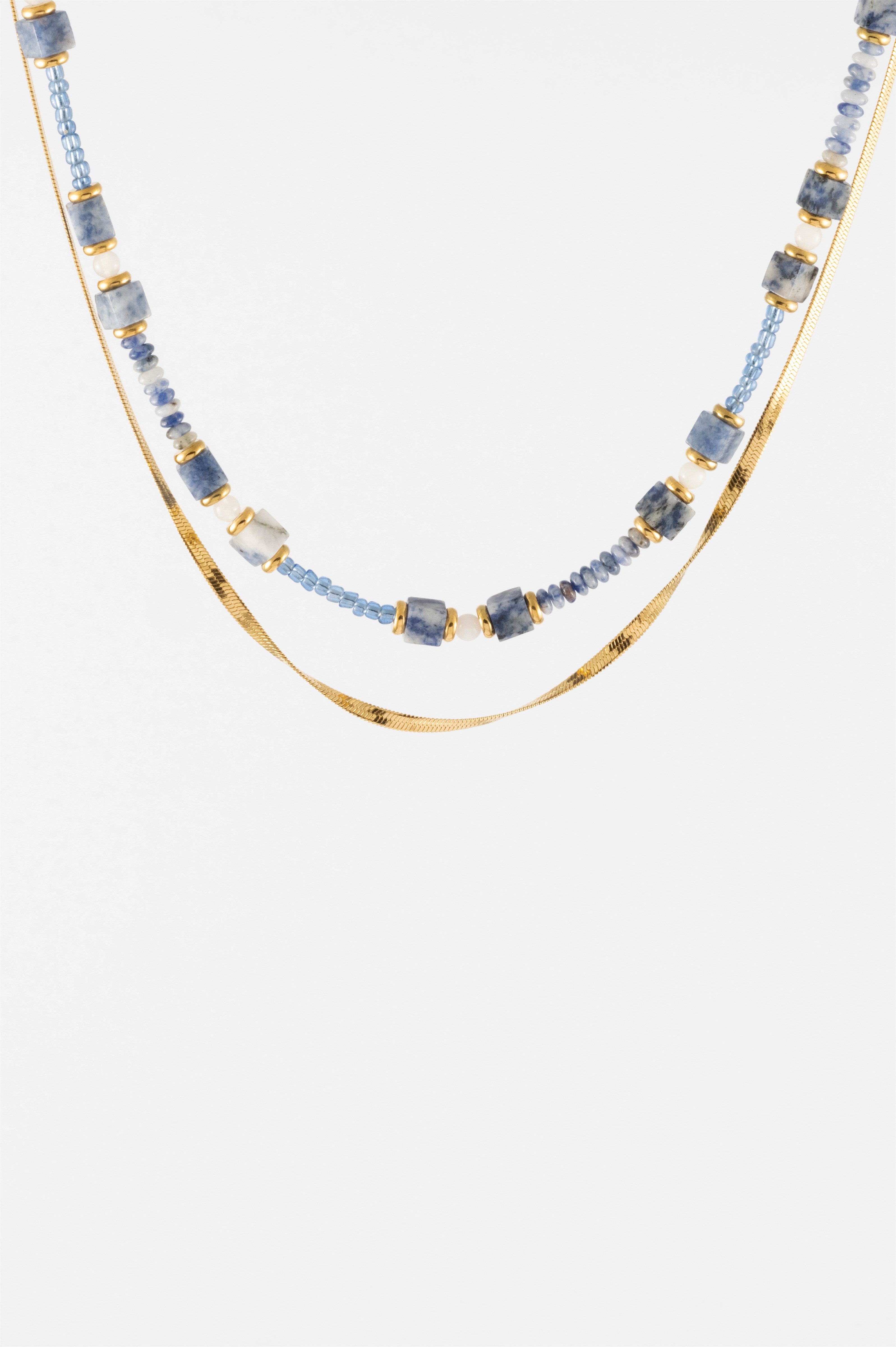 GOLD AND BLUE BEADED FINE CHAIN FLAT SNAKE CHAIN