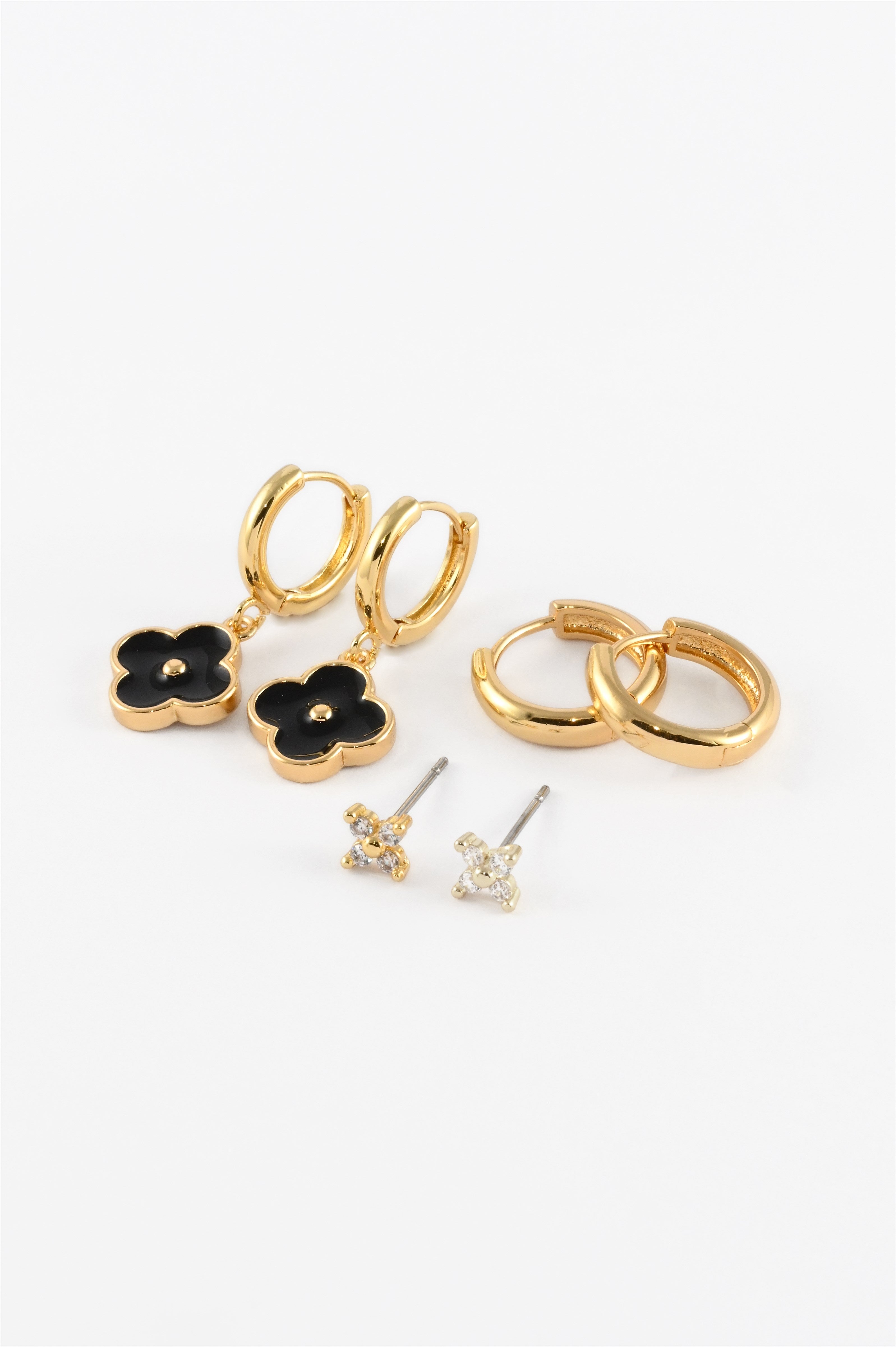 GOLD BLACK FOUR PETAL FLOWER CHARM HUGGIE PACK