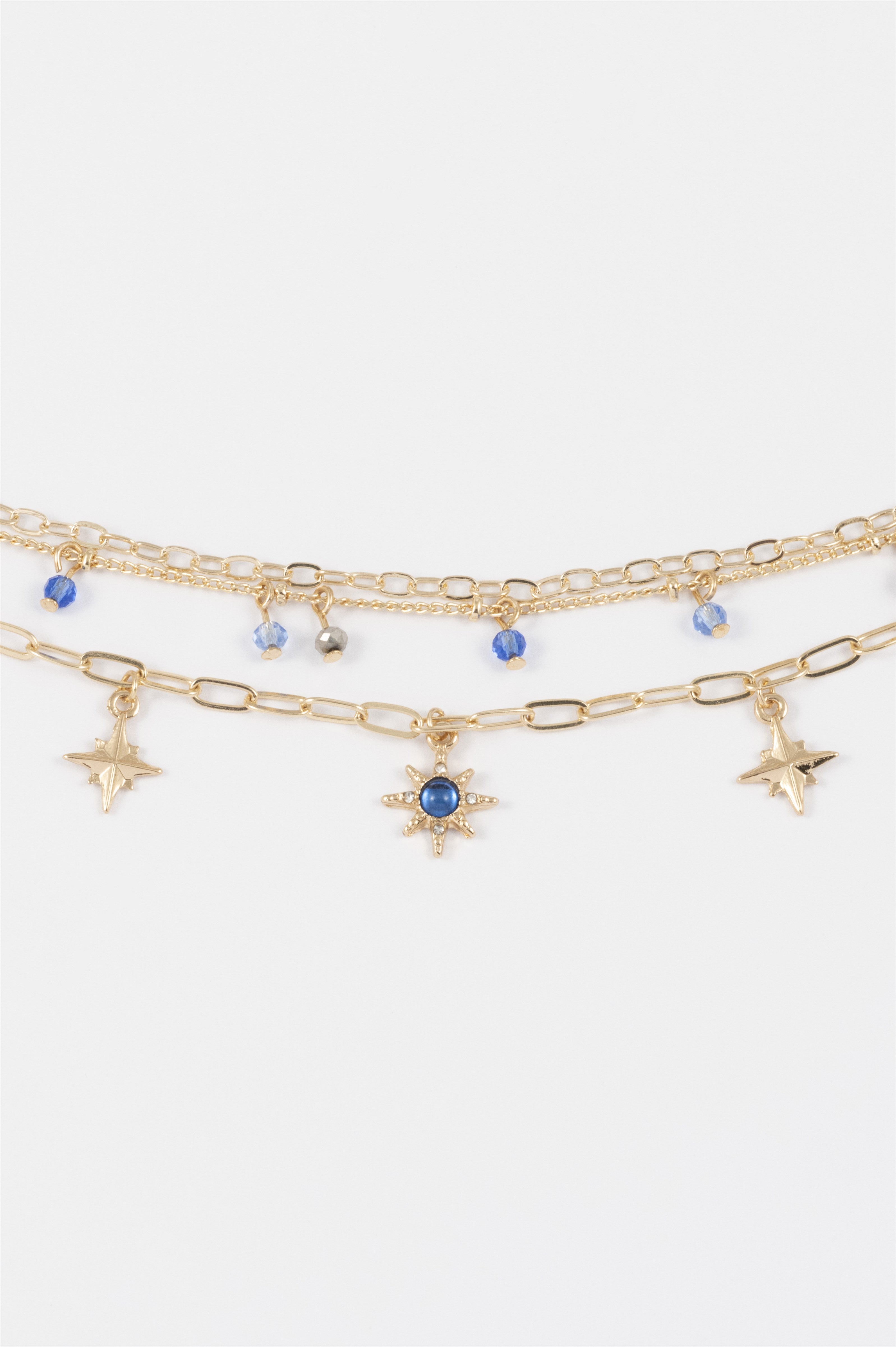 GOLD BLUE BEADED CHARM BRACELET 3 PACK