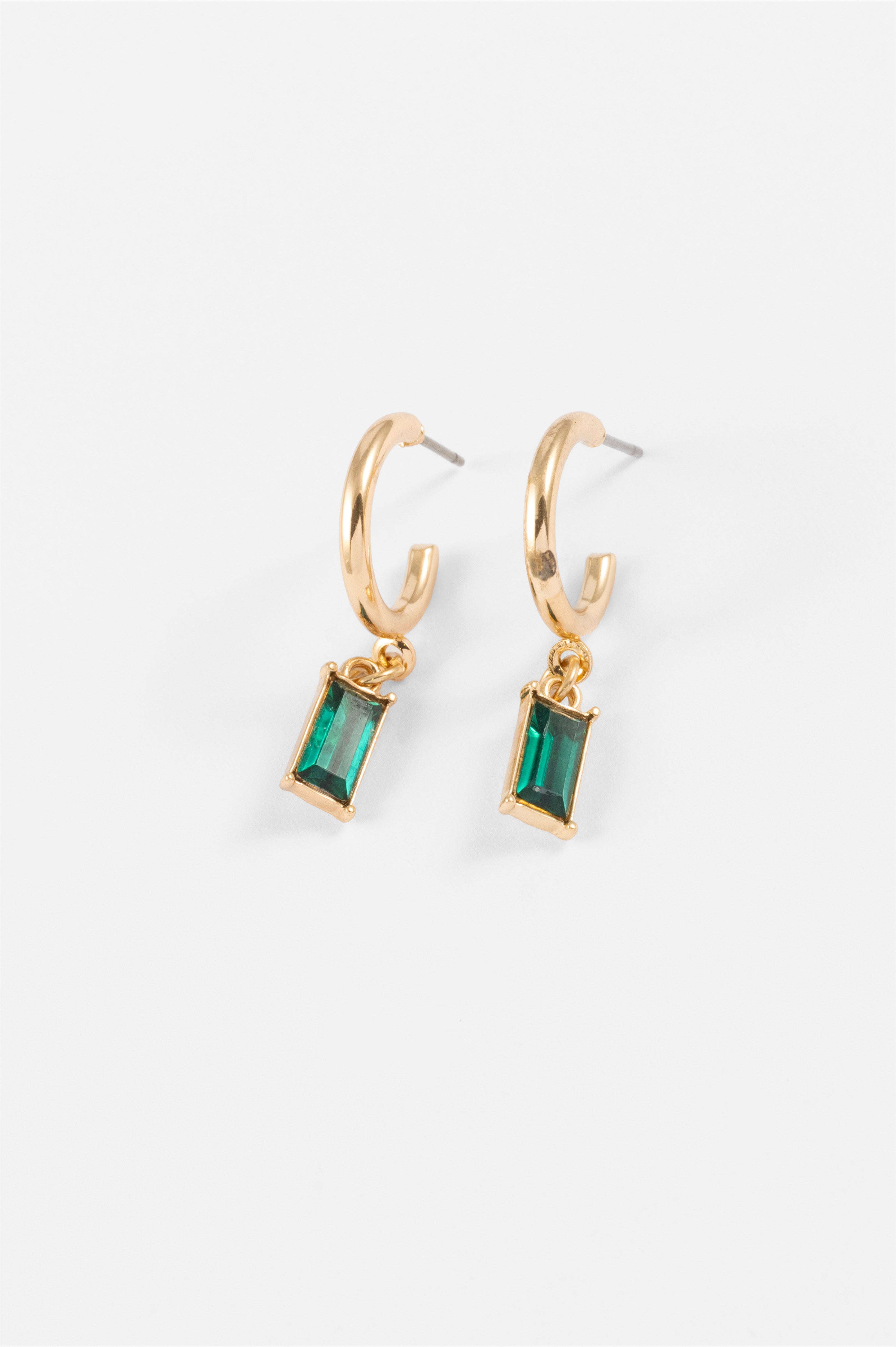 GOLD C SHAPED HOOP WITH EMERALD BAGUETTE CHARM