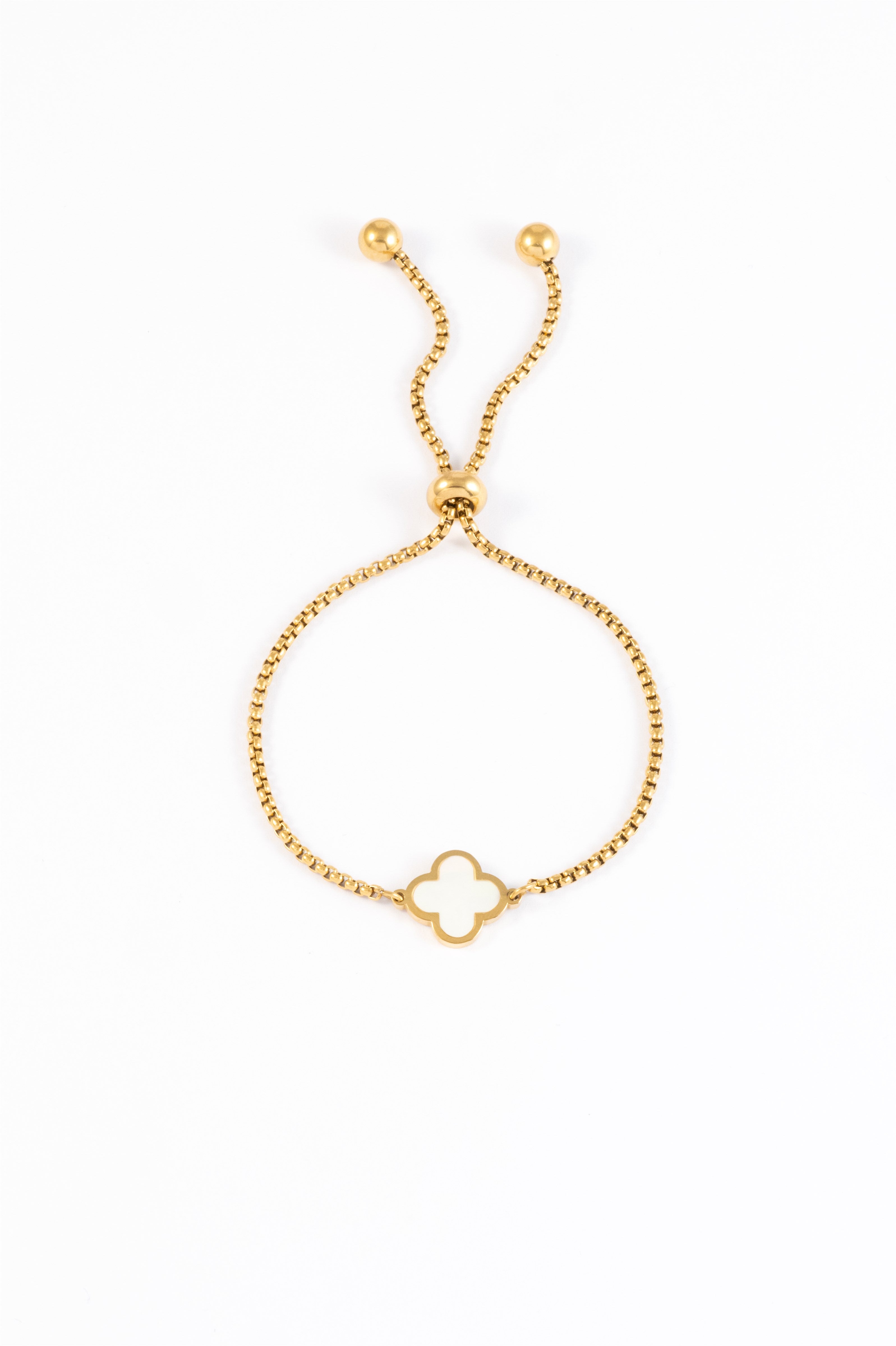 GOLD FOUR PETAL BOX CHAIN TOGGLE BRACELET