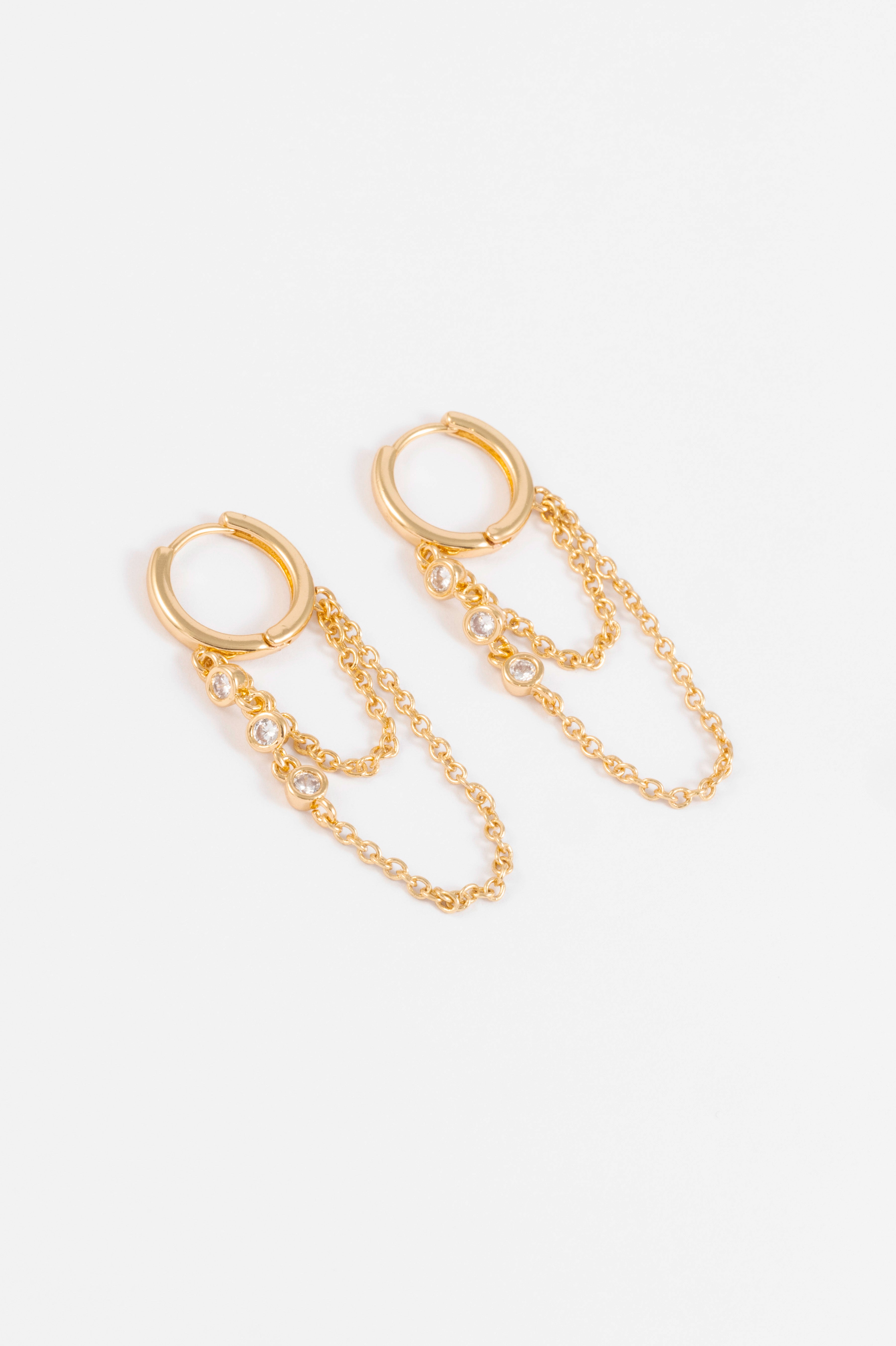 GOLD CZ CHAIN LOOP ILLUSION HUGGIE EARRINGS