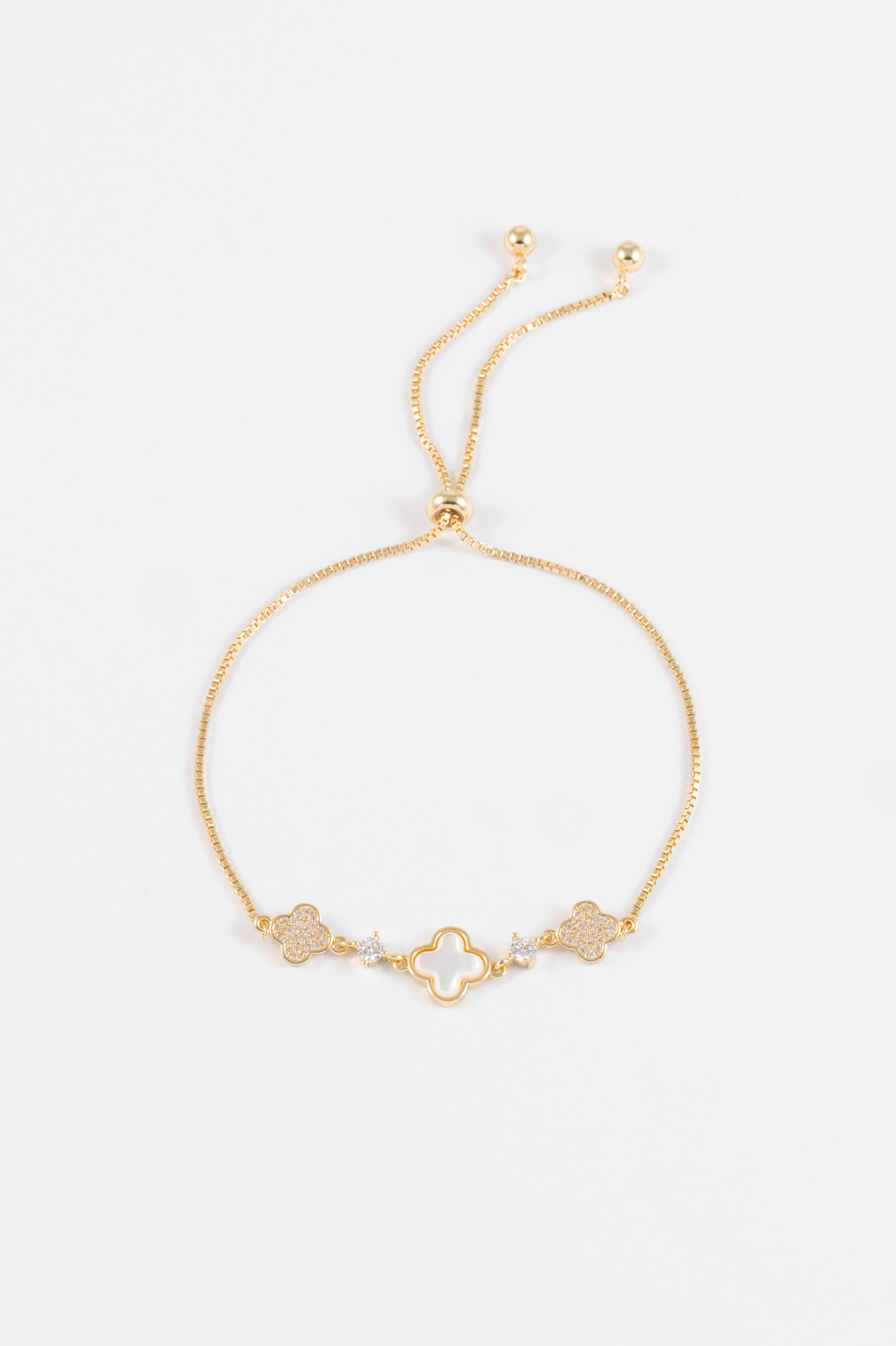 GOLD CZ 4 PETAL FLOWER ADJUSTABLE BRACELET