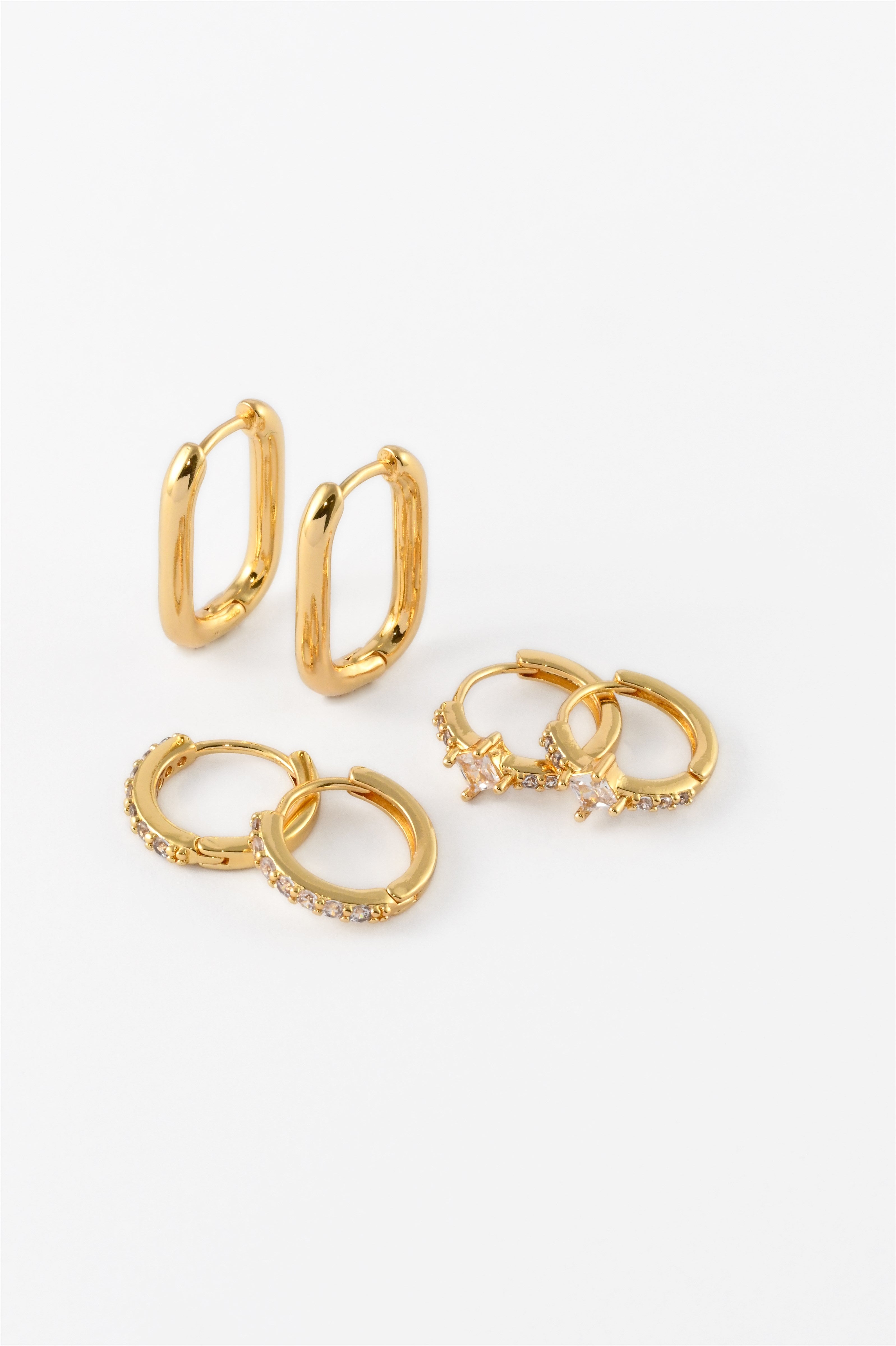 GOLD CZ GEOMETRIC PAVE HUGGIE PACK