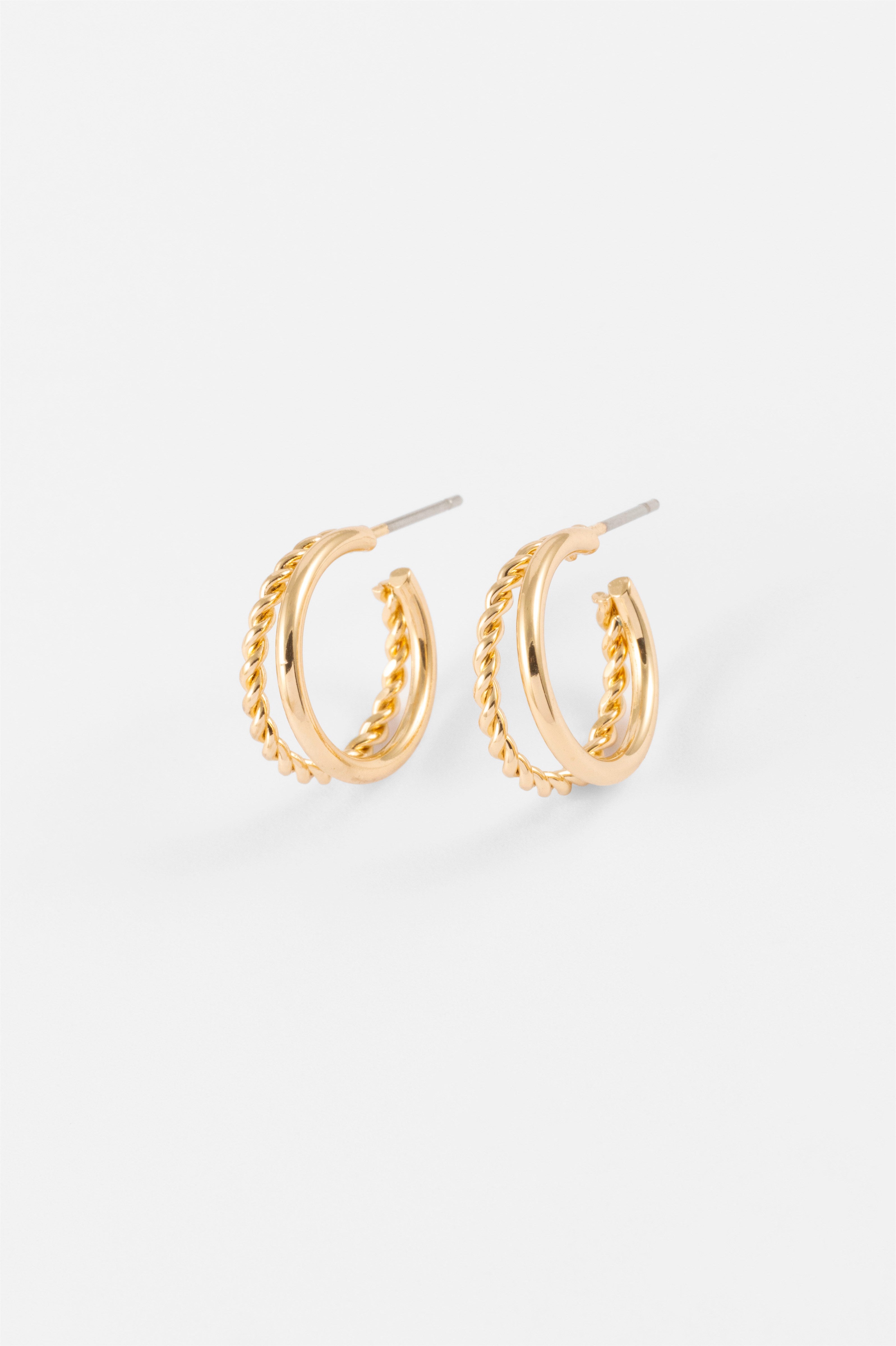 GOLD DOUBLE HOOP WITH TWIST C SHAPED HOOP