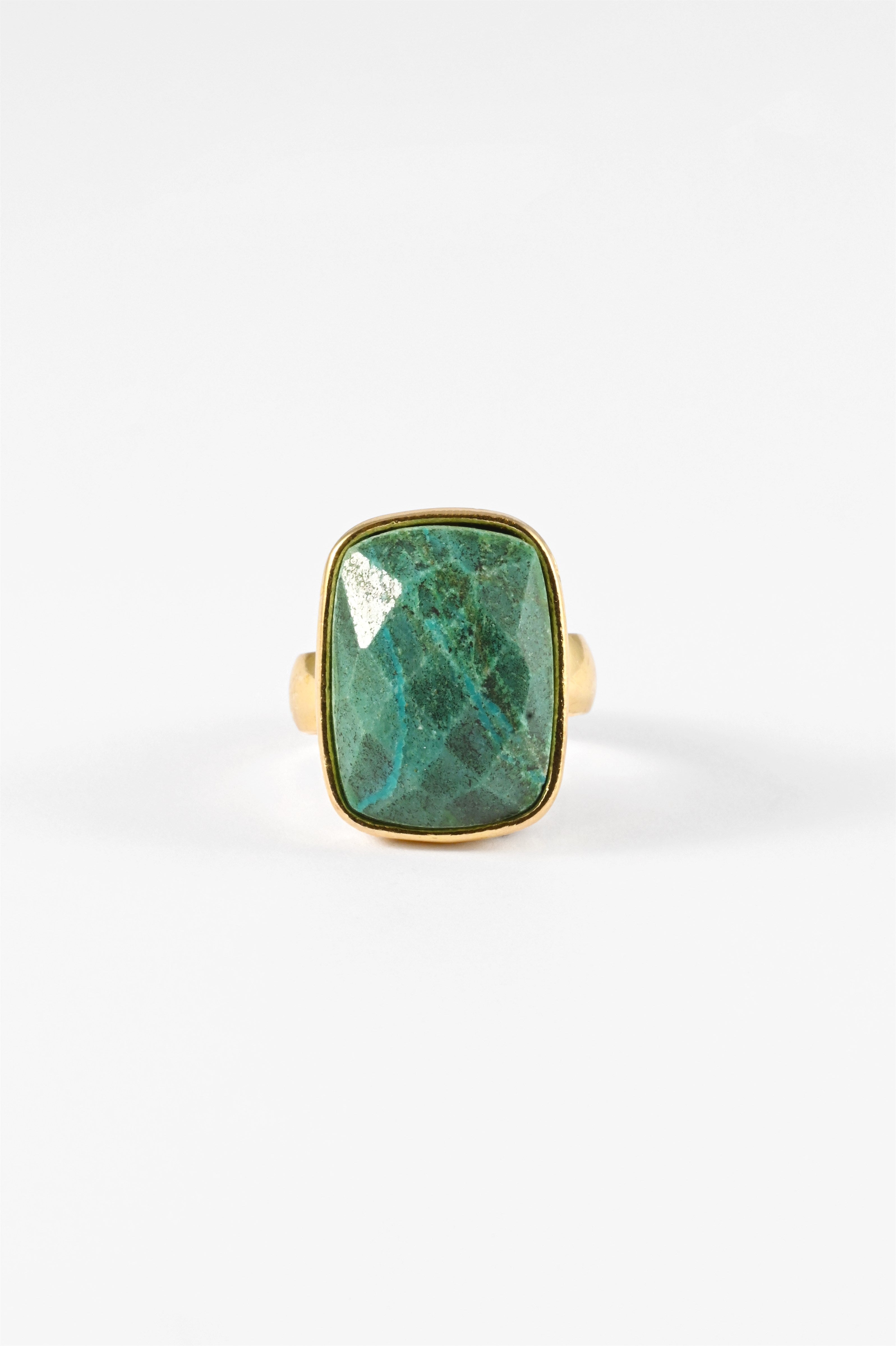 GOLD GREEN GEM STONE STATEMENT RING - S/M