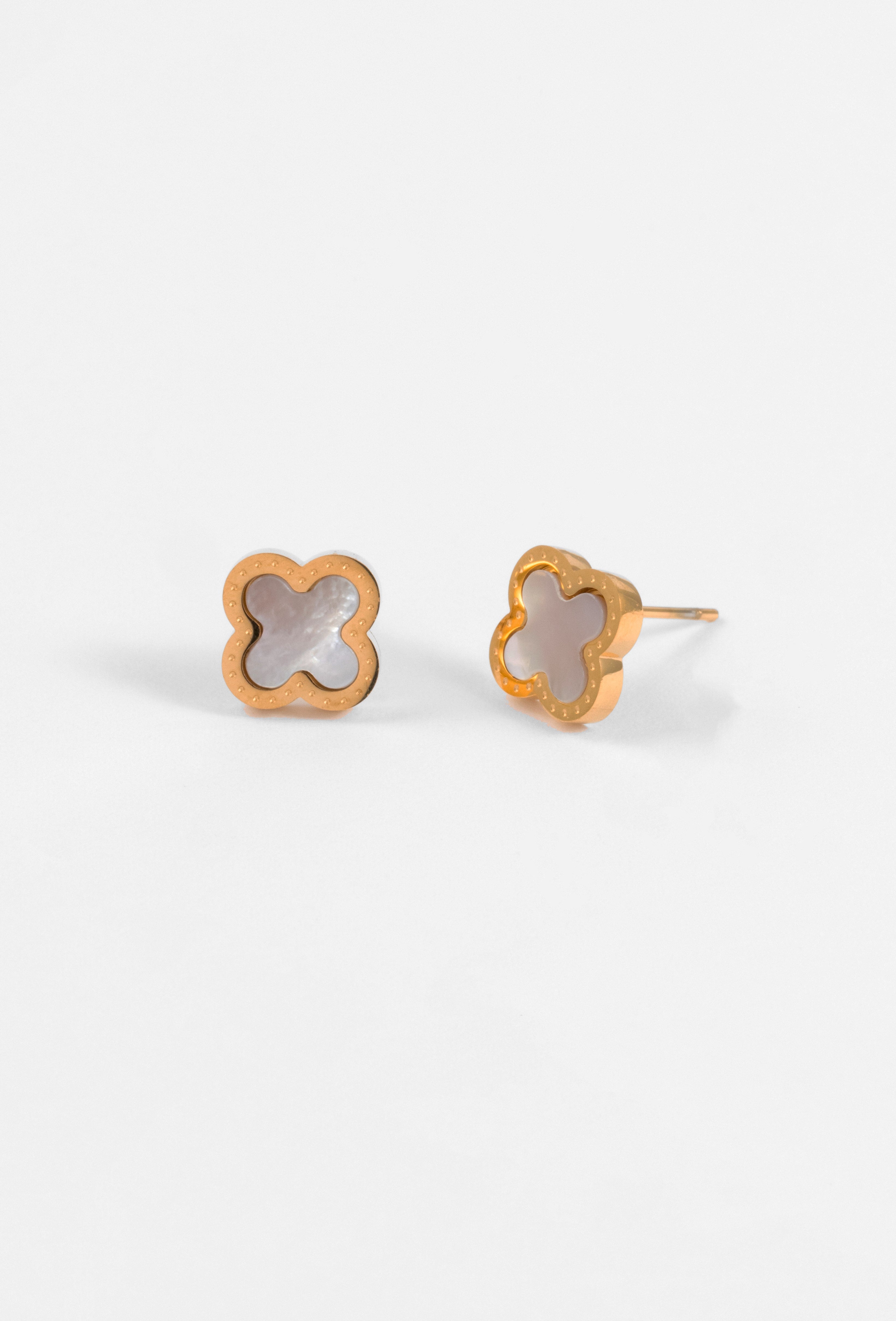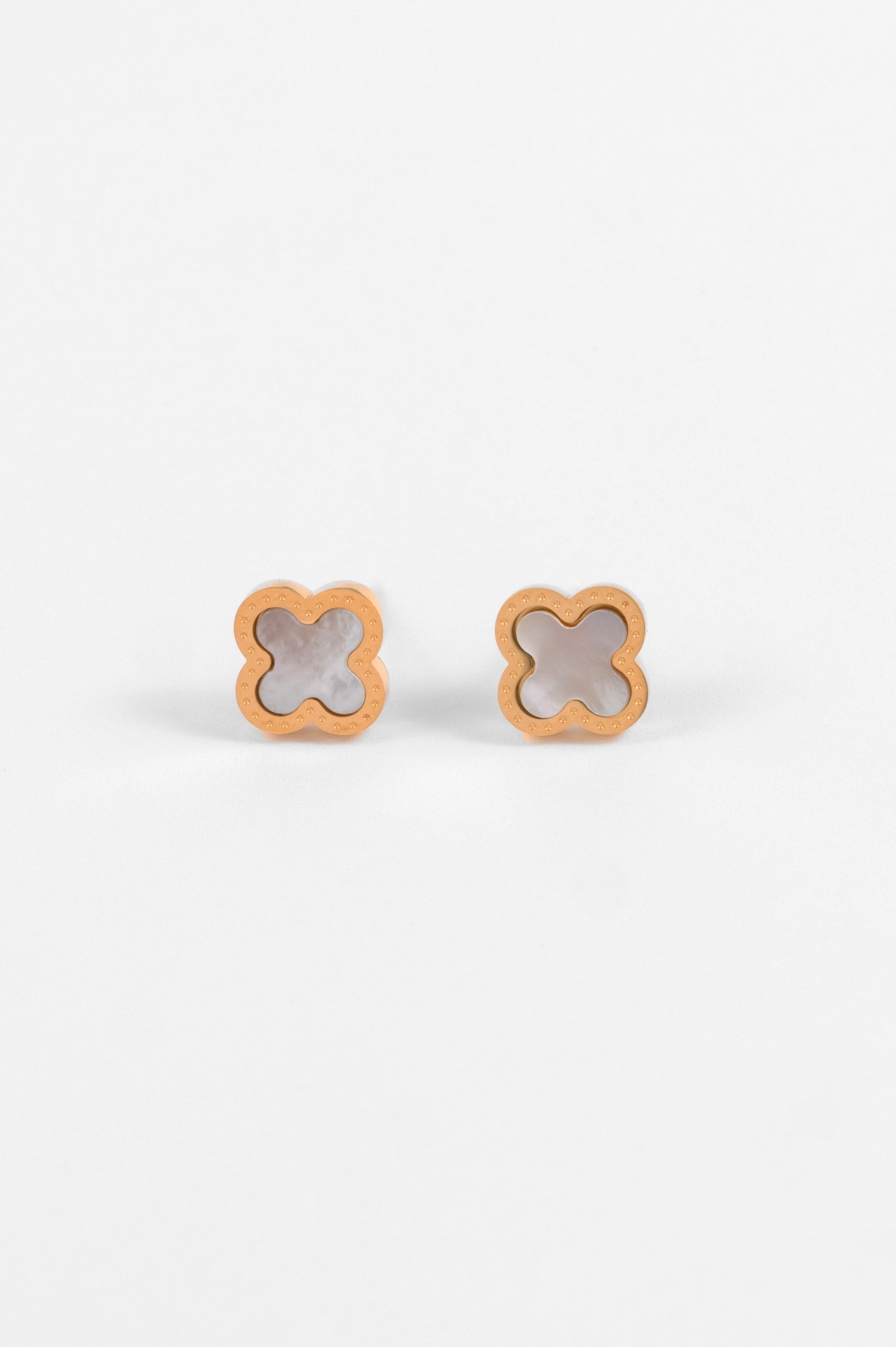 GOLD IRIDESCENT FOUR PETAL STUD EARRINGS