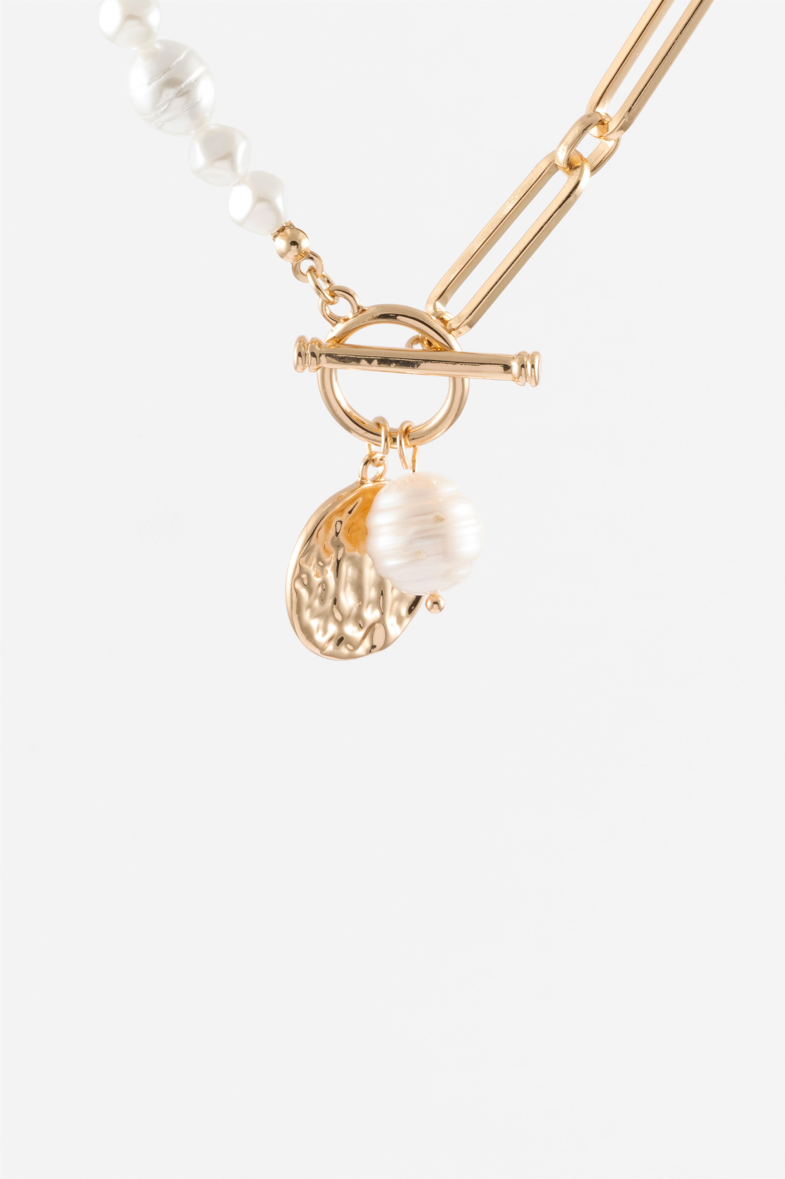 GOLD LARGE LINK FRESHWATER PEARL FOB NECKLACE