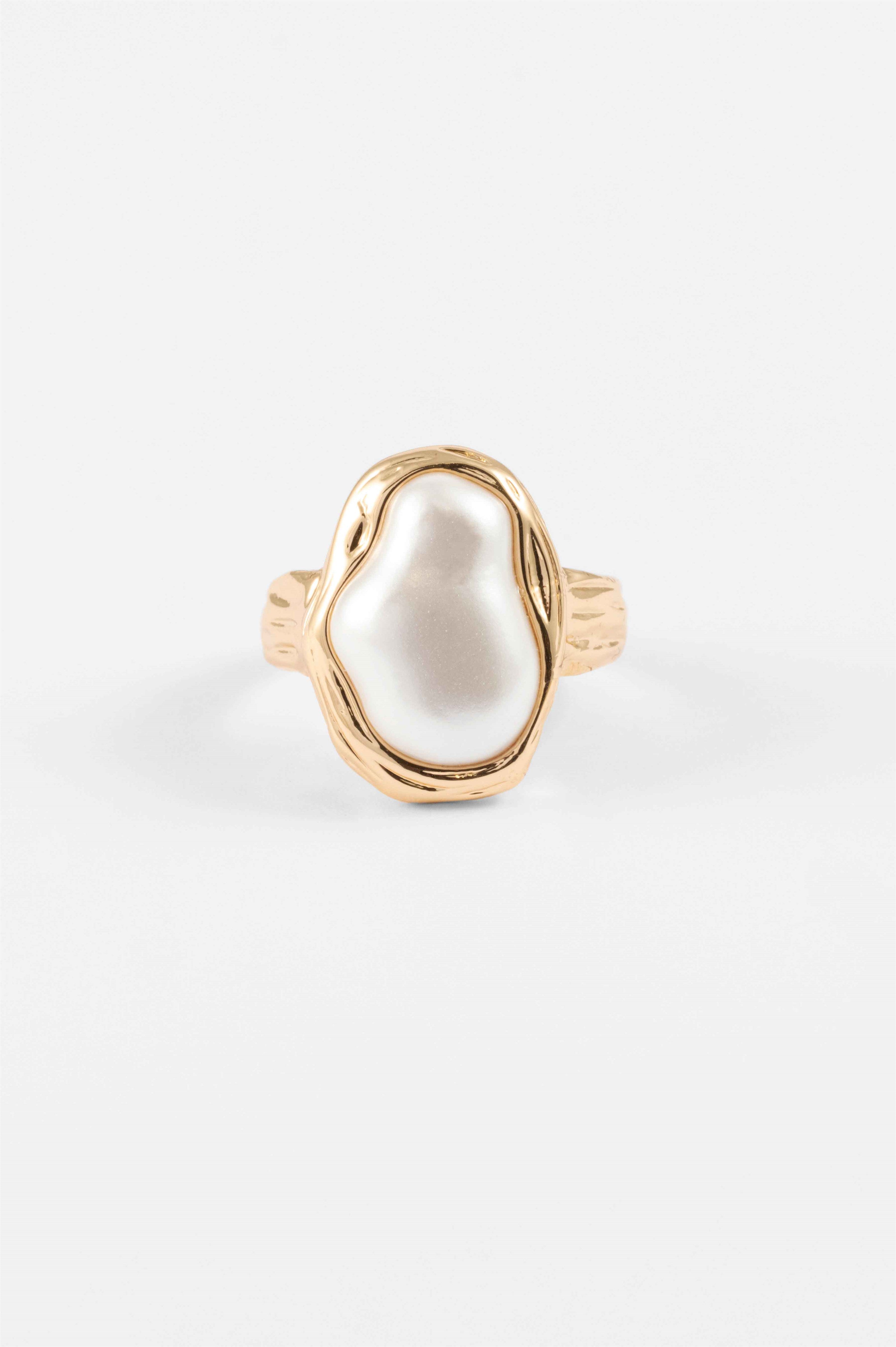 GOLD MOLTEN PEARL INSET STATEMENT RING SM