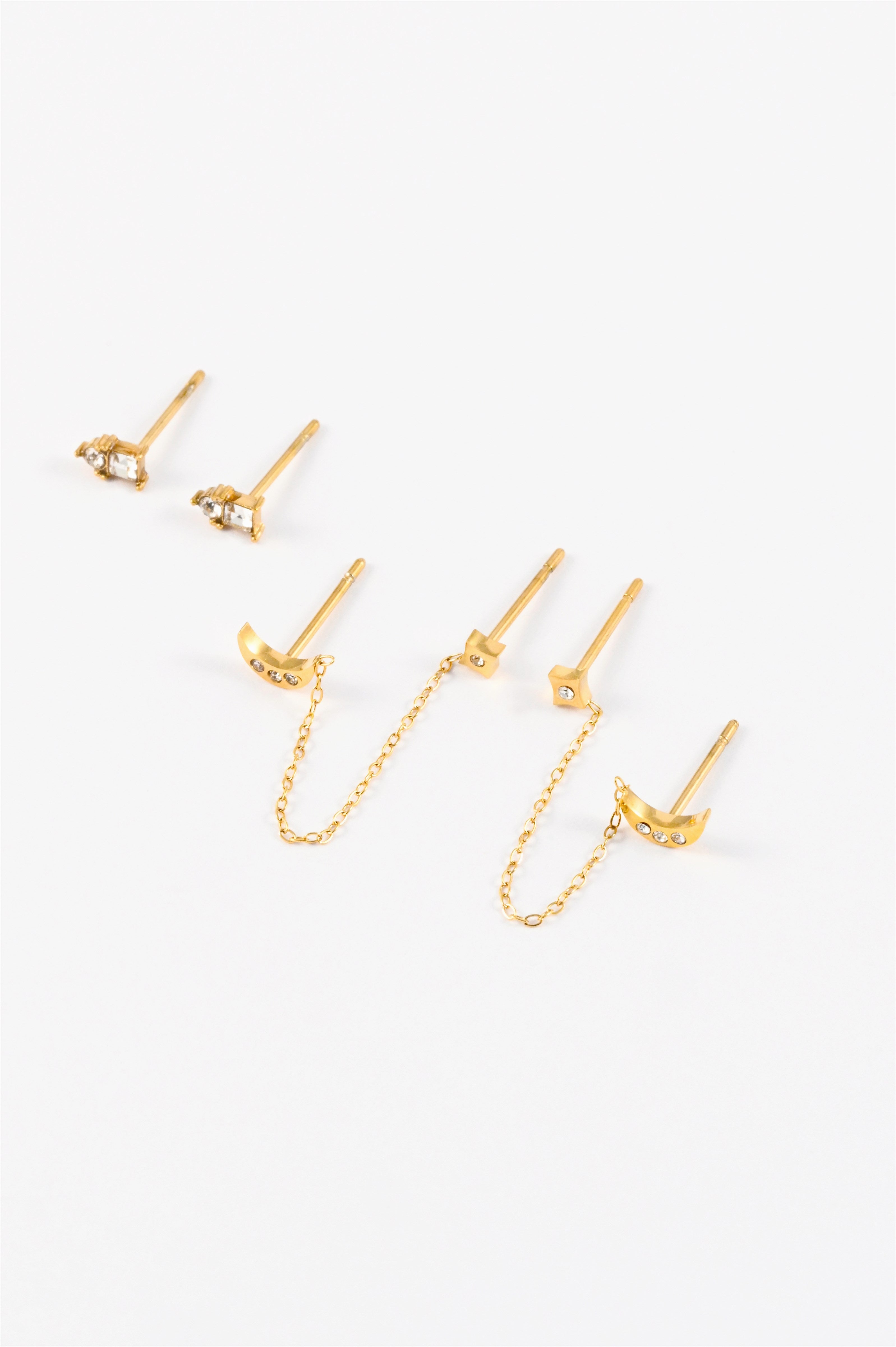 GOLD MOON STAR CHAIN 2 PACK STUD EARRING