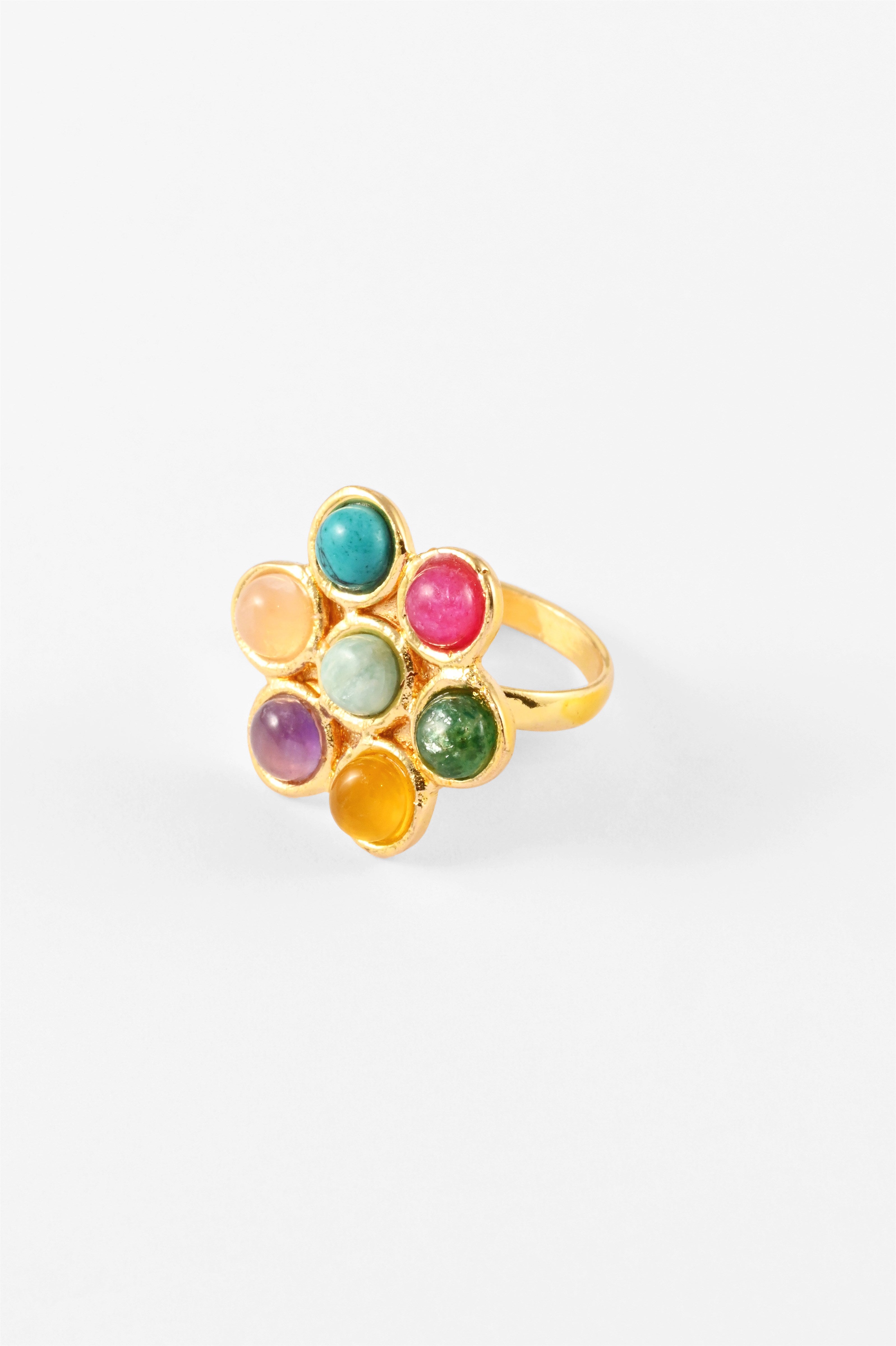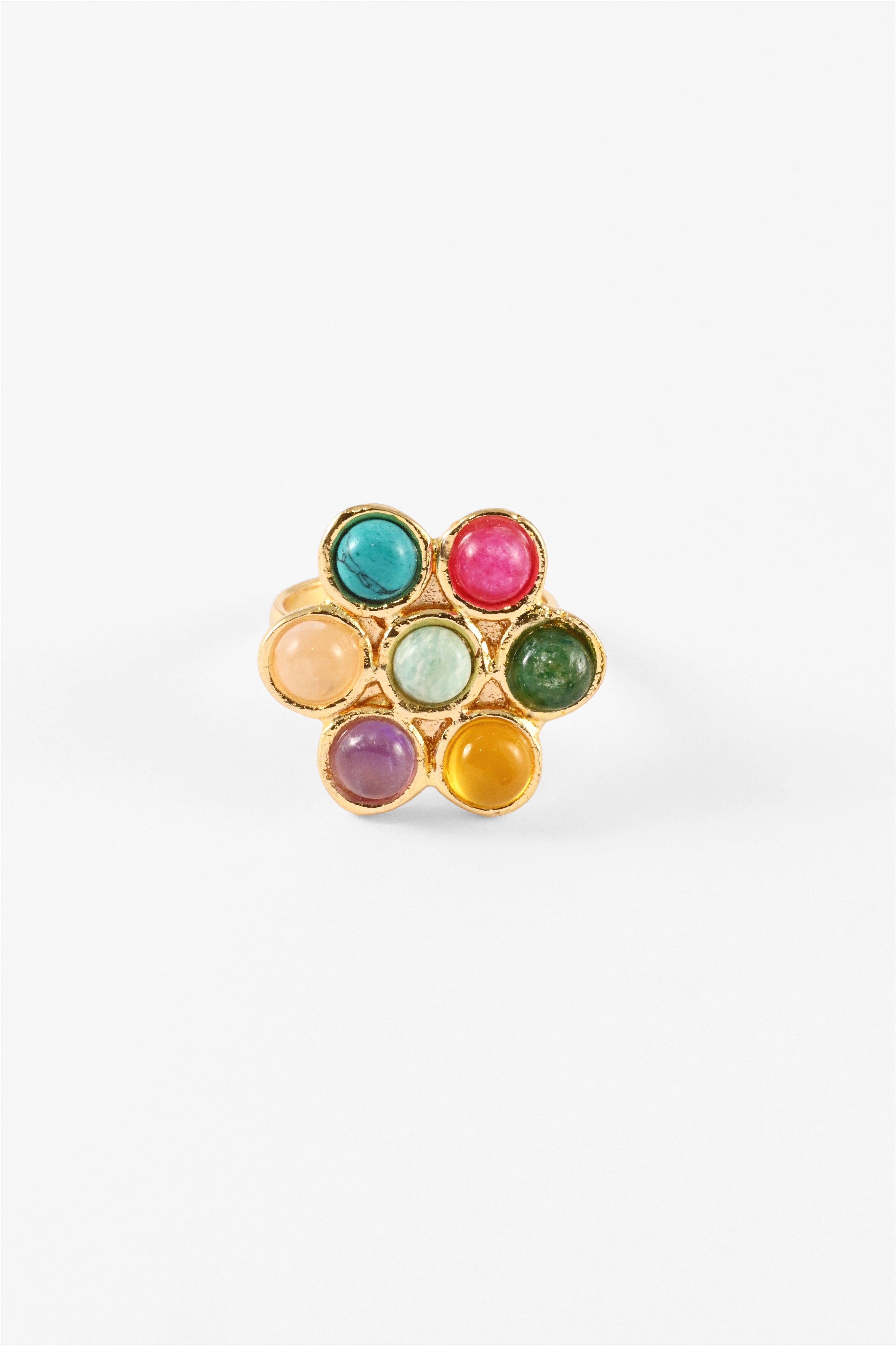 GOLD MULTI GEM STONE STATEMENT FLOWER RING - S/M