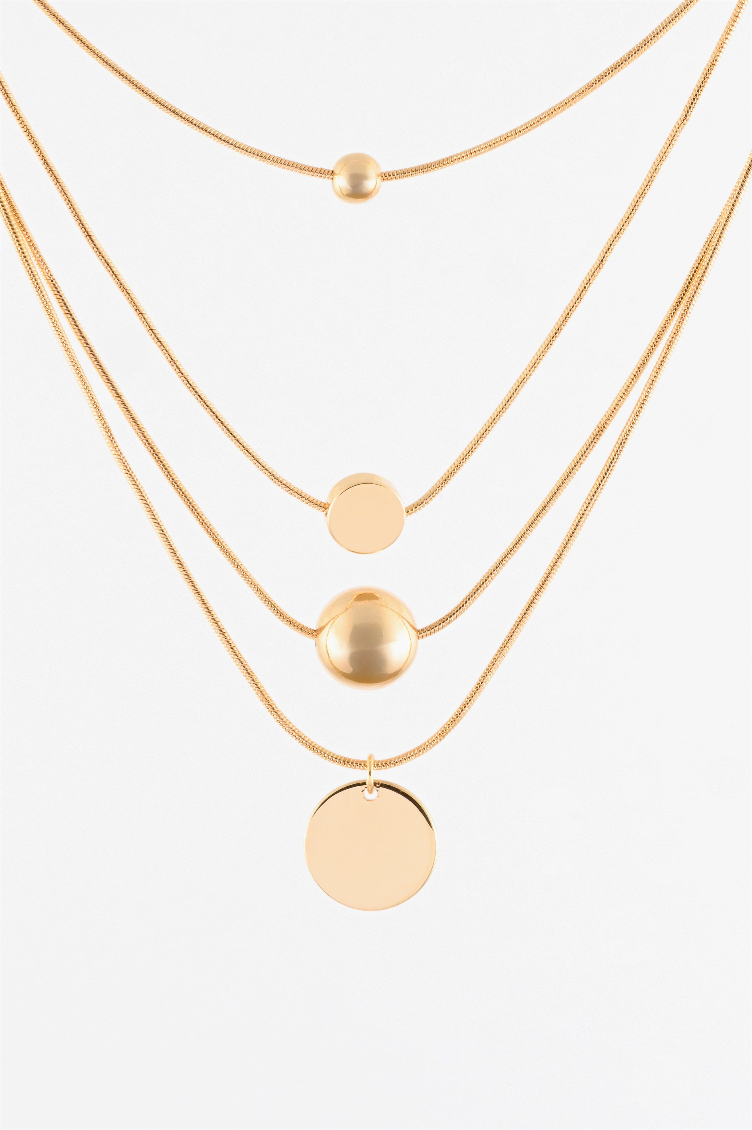 GOLD MULTI LAYERED DROP WITH CIRCLE CHARM NECKLACE