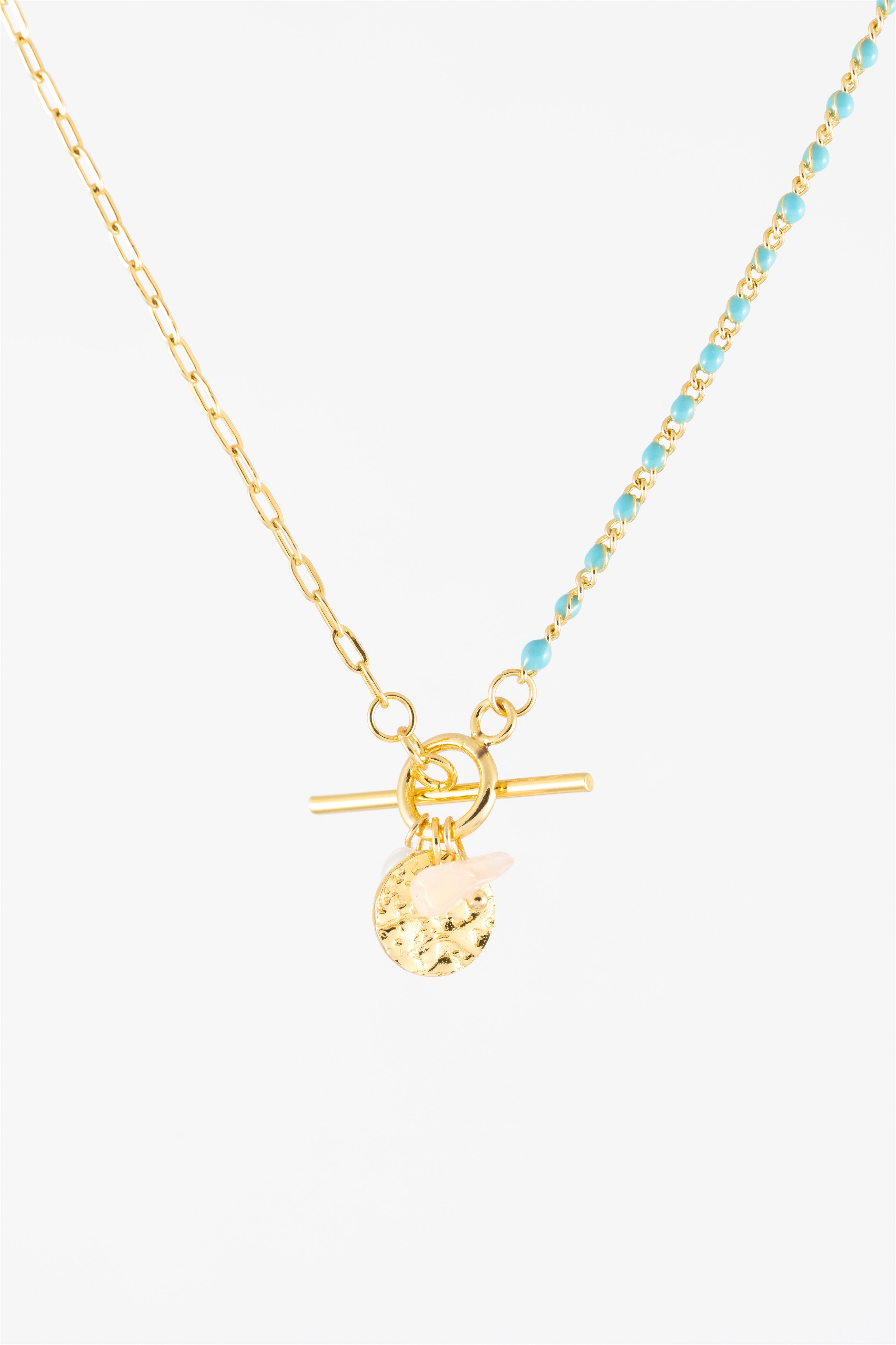 GOLD O+T ENAMEL, PEARL PENDANT NECKLACE