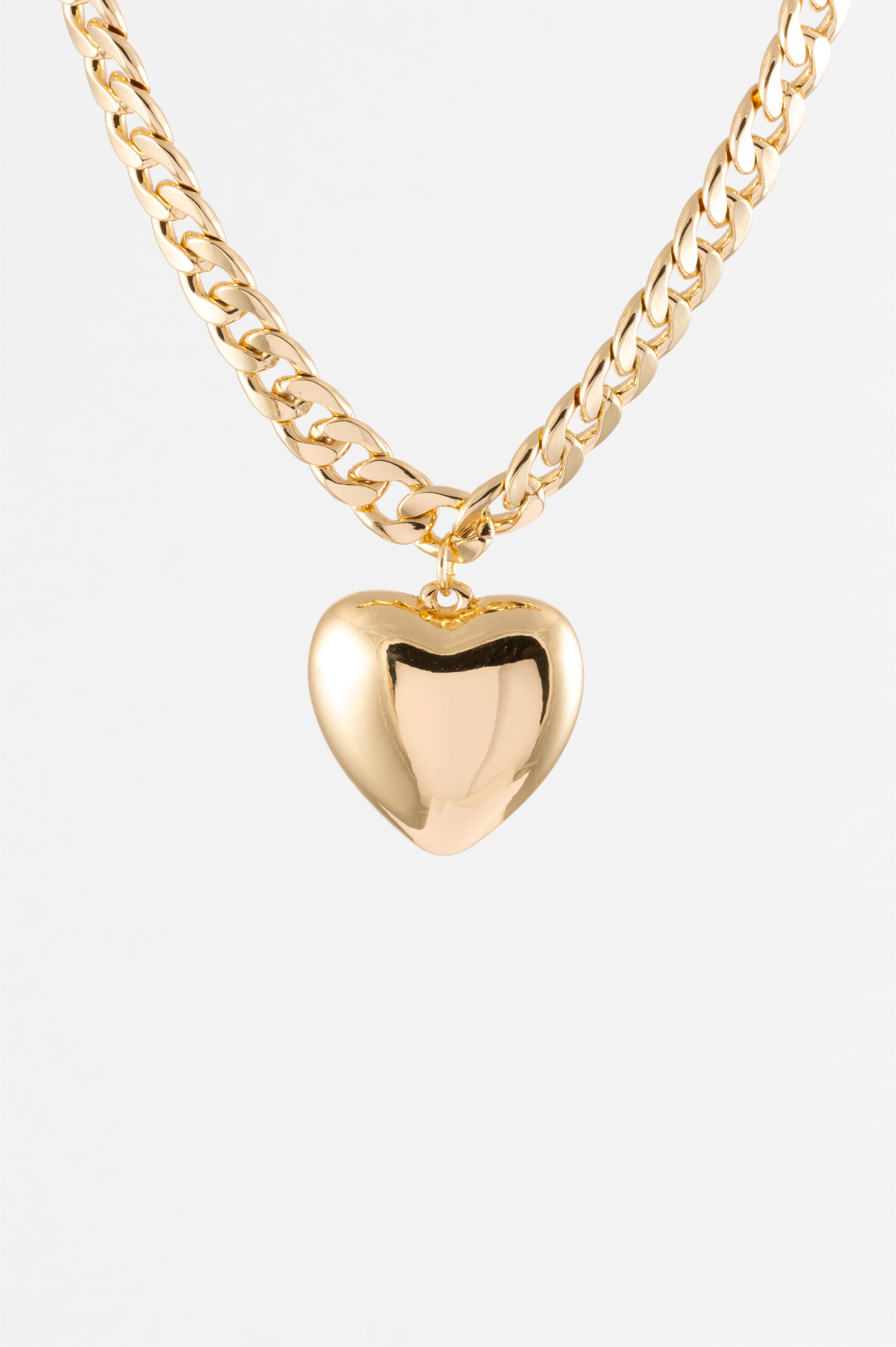 GOLD POLISHED LARGE HEART PENDANT NECKLACE