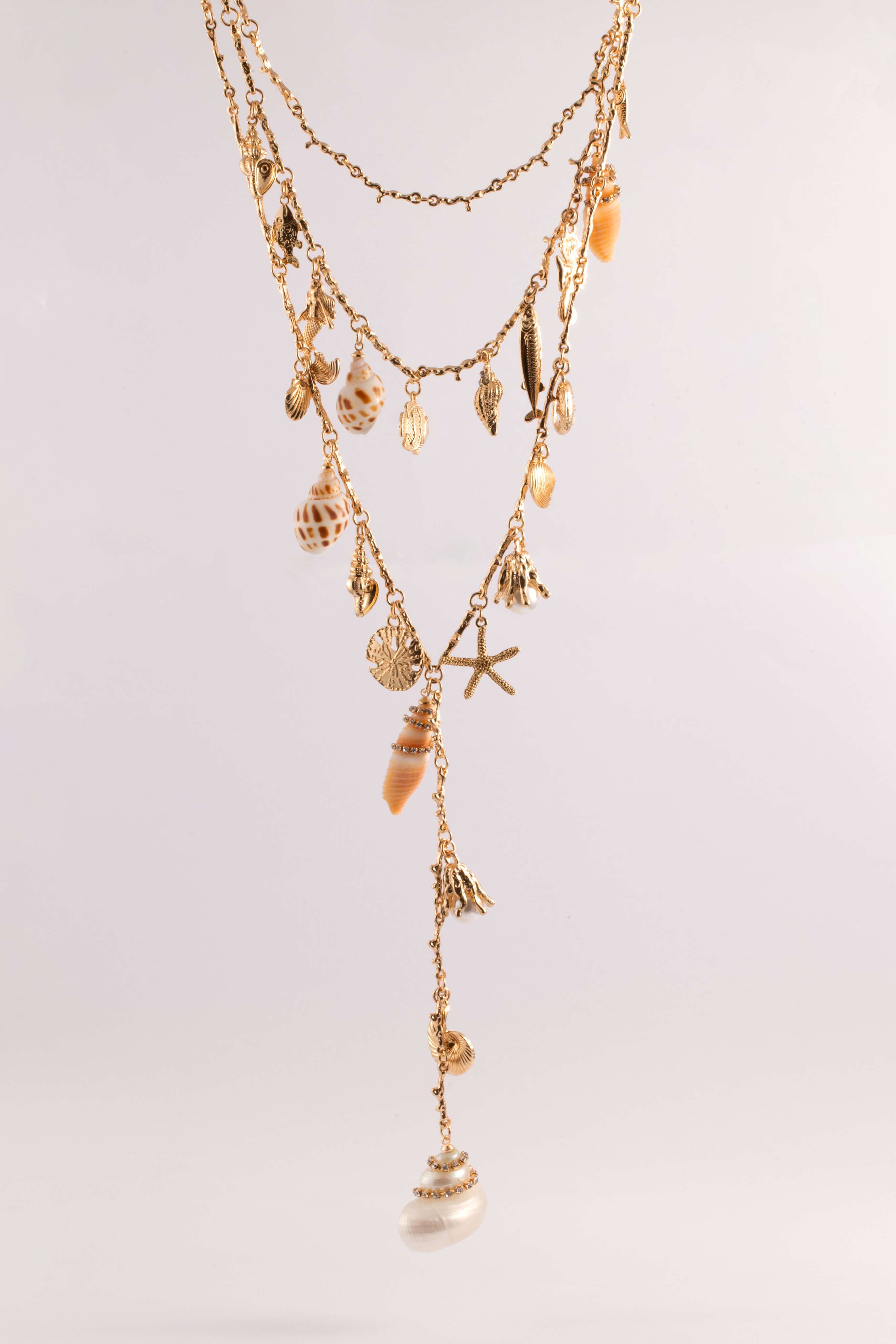 GOLD SHELL MERMAID CHARM LAYERED NECKLACE
