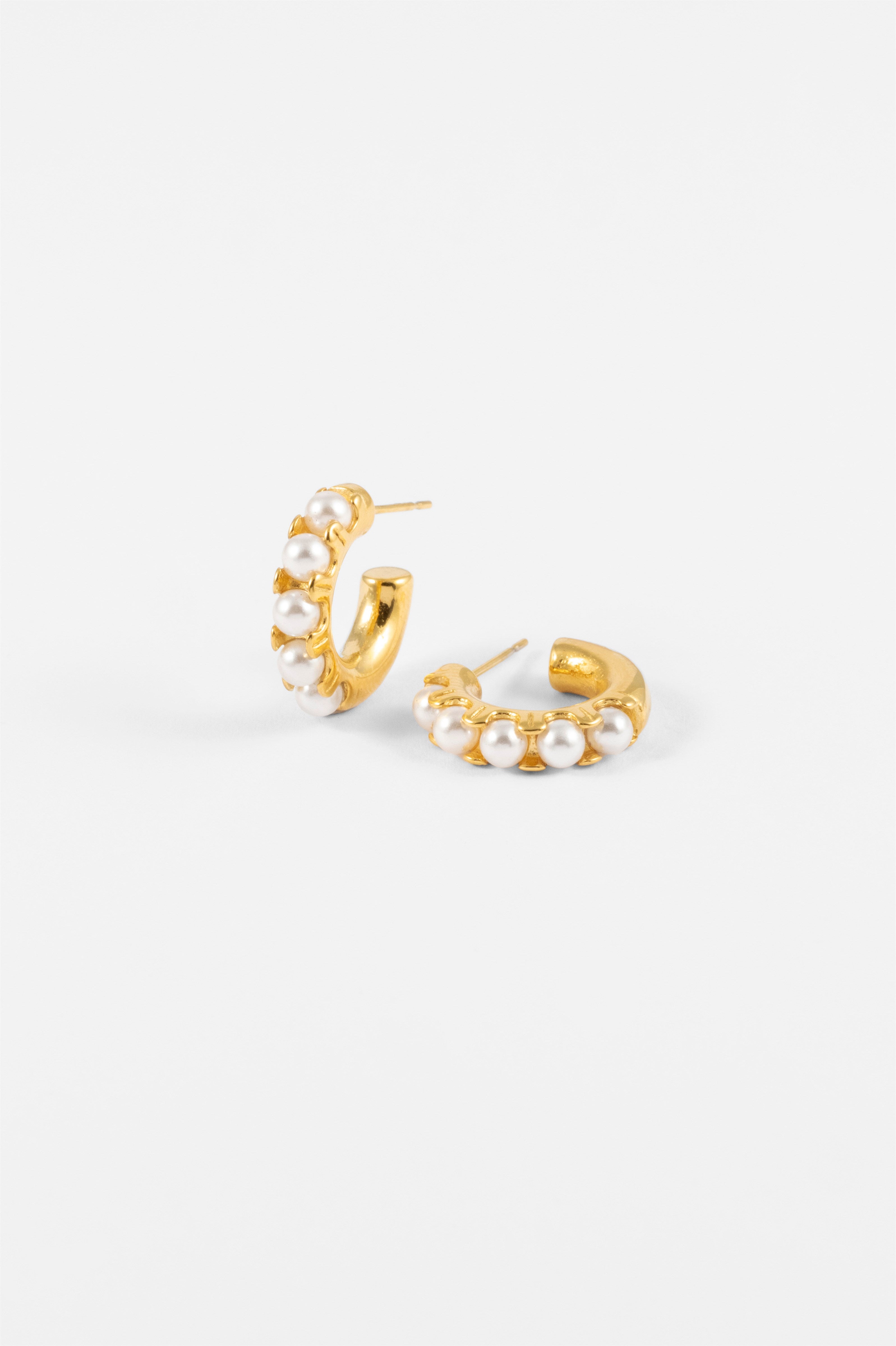 GOLD SMALL PEARL C SHAPE HOOP EARRING