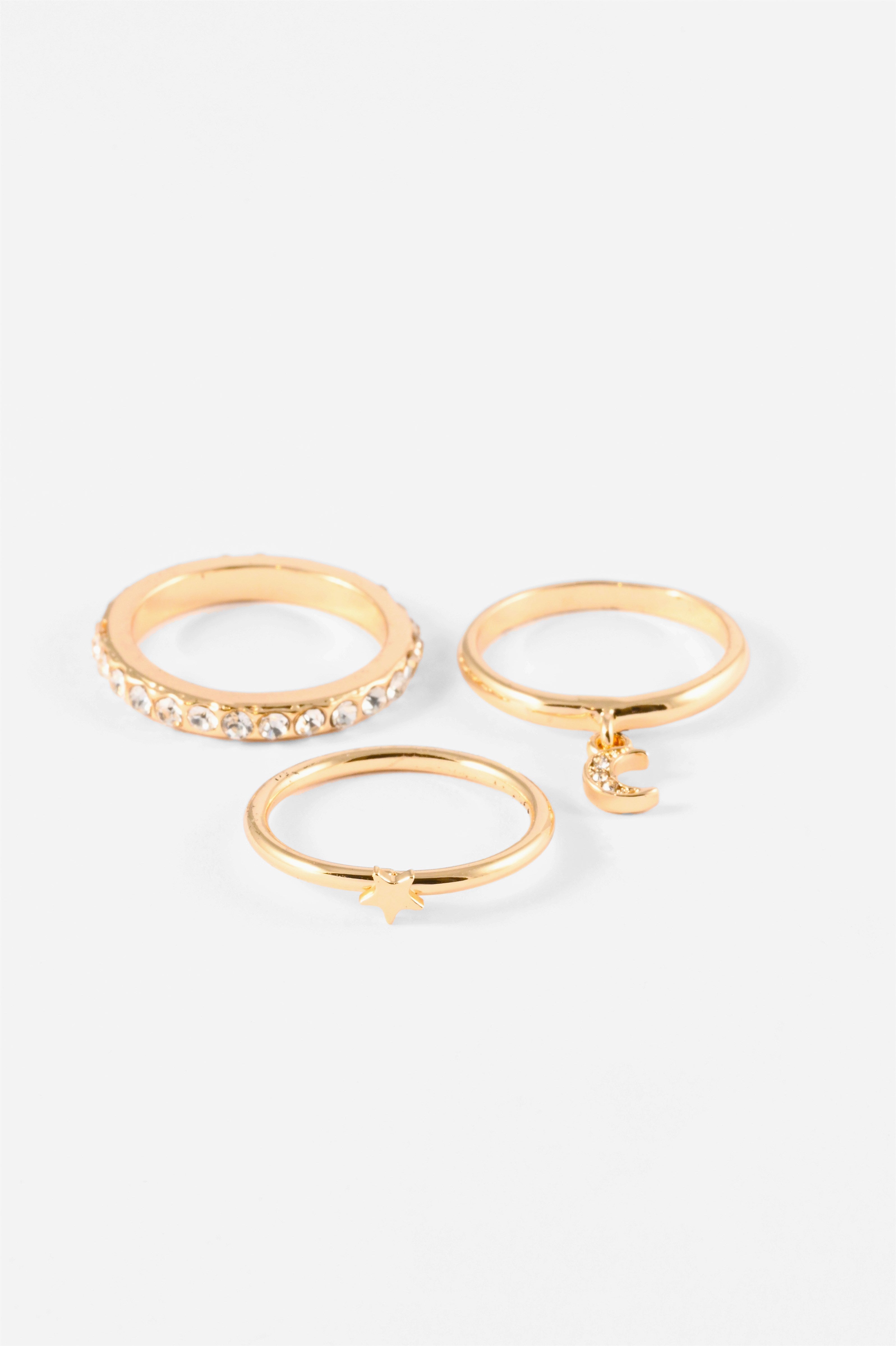 GOLD STAR AND CHARM STACK RINGSN S/M