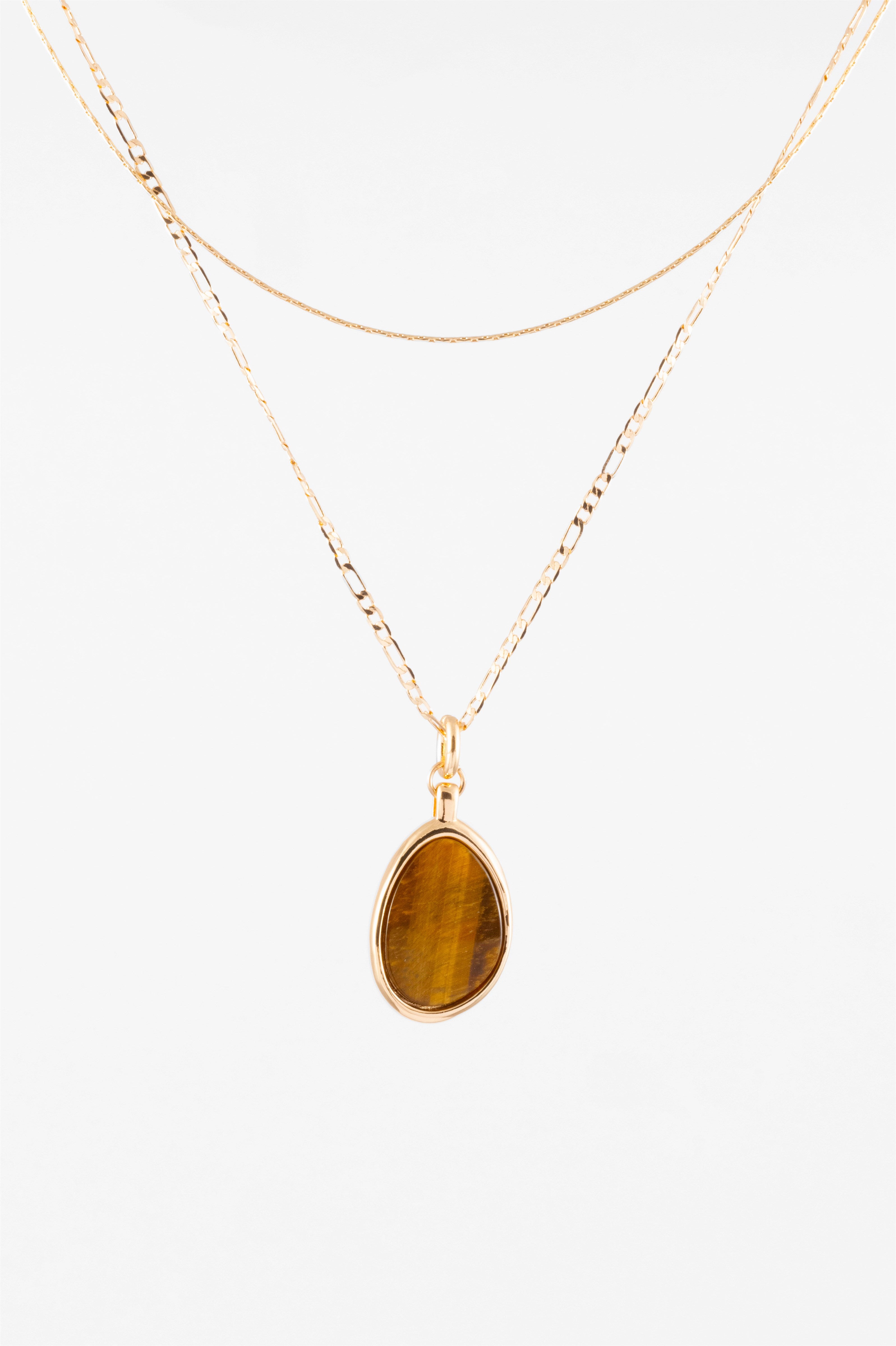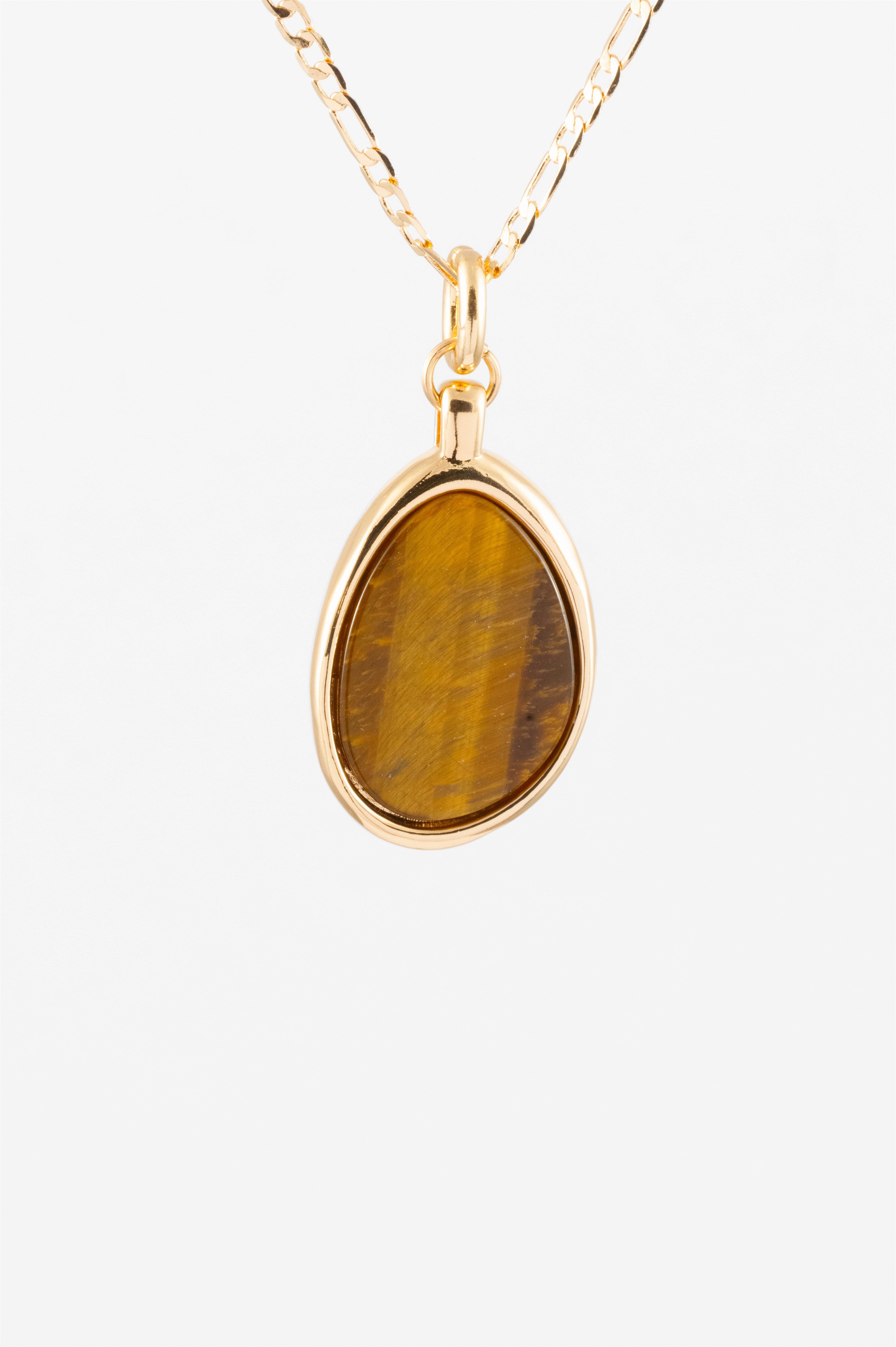 GOLD TIGERS EYE PENDANT LONG CHAIN NECKLACE