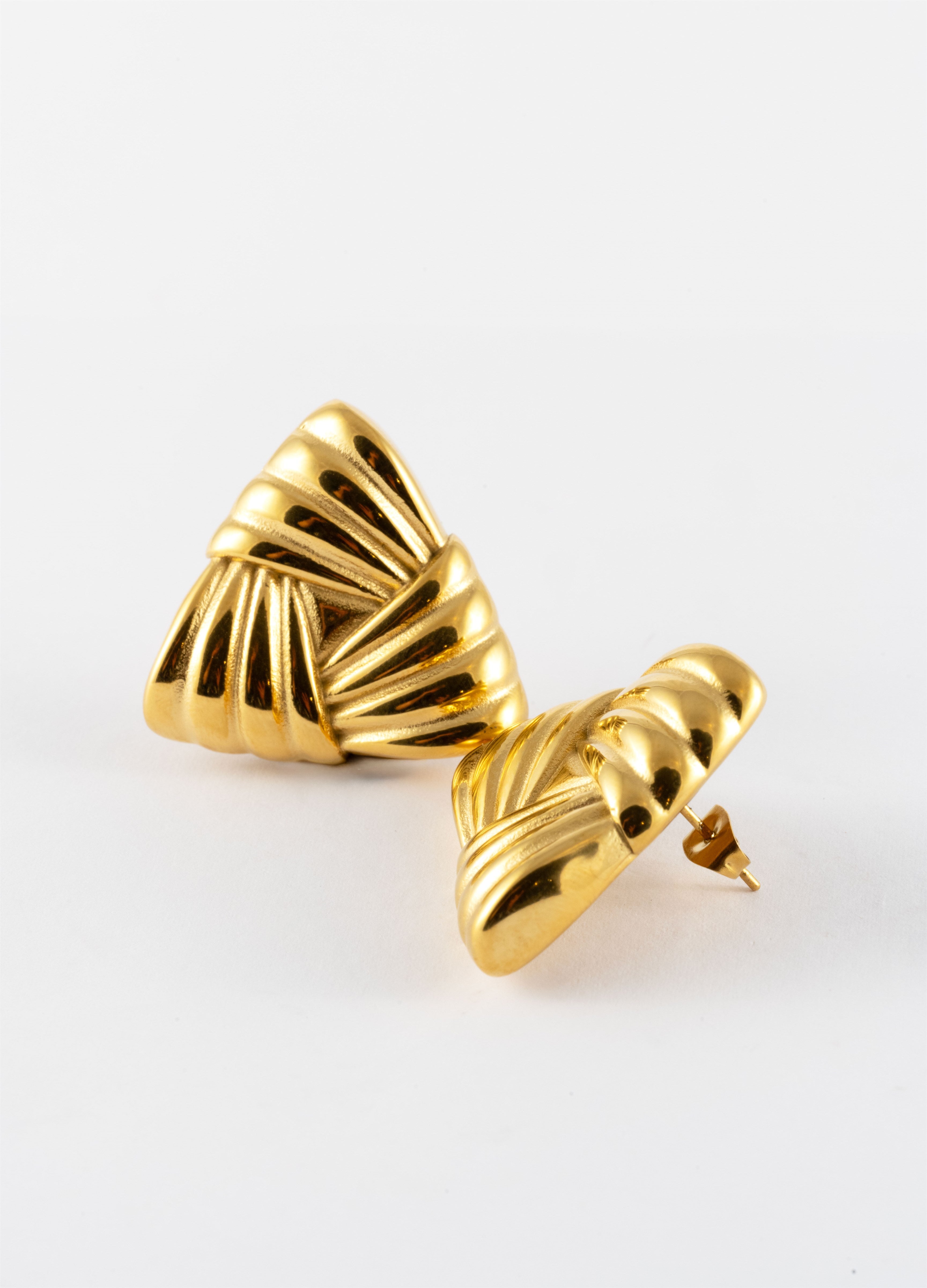 GOLD WAFFLE TRIANGLE STUD EARRING