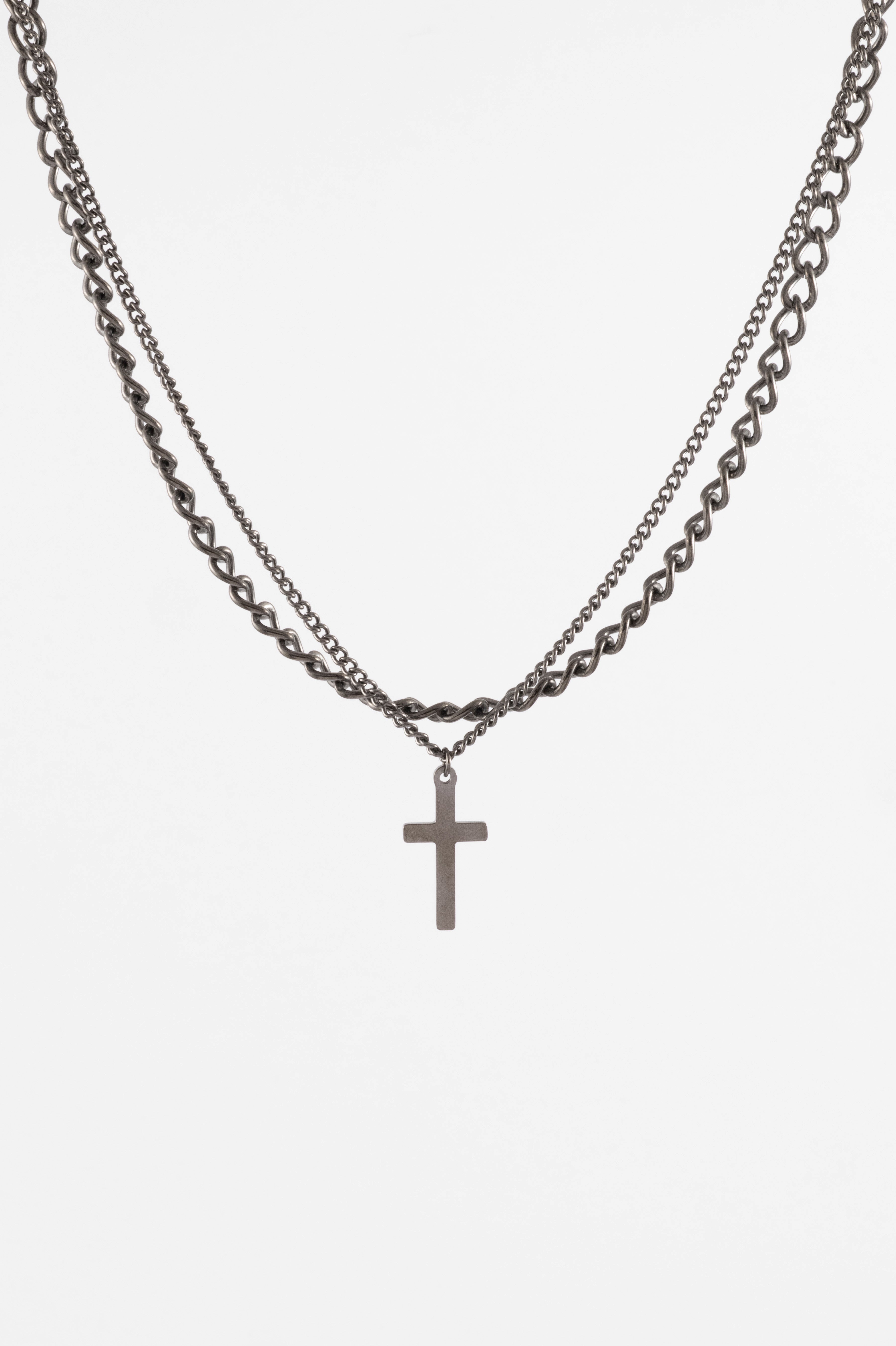 GUNMETAL CURB CHAIN CROSS PENDANT 2 PACK NECKLACE