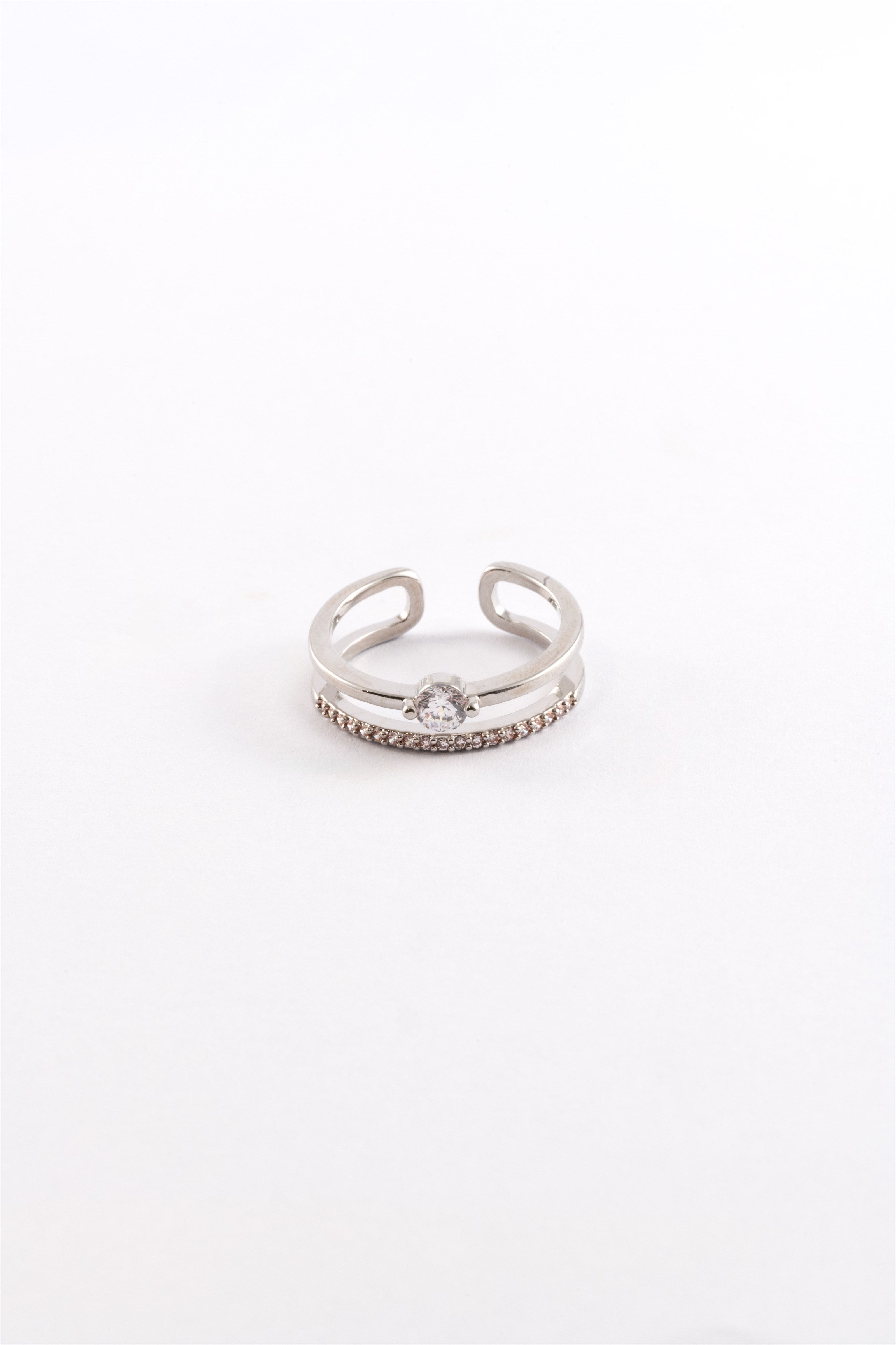 RHODIUM DOUBLE CZ PAVE AND CLASSIC BAND RING S/M