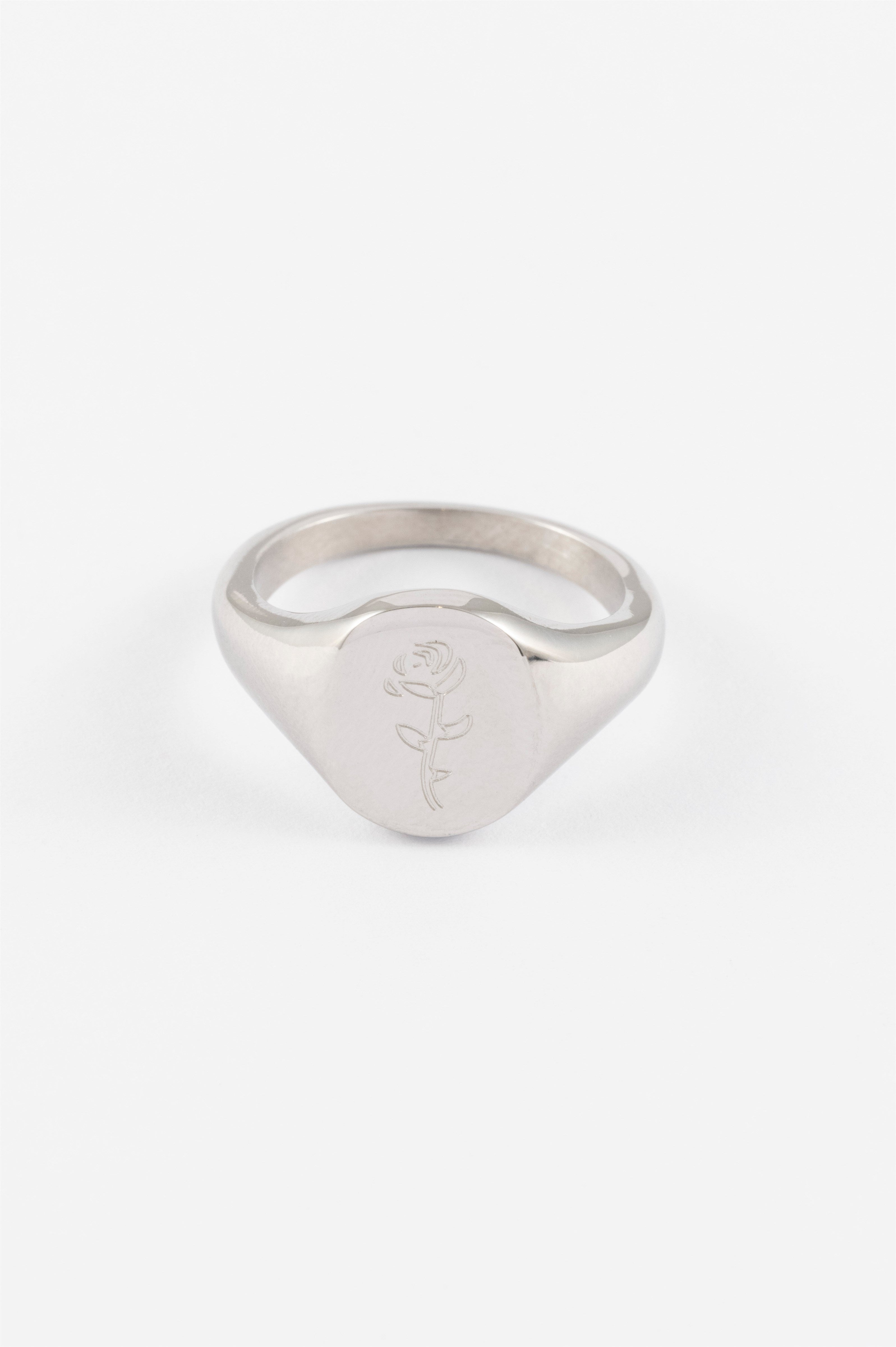 RHODIUM ROSE ETCHED PINKY RING - S/M