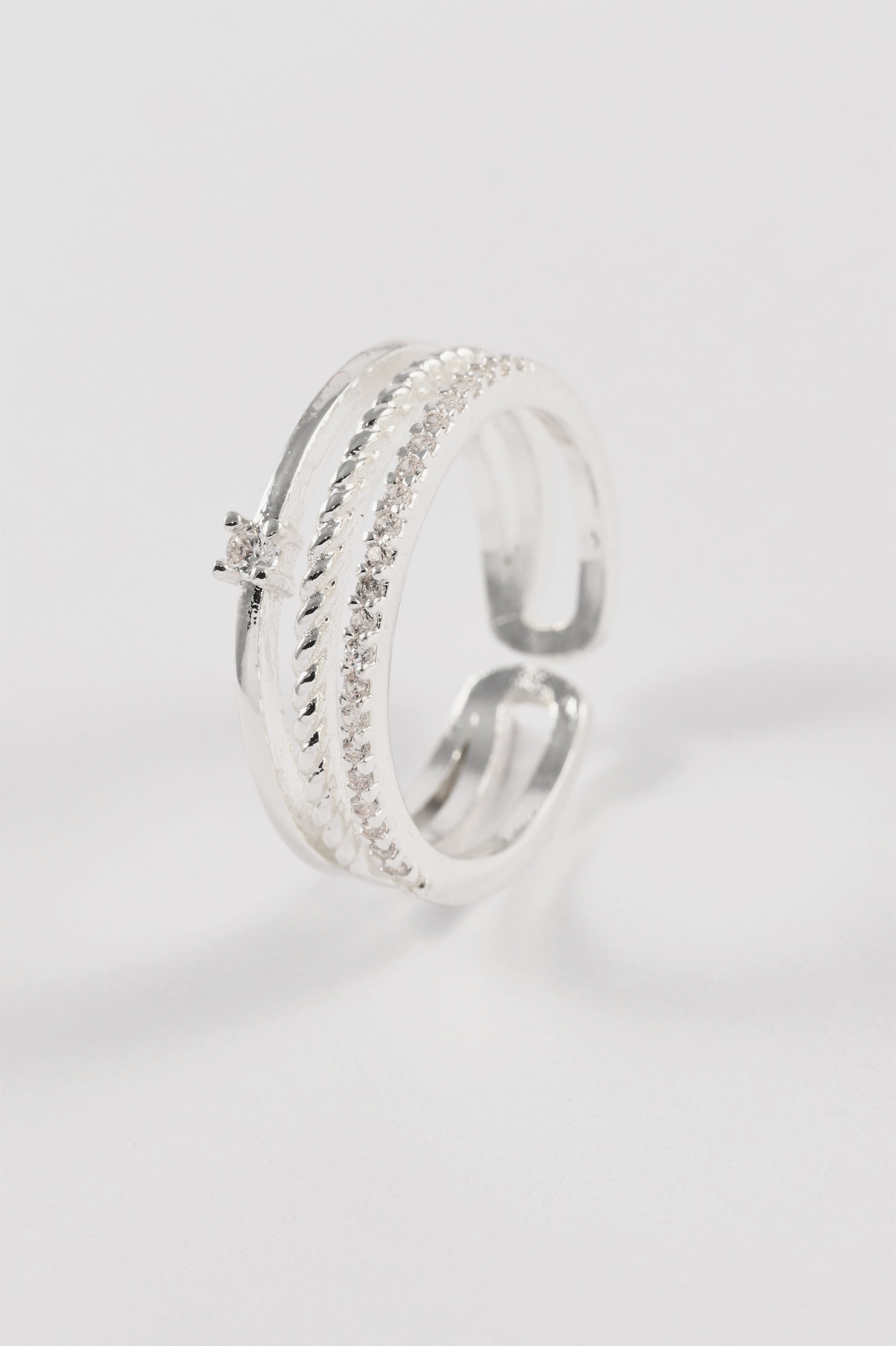 SILVER CUBIC ZIRCONIA TEXTURED TRIPLE RING