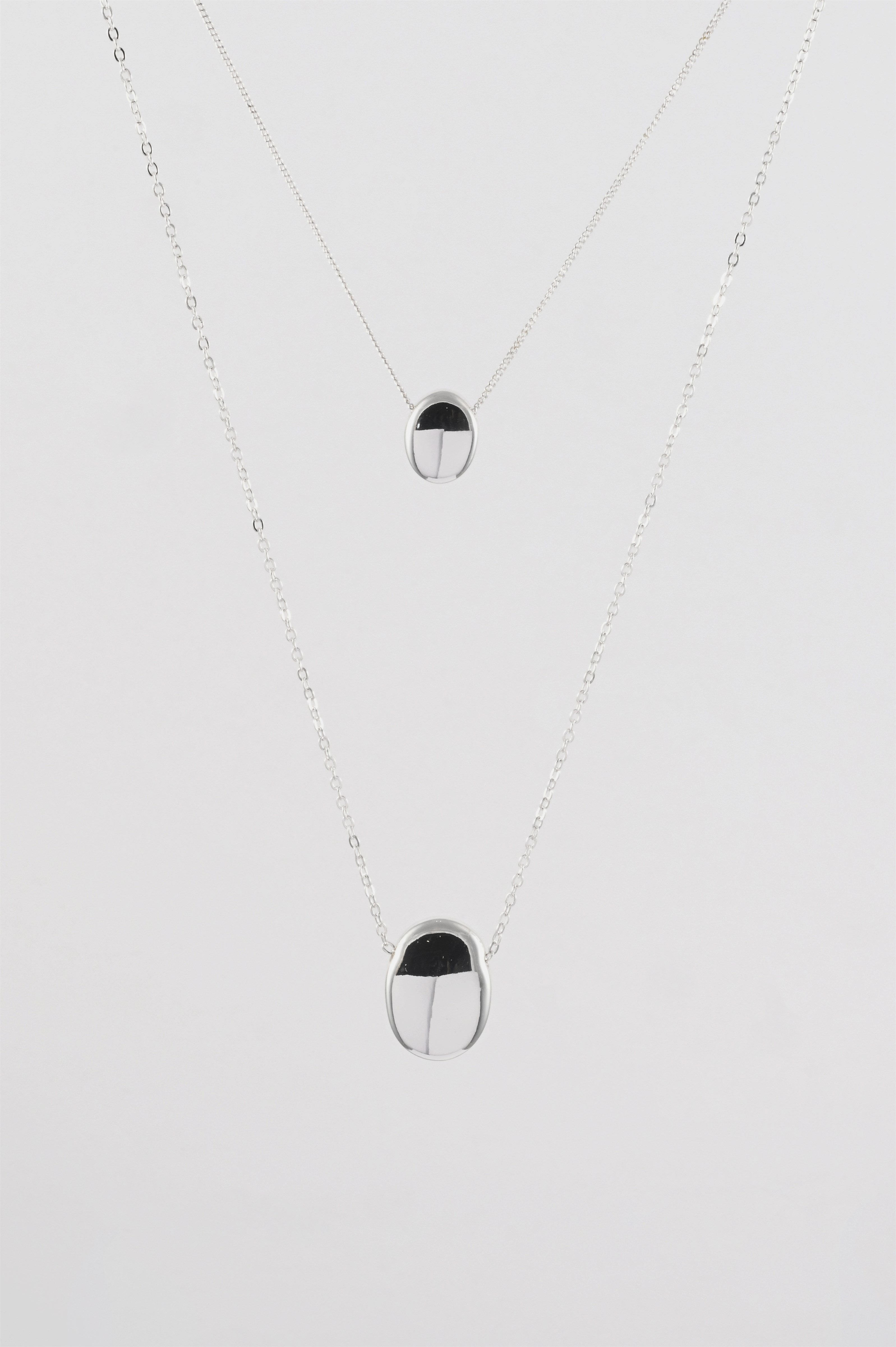 SILVER DOUBLE LAYER CIRCLE PENDANT LONG NECKLACE