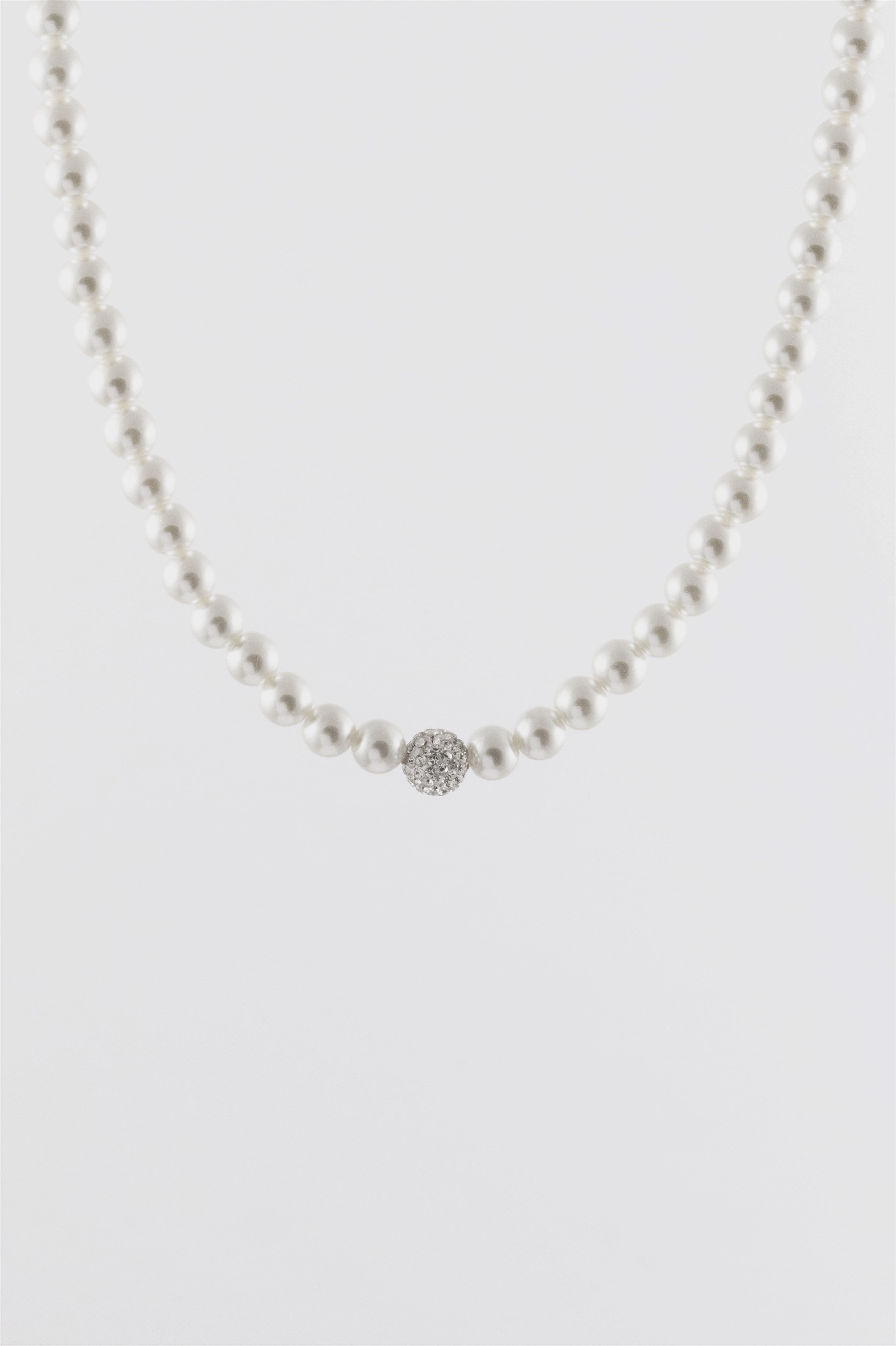 SILVER PAVE BALL & PEARL STUD & ALLWAY NECKLACE SE