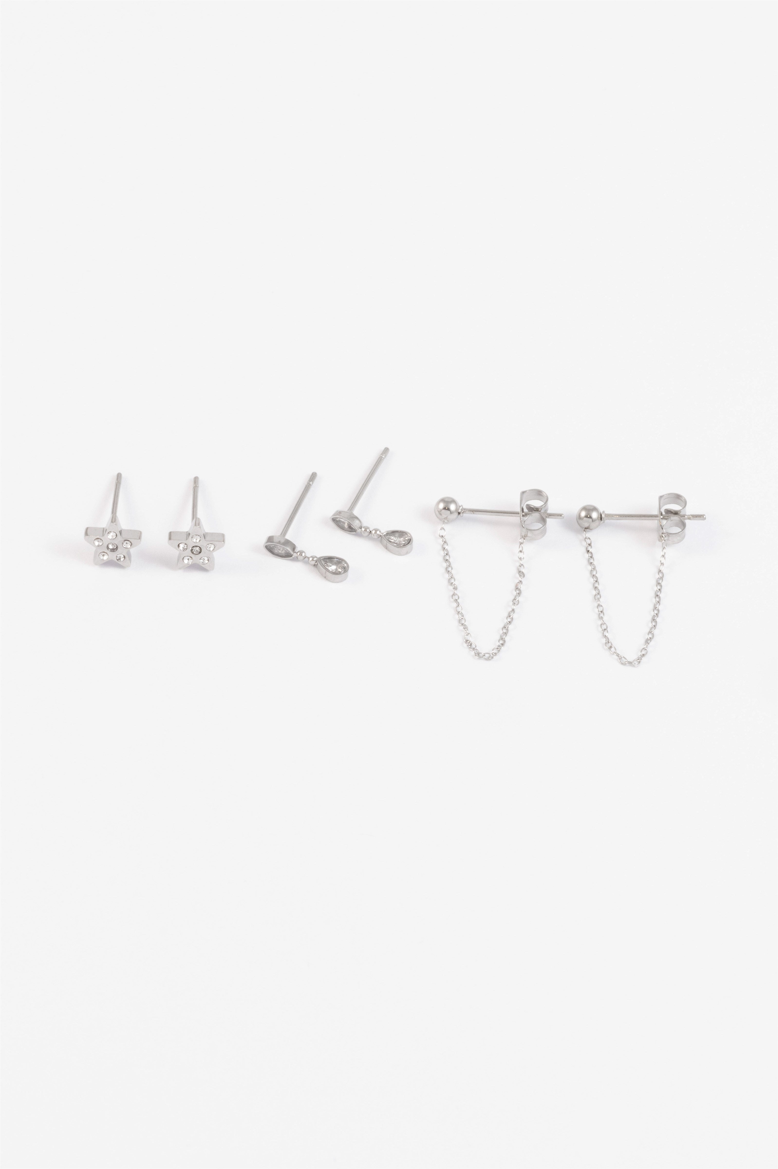 SILVER STAR CHAIN DROP 3 PACK STUD EARRING