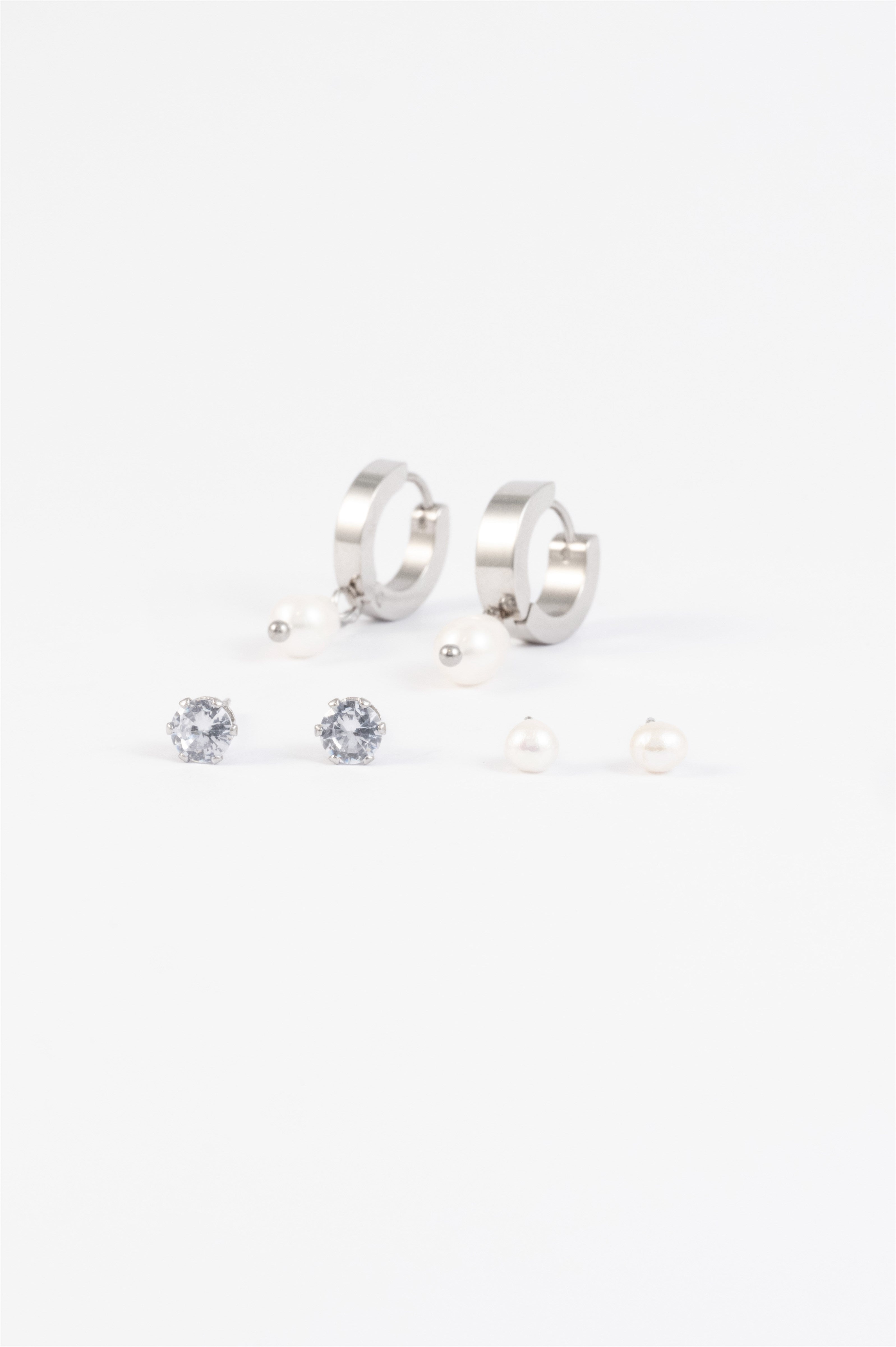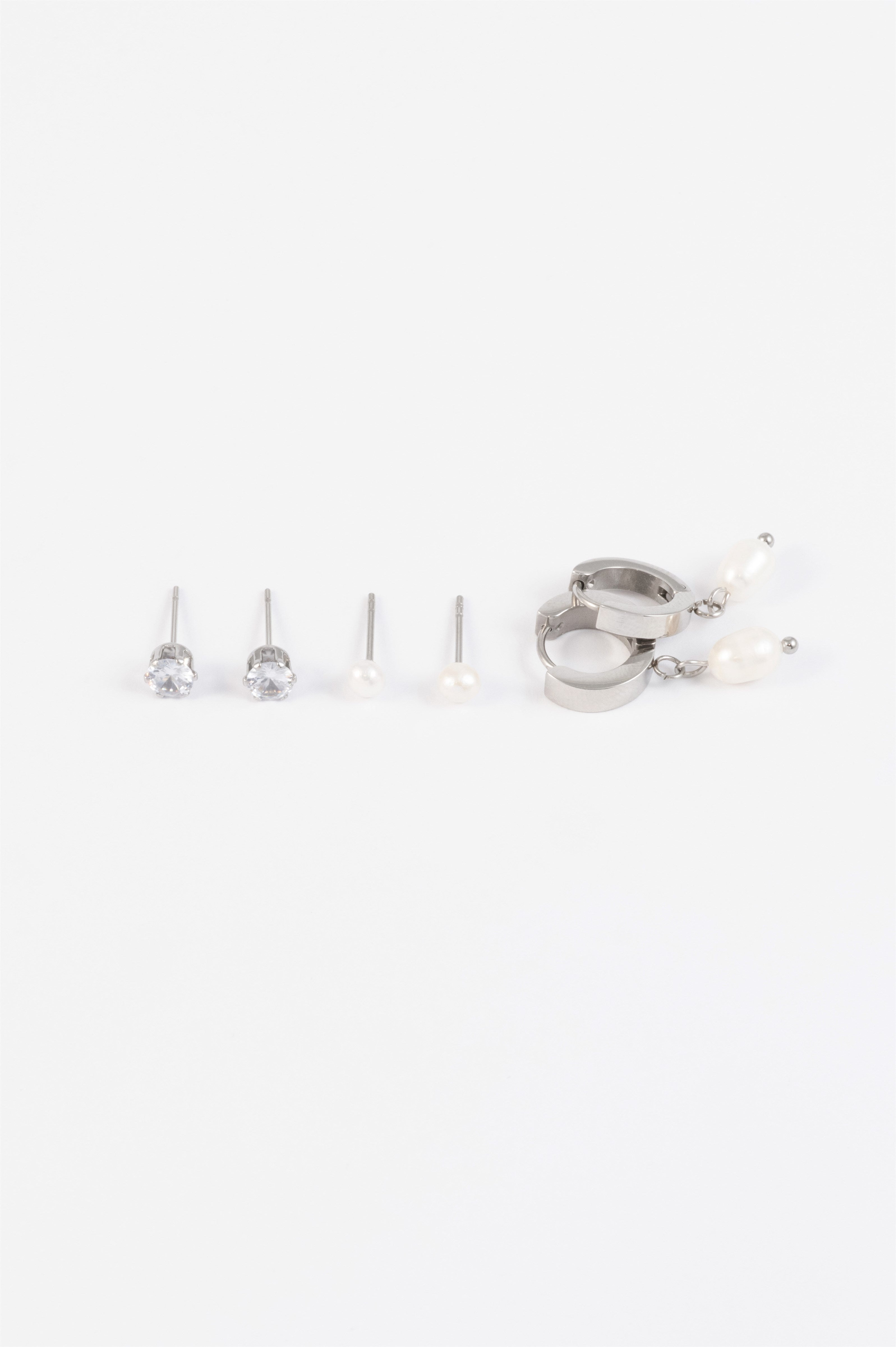 SILVER STUD AND PEARL HOOP EARRING PACK