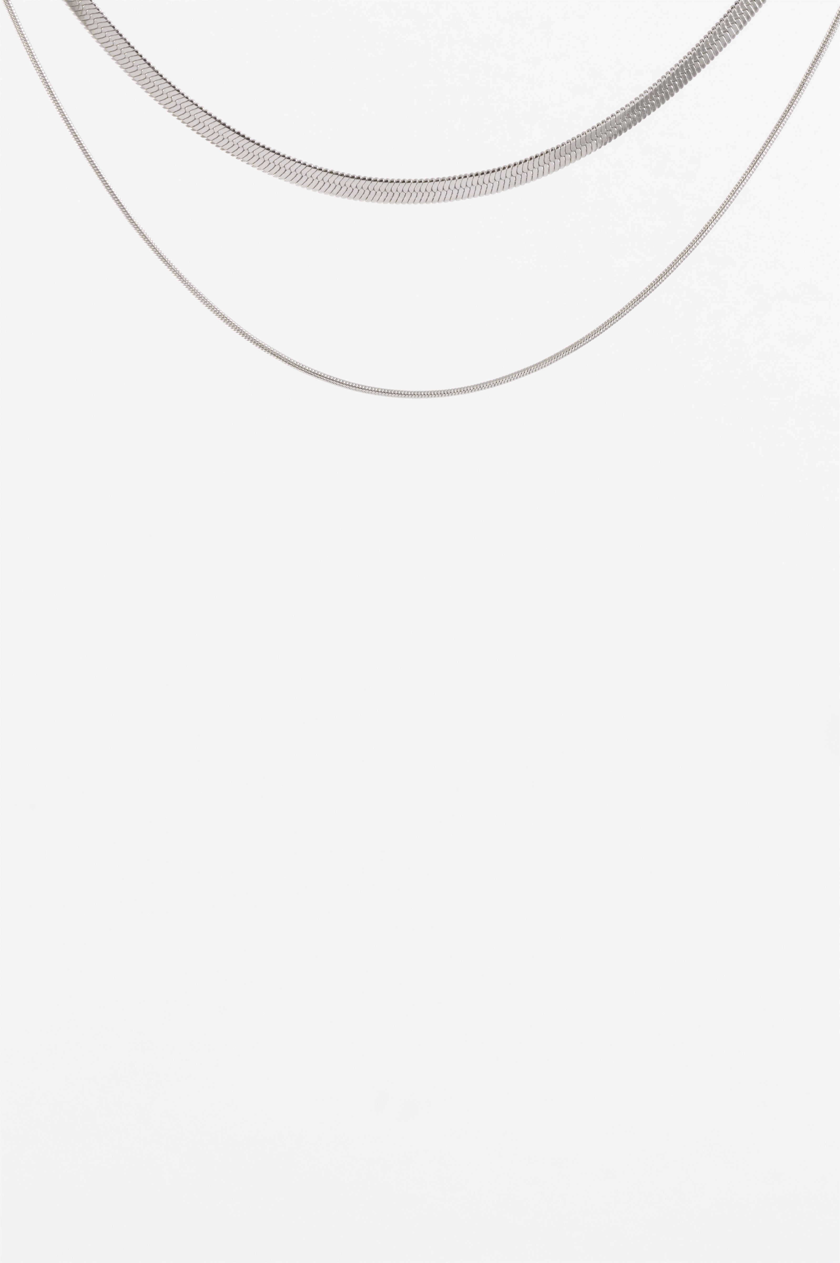 SILVER TWO LAYERED WITH FLAT SNAKE CHAIN NECKLACE