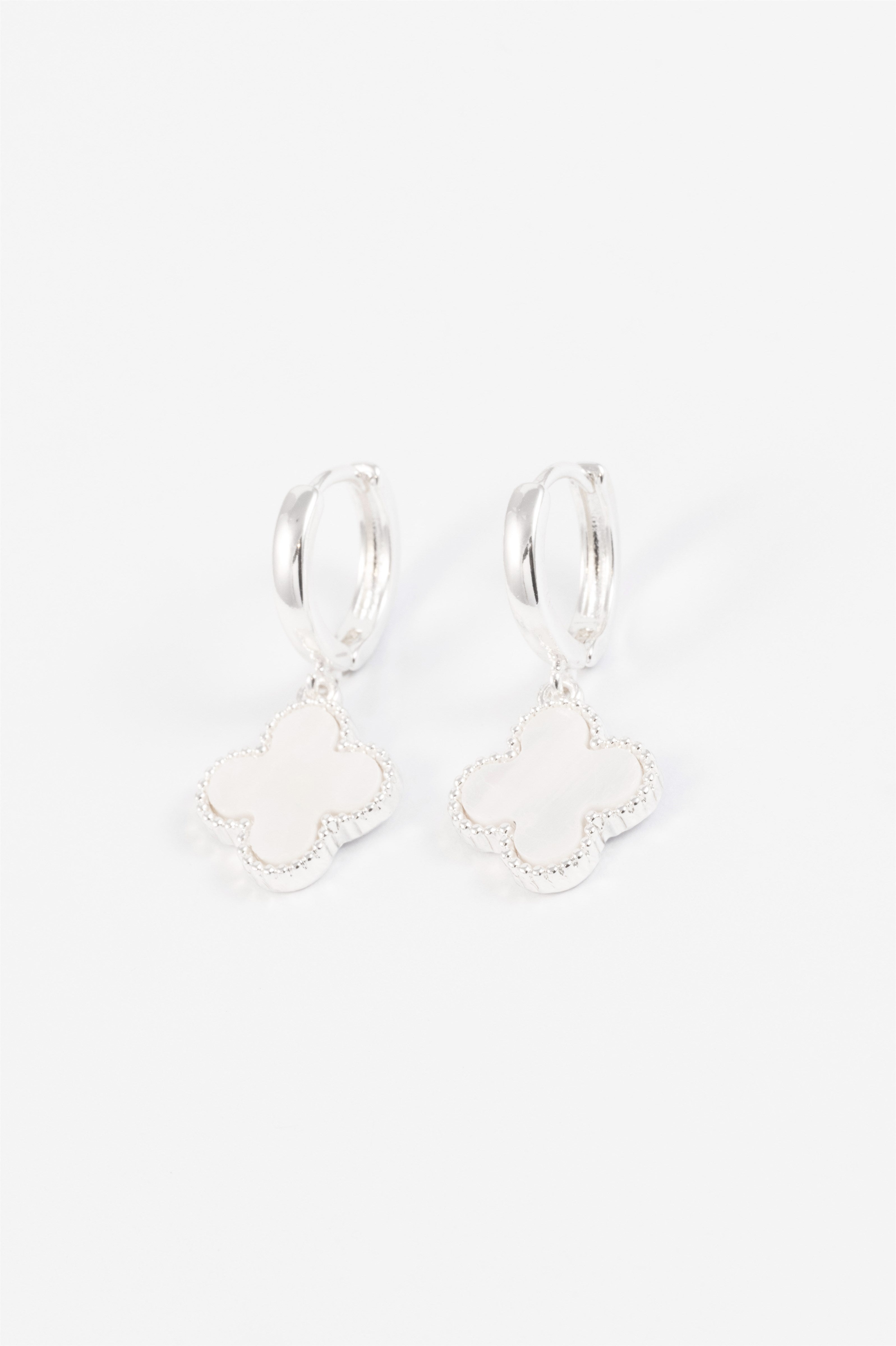SILVER WHITE CLOVER CHARM DROP HUGGIE